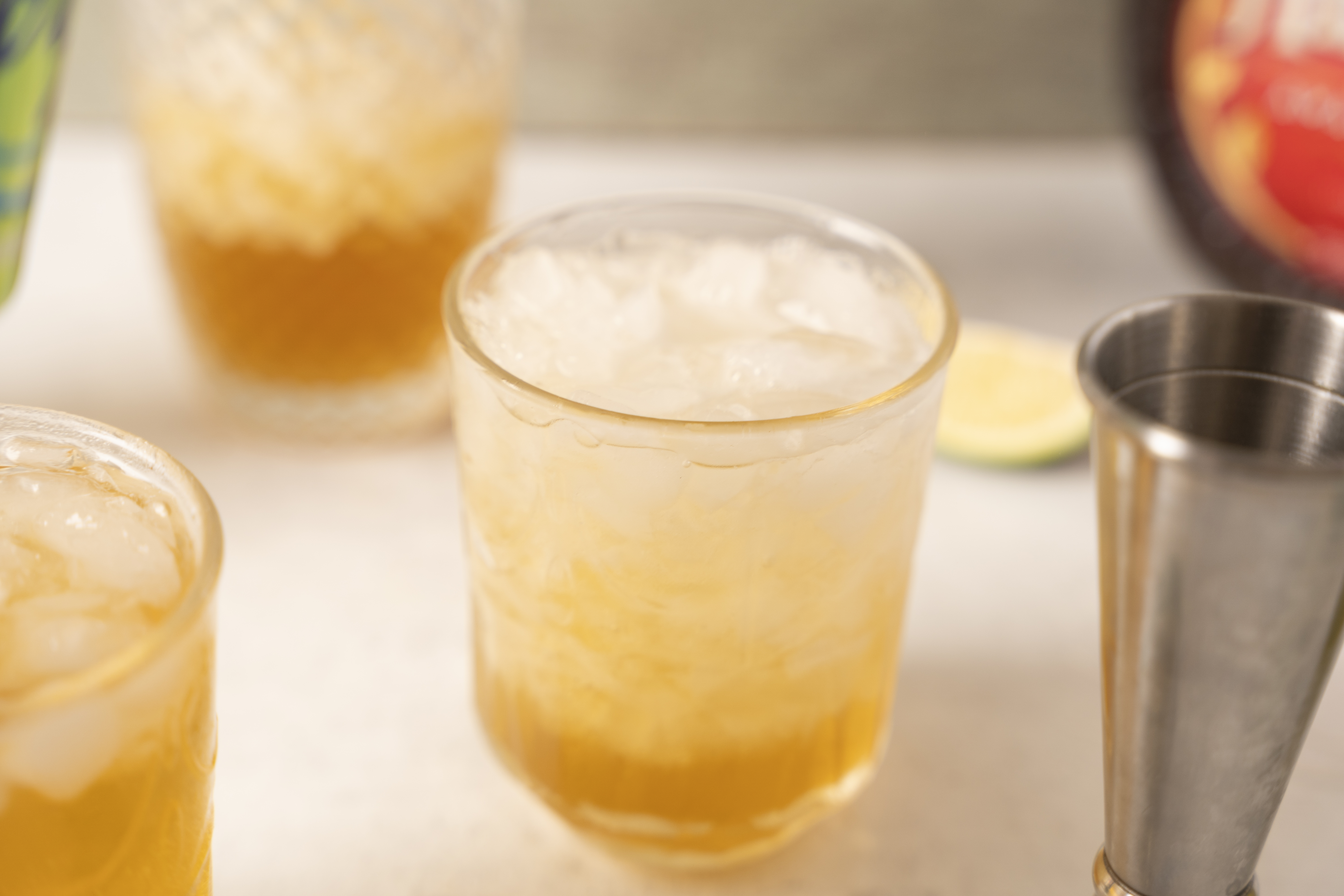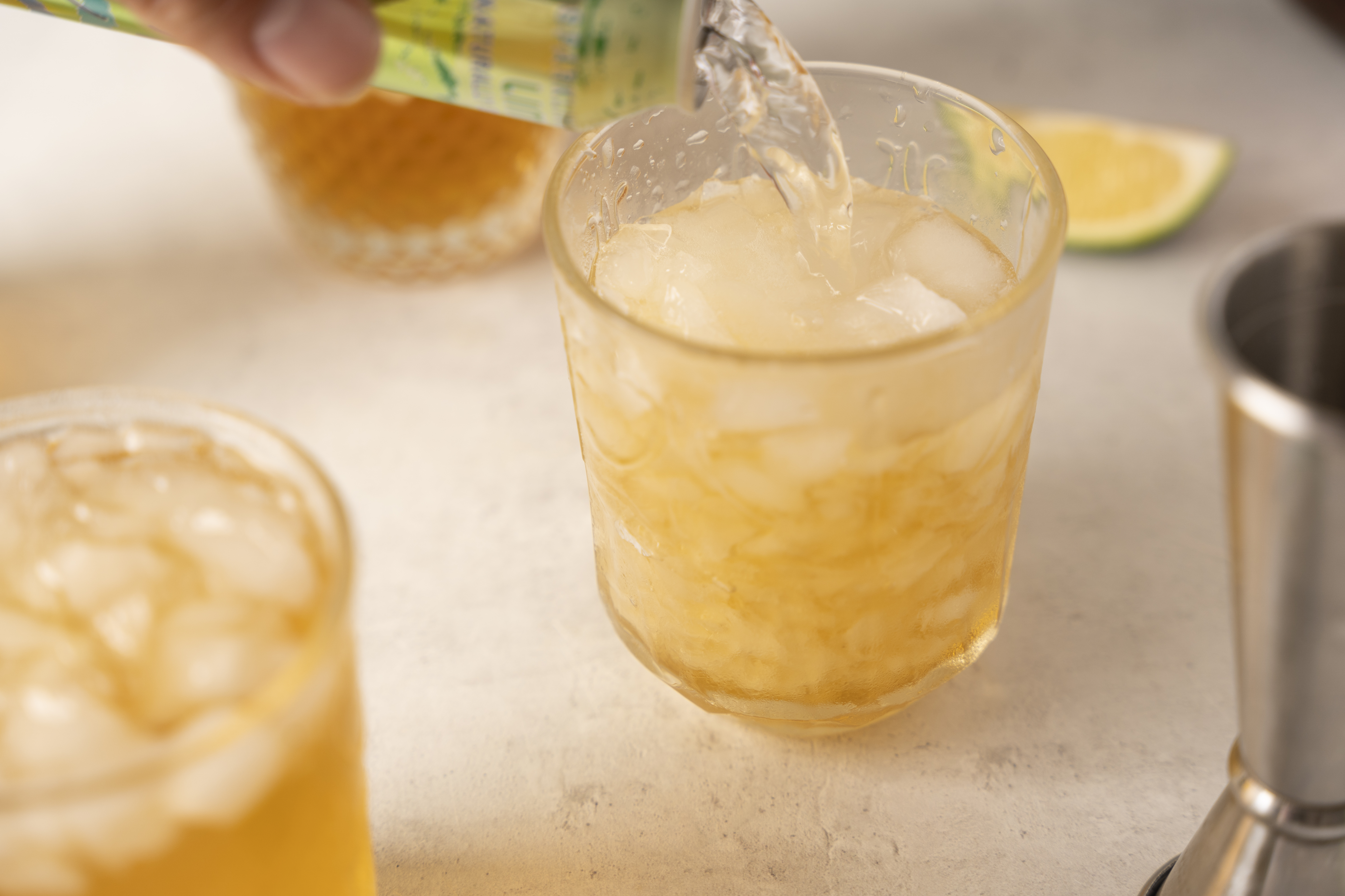 Step 3 -Pour the liqueur mixture over the ice and top with the soda.