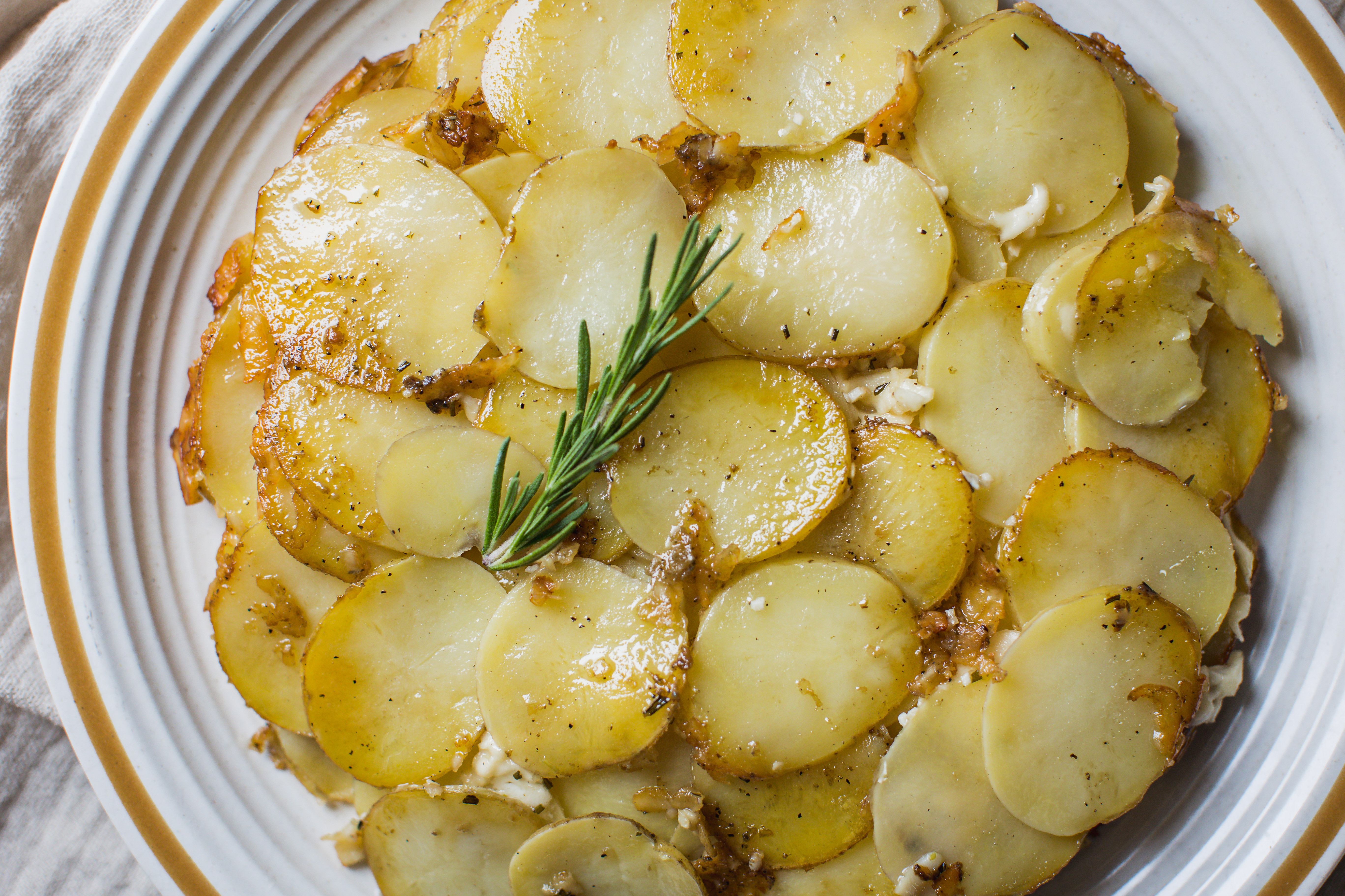 - 2 1/2 pounds Yukon Gold potatoes, scrubbed, cut into 1/8-inch-thick slices