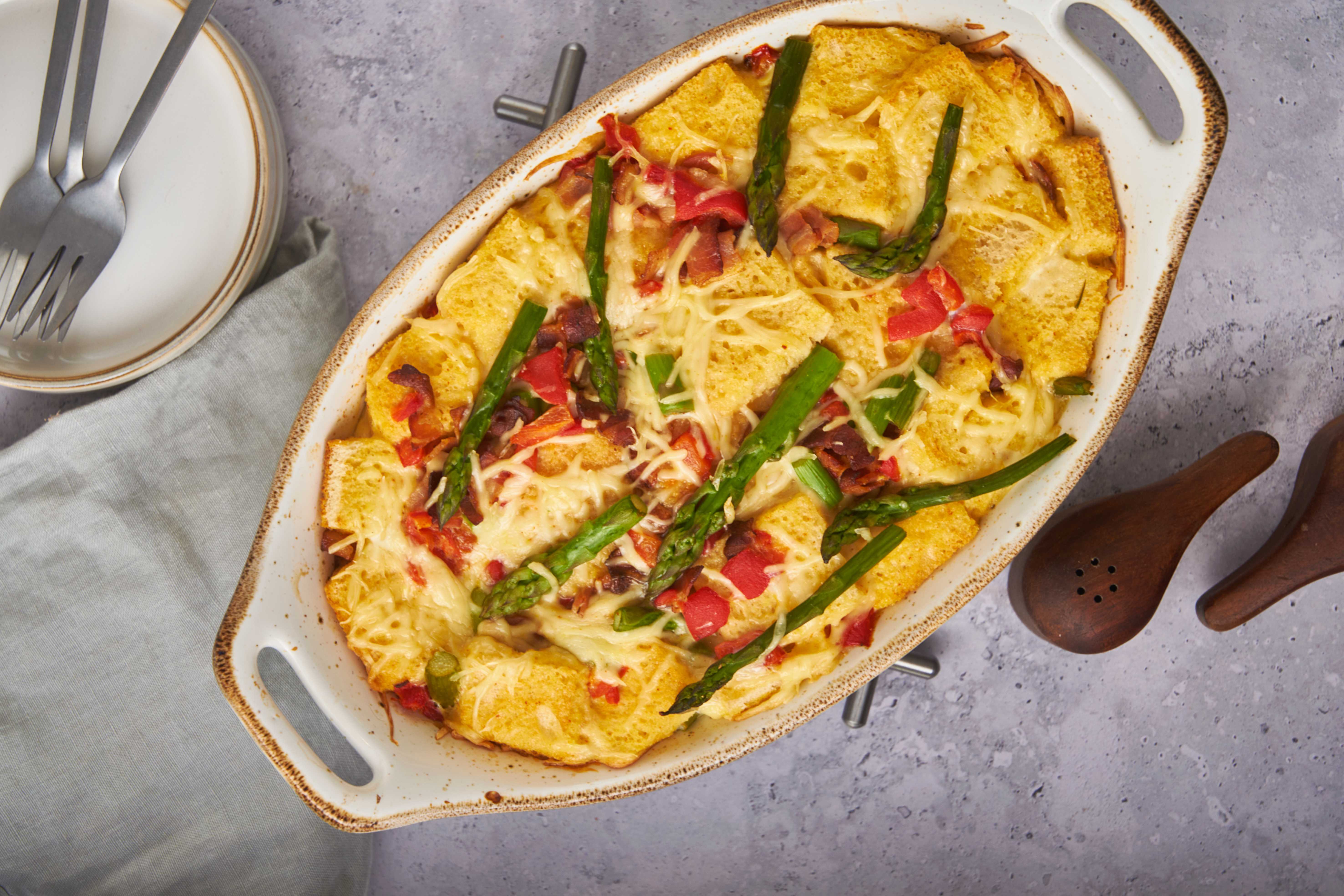 Step 8 -Evenly pour the egg mixture over the bread mixture.