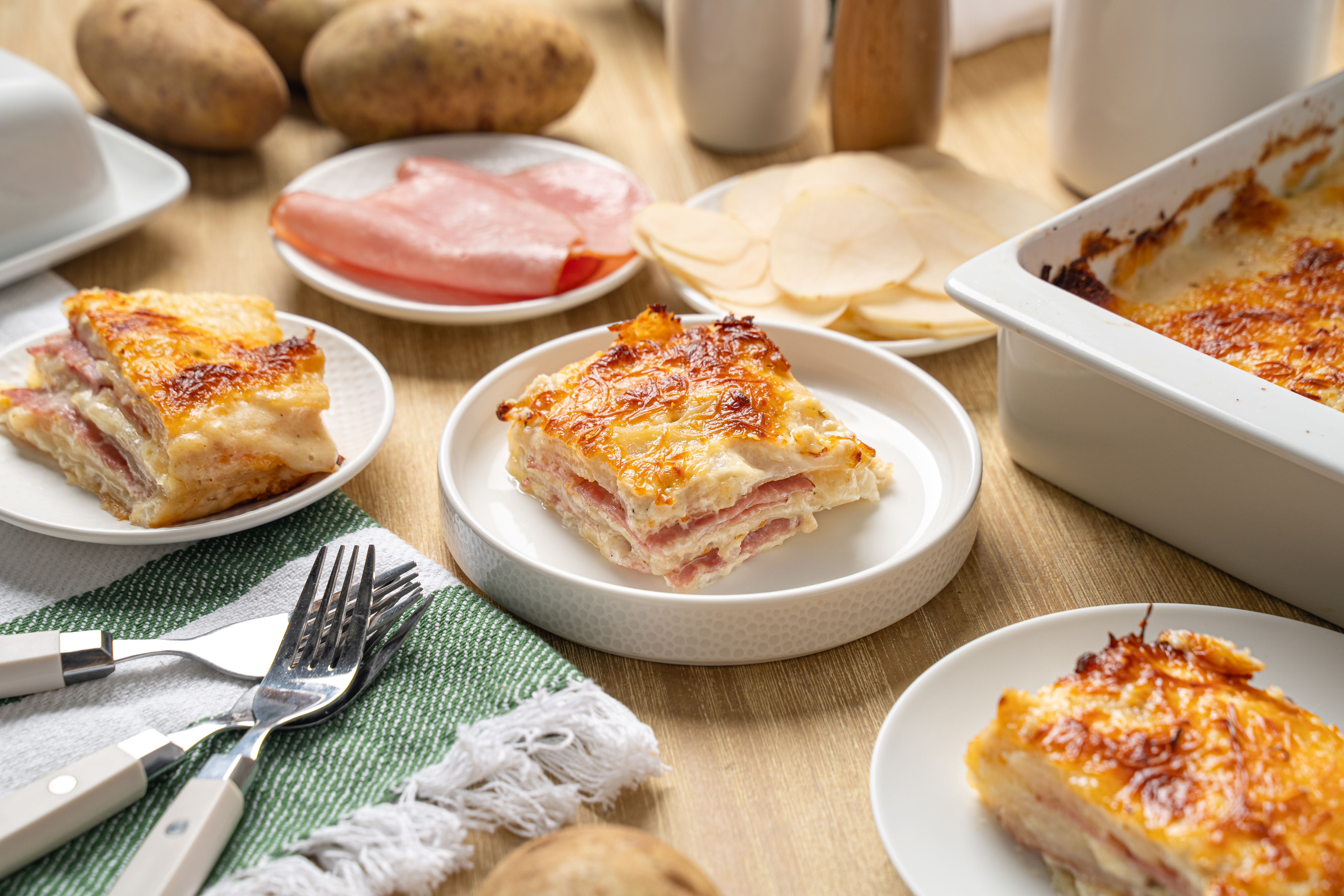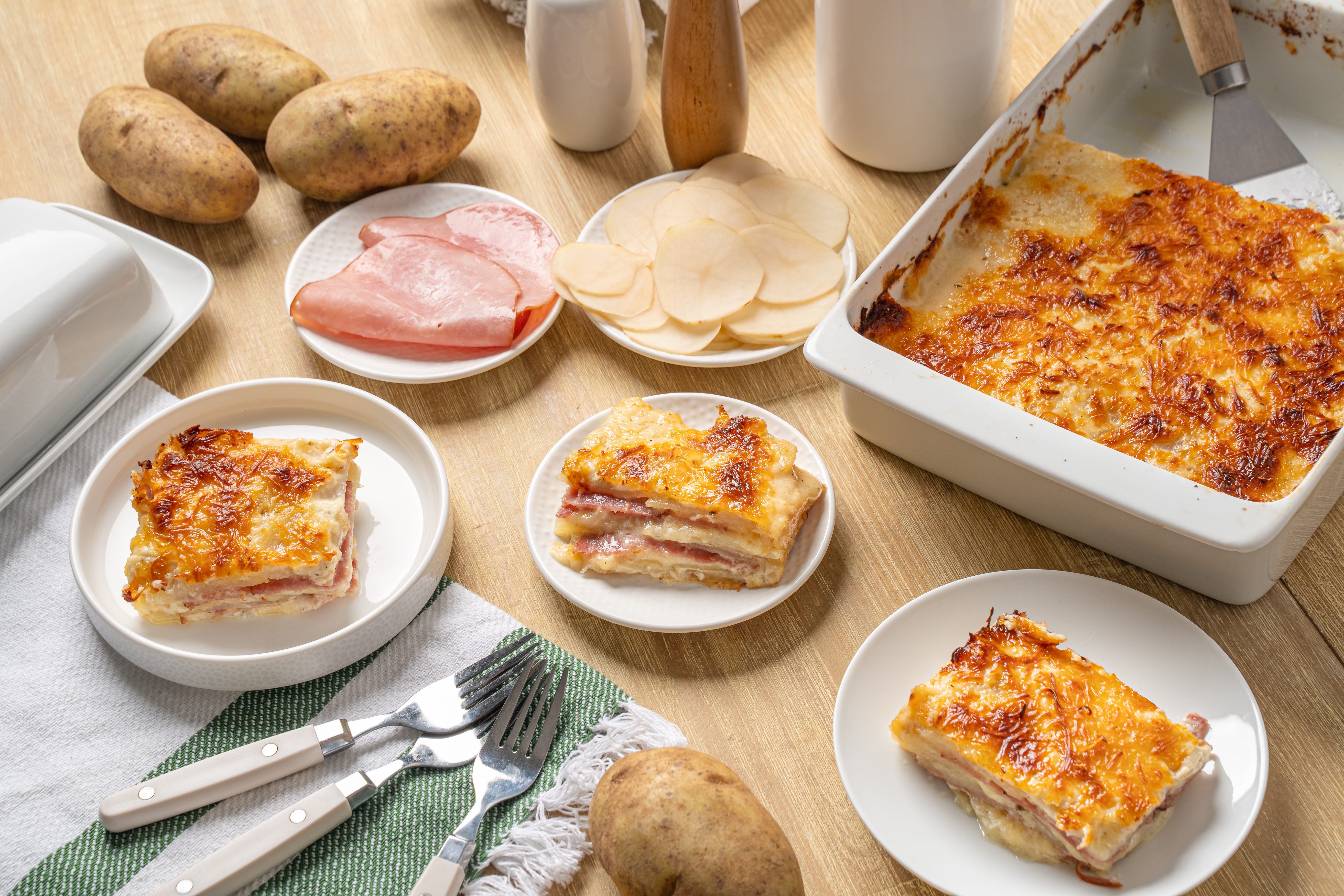Step 18 -Shingle the remaining potatoes on top of the ham layer and season with the remaining salt.