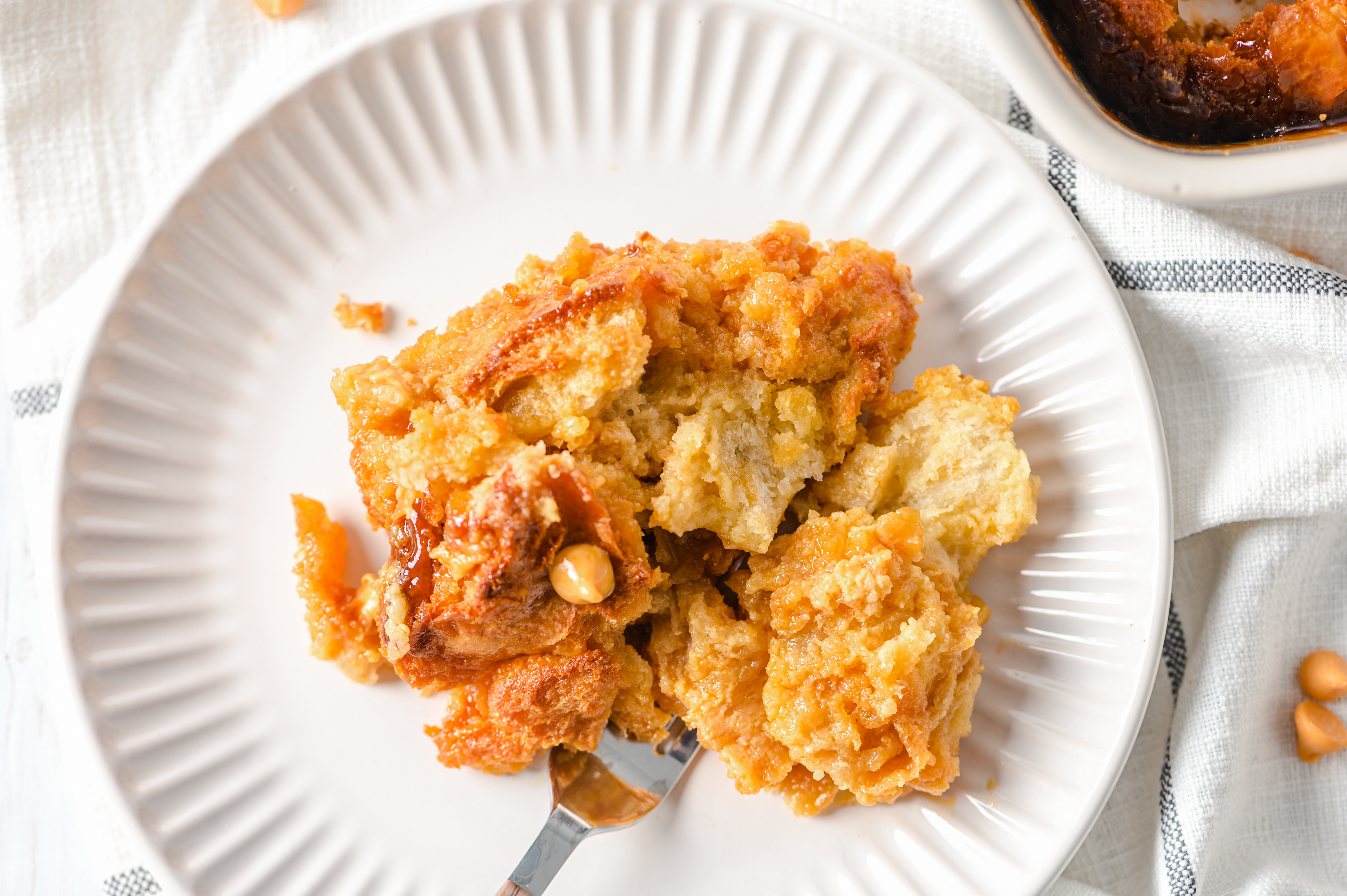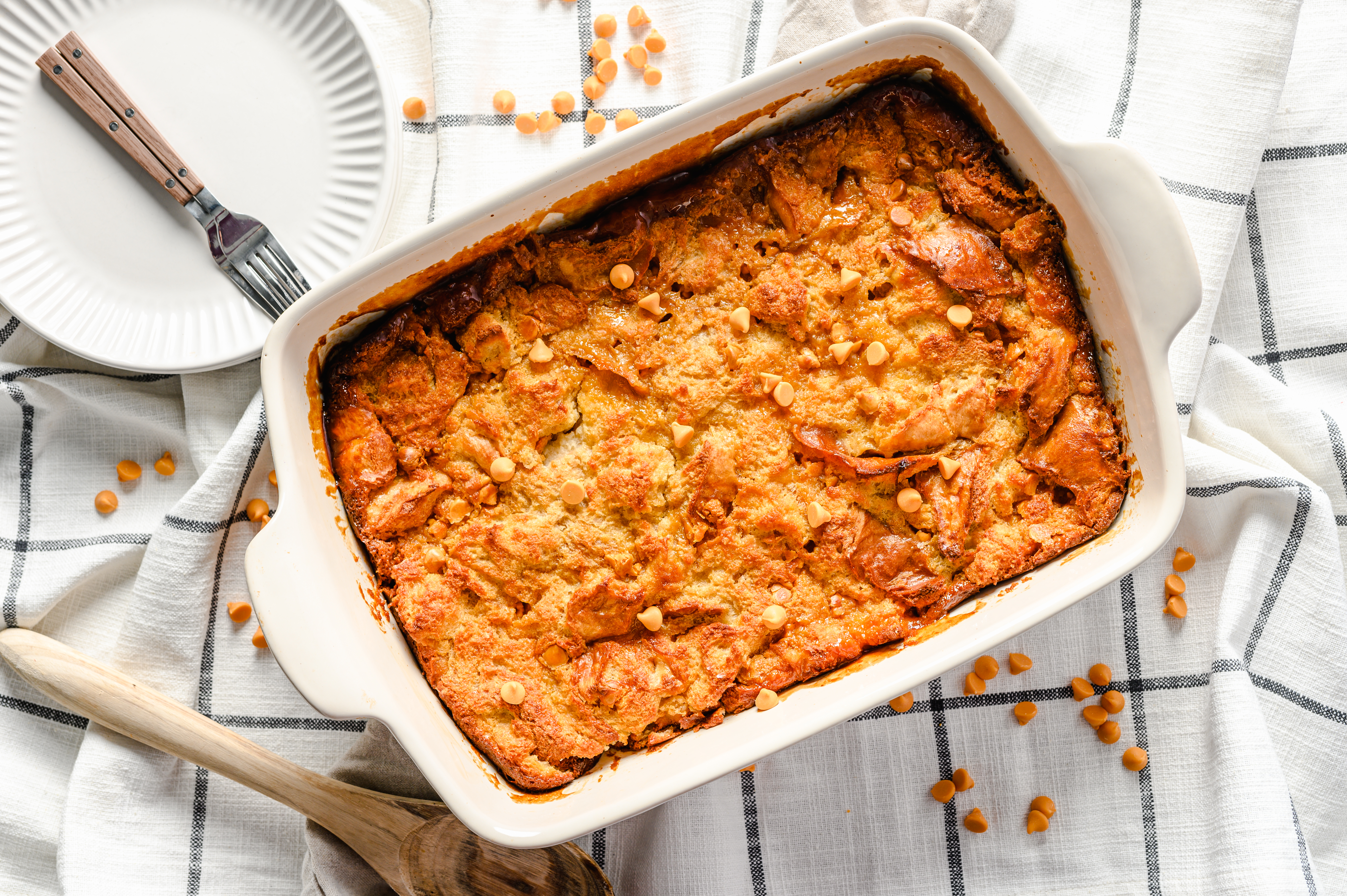 Butterscotch Bread Pudding... mmm! Doesn't that sound like something grandma would have made?! We know she would have loved this caramel-y, golden-brown delight, because it is perfect for any family gathering. She would especially be excited about how truly easy it is to make. She always knew the simple ways to make every meal delicious! So, you better go ahead and add this Butterscotch Bread Pudding to your menu. Because hey, it's grandma-approved!