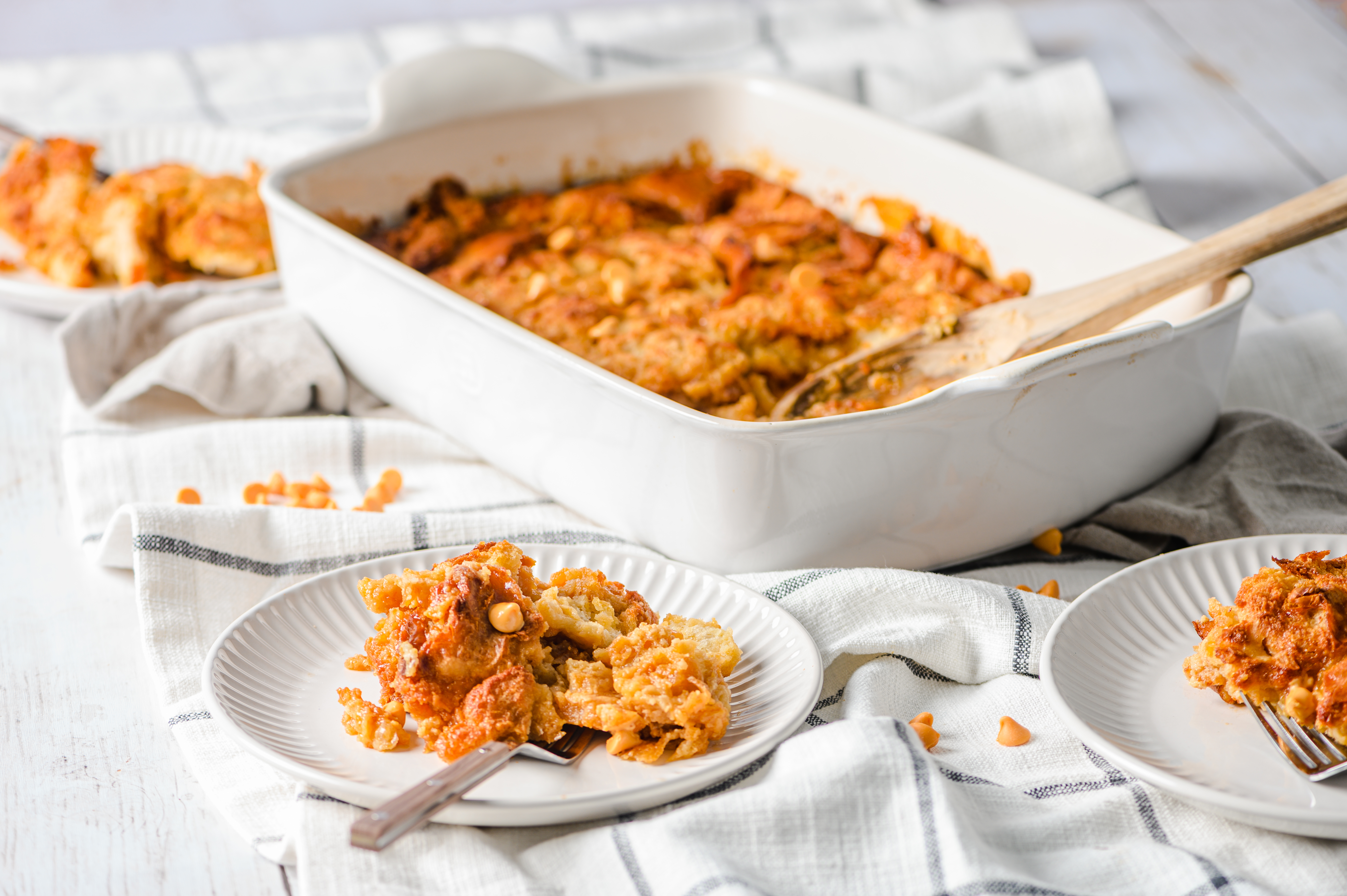 - 1/2 cup butter, melted, plus more, to taste, softened, for greasing the baking dish