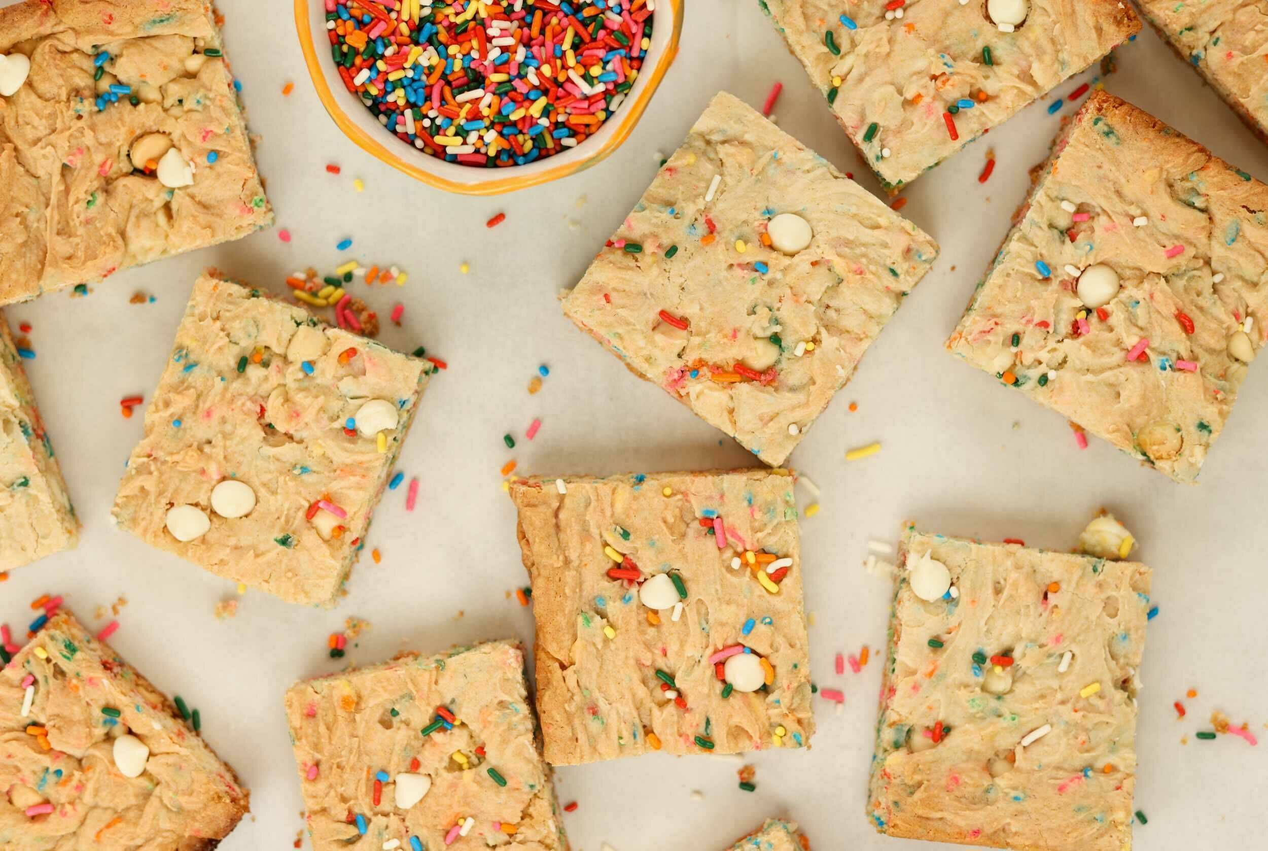 The choice between cake and brownies was a difficult choice—emphasis on "was." Cake Batter Brownies is the best of both worlds, with the fudgy texture of brownies and the festive fun flavors of birthday cake in each bite. Made extra delightful with melty and sweet white chocolate chips, Cake Batter Brownies will get your taste buds in a celebratory mood! Make sure you have plenty of colorful sprinkles to make dessert extra vibrant!