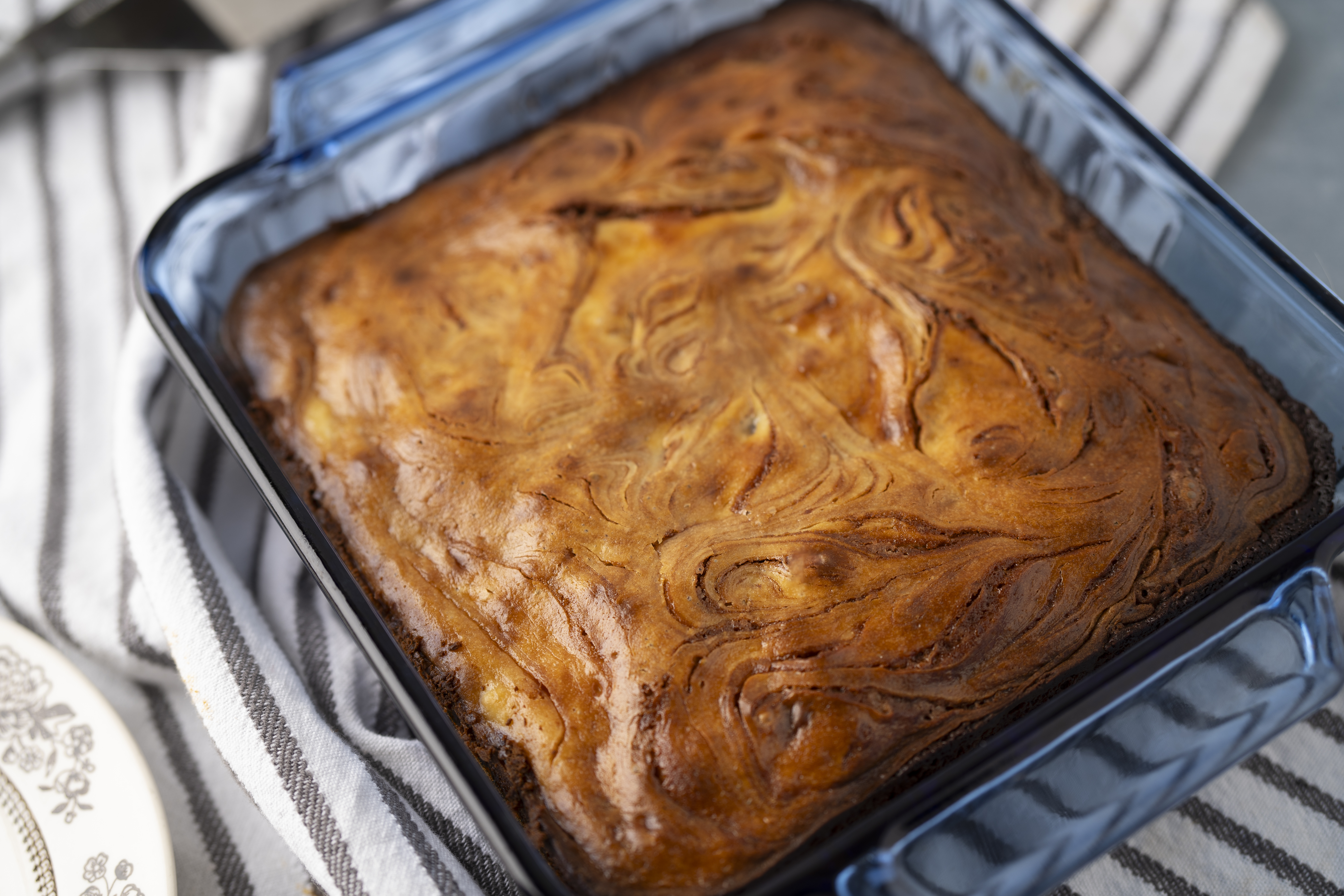 Step 8 -Bake the cheesecake brownies until the top turns light golden-brown and the outer edge is set, 30-35 minutes.