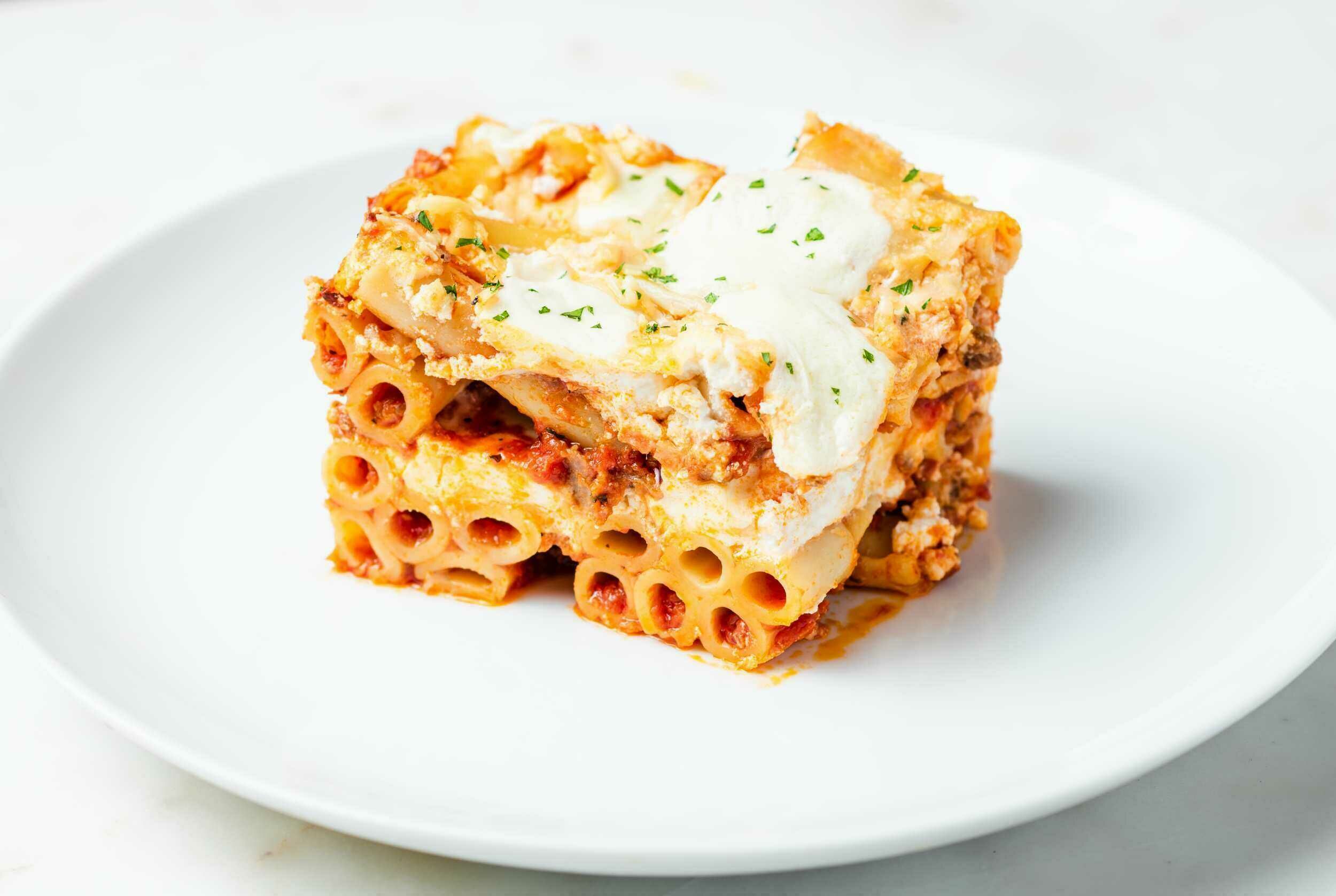 Baked Ziti is such a simple meal to prepare for a long week or for large amounts of people! It's comforting, filling, and totally satisfying. Serve with a side caesar salad, garlic bread, or steamed veggies for a balanced meal. There are few crowd-pleasers more pleasing than Cheesy Baked Ziti. The cheese layers are melty, bubbly, creamy and stretchy—exactly what you look for in a cheesy delight. In between the cheese is tender pasta coated in a savory seasoned meat sauce that you’ll never forget! Cheesy Baked Ziti is perfect for Sunday night dinners and enjoying with family and friends, who will all be amazed at what you’ve cooked for them!