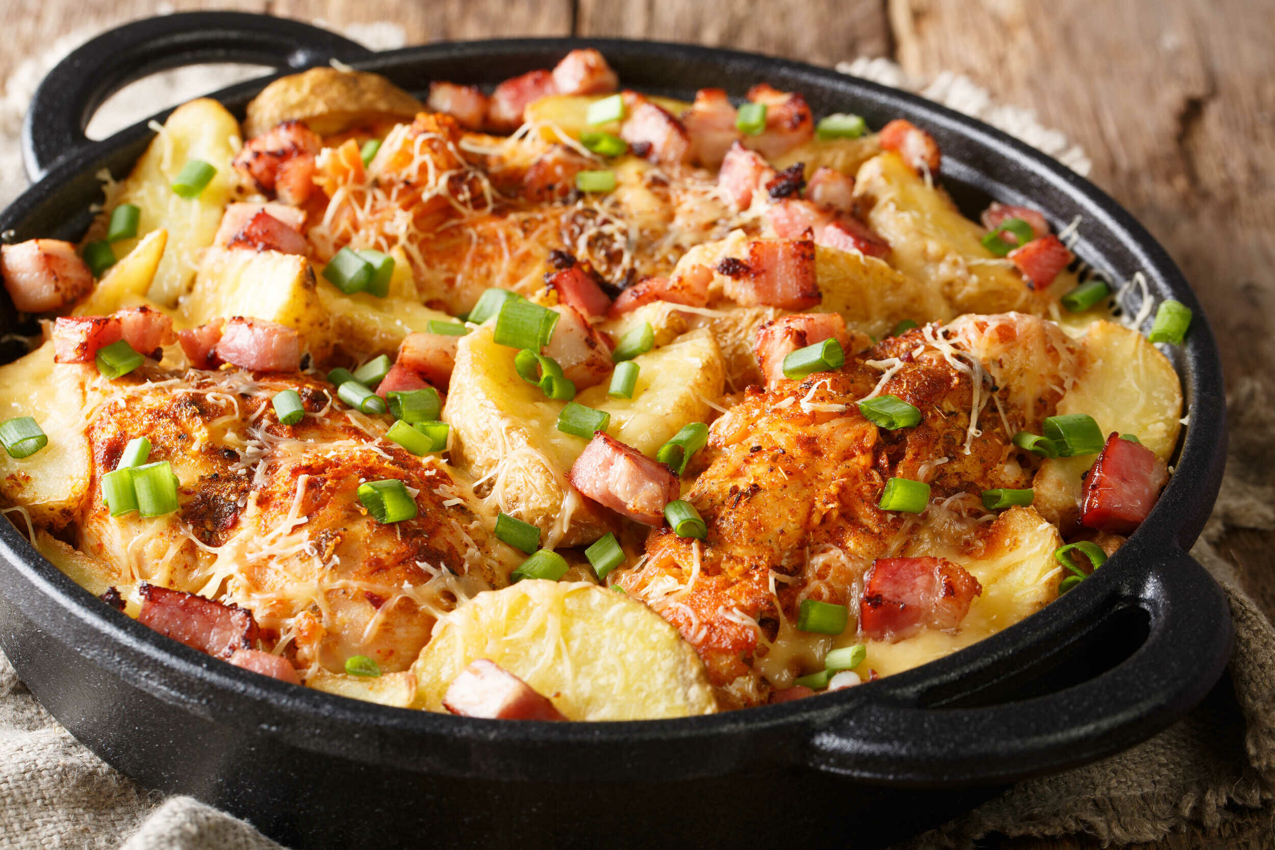 Nothing beats a plate full of tender chicken and hearty potatoes…except when both are in the same bite! Chicken & Potato Casserole layers hearty potato with savory poultry, with some sharp cheddar cheese and bacon for good (flavor) measure. This is rich and creamy, savory and scrumptious all in one dish. Chicken & Potato Casserole will become a staple in your home, because after one bite you’ll start planning when to make the next one!
