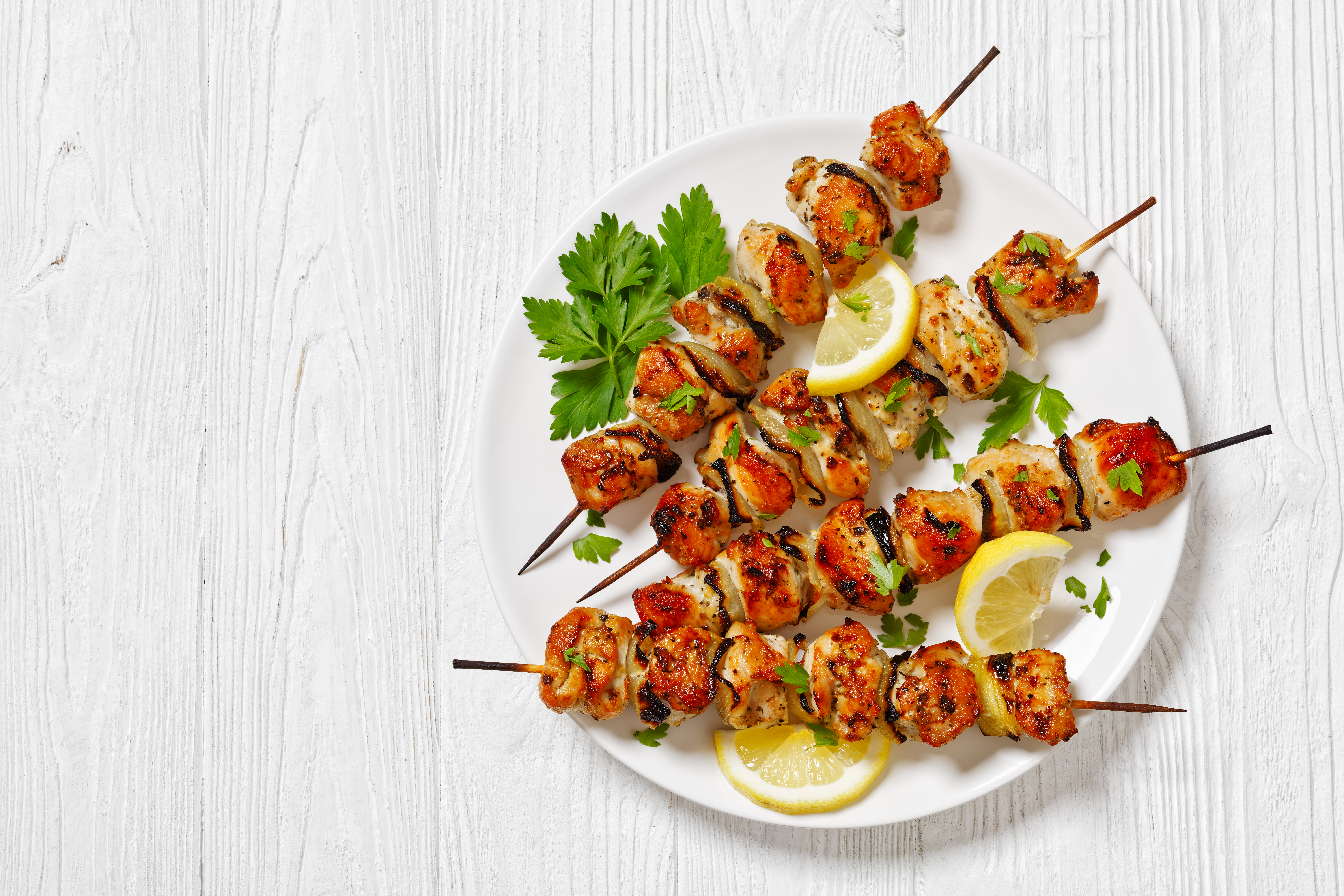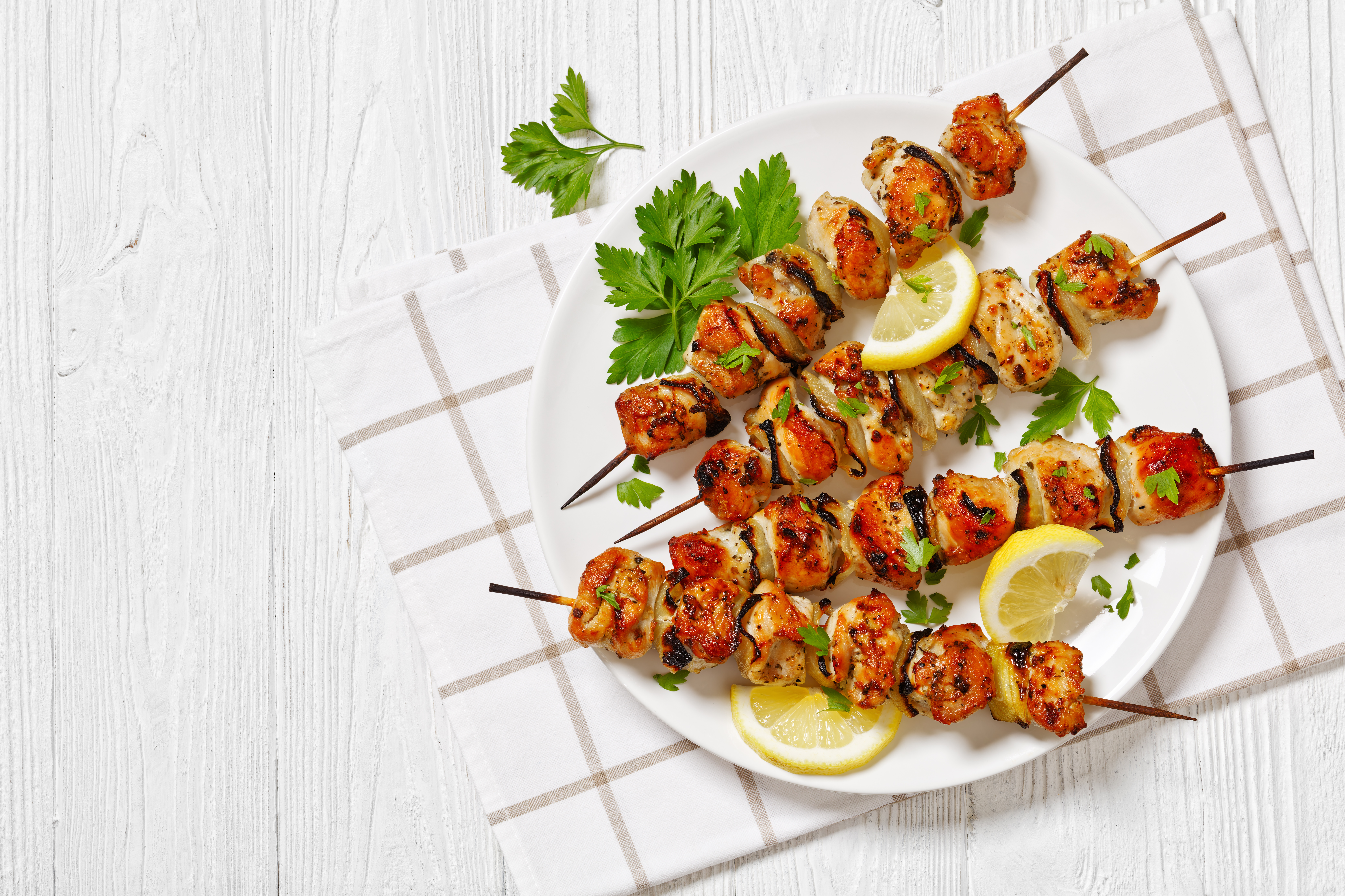 Step 8 -Serve the chicken souvlaki garnished with the parsley and the lemon slices.