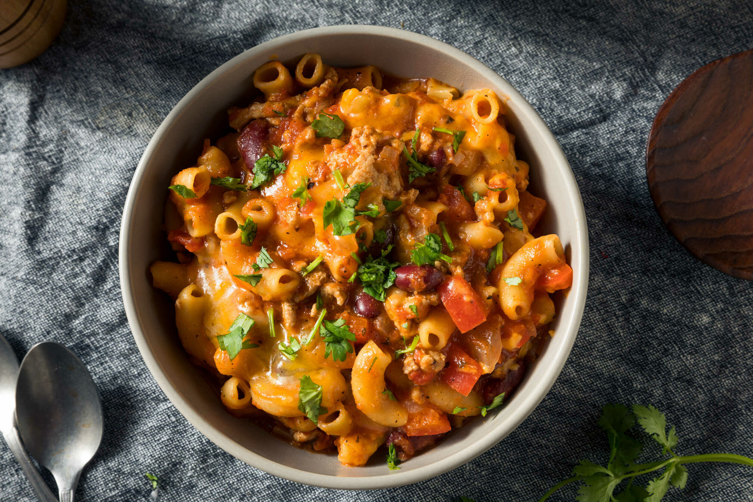 Chili Mac & Cheese Casserole combines all your favorite classics! Macaroni and cheese & chili in a casserole form — what more could you ask for? This dish includes tender ground beef, hearty kidney chili beans, and melted cheese for a meal that will leave you feeling full and happy. Make Chili Mac & Cheese Casserole for the perfect mixture of the best comfort and indulgence foods!