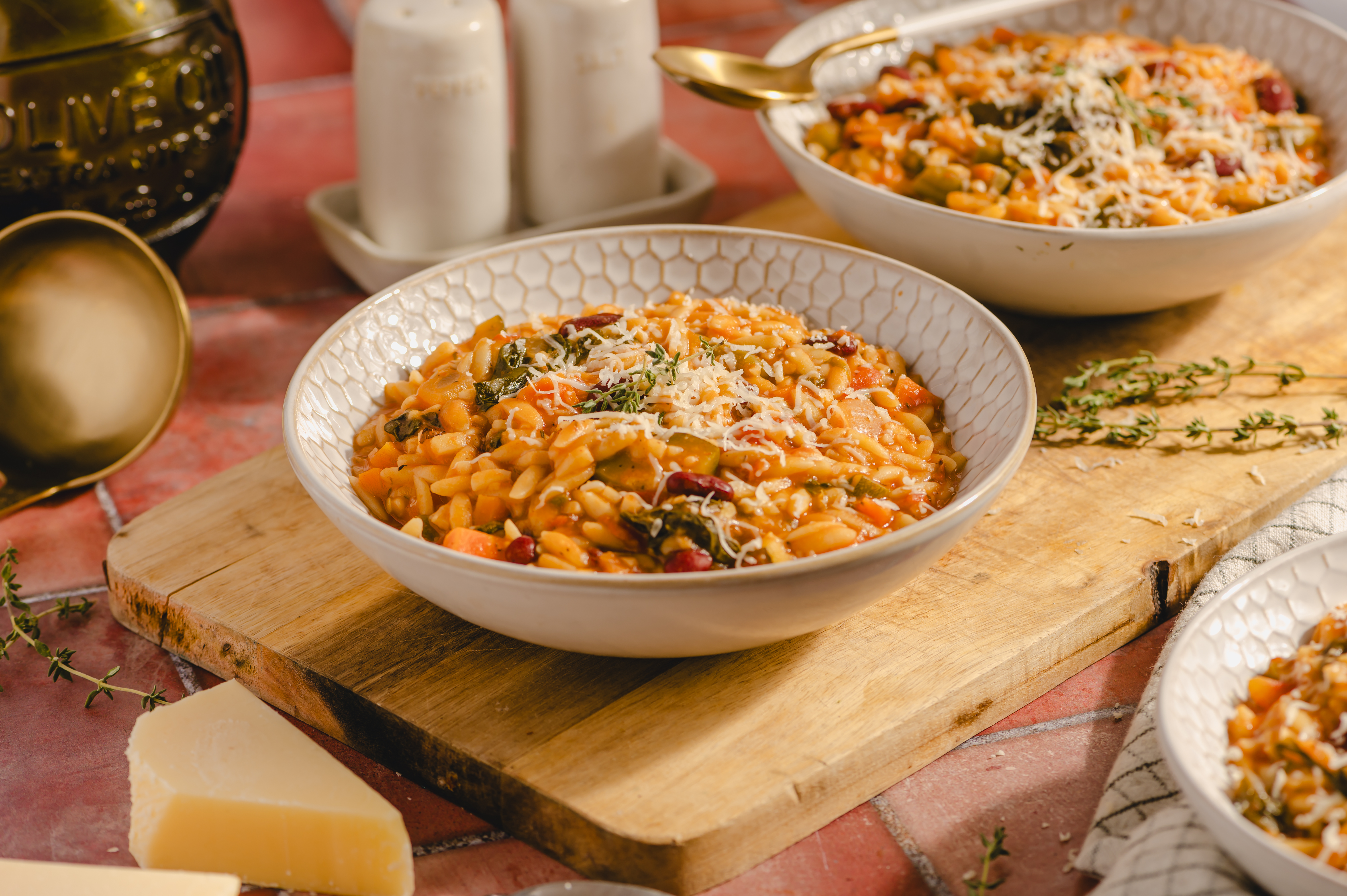 Ahhhh now this is what relaxation tastes like! Comforting Minestrone Soup is the warm hug of the soup world — fluffy orzo, lots (and we do mean lots) of creamy, hearty, savory beans, a fragrant and rich broth with notes of tomato and vinegar tang! You'll be feeling the happiness after a bowl of Comforting Minestrone Soup! Take comfort in a good meal!