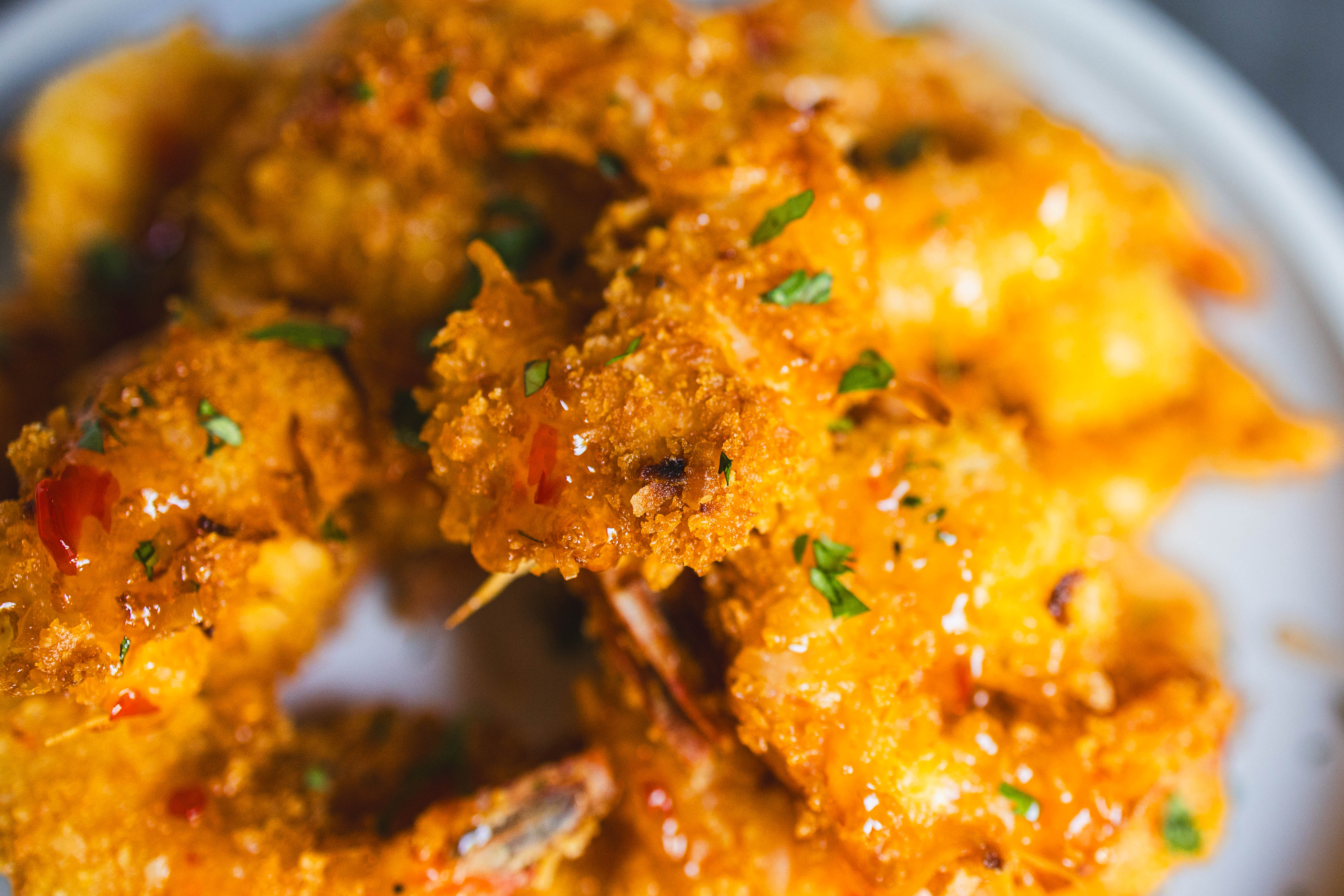 These are the kind of fried shrimp you crave when you're on a beach holiday! And in this case, you don't even need the beach! Dockside Shrimp are crispy and crunchy, with a sweet coconut crust surrounding a beautifully cooked savory shrimp! With a jammy, spicy sauce for dipping and diving, Dockside Shrimp will whisk your taste buds away to a tropical paradise!