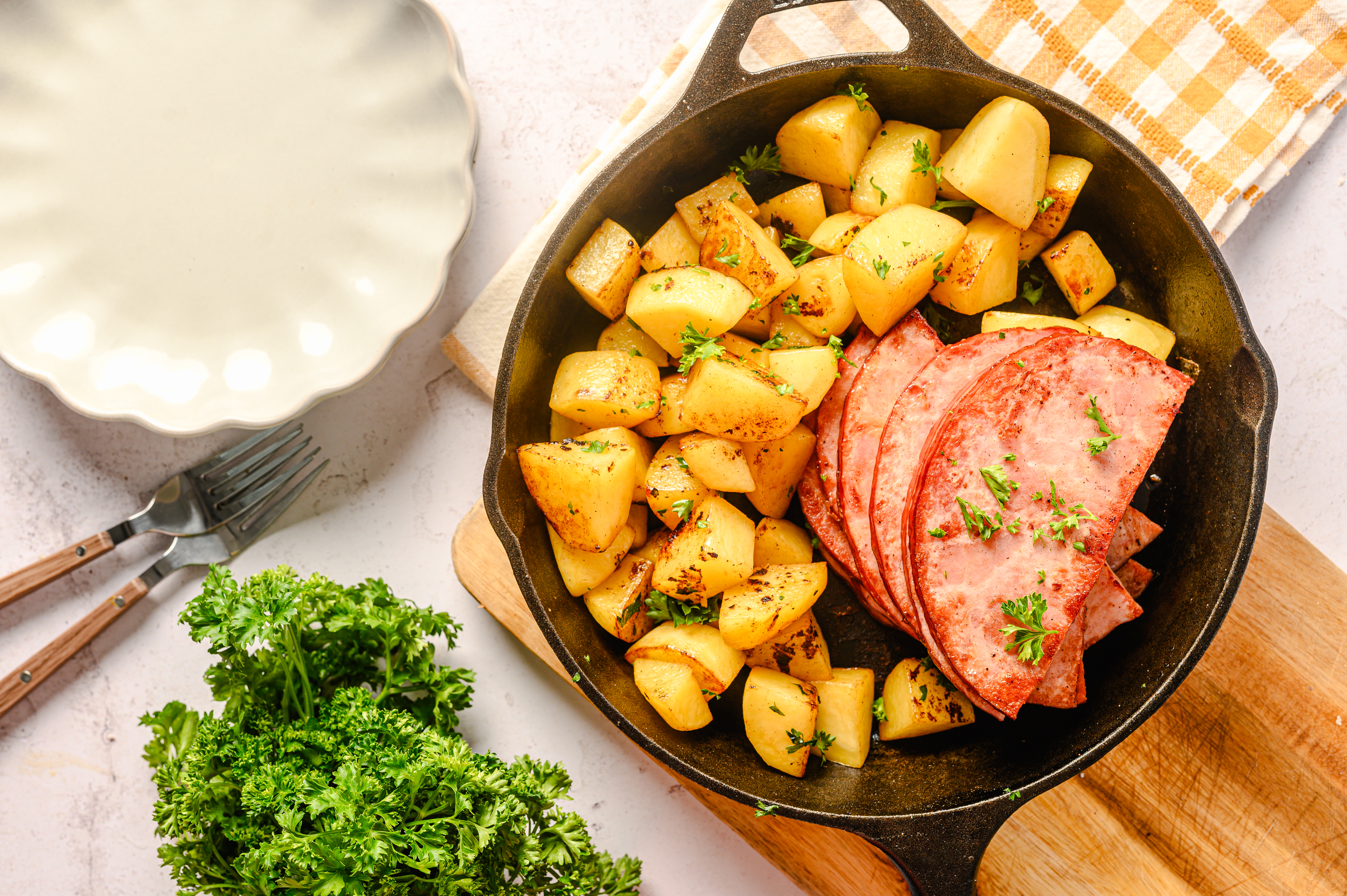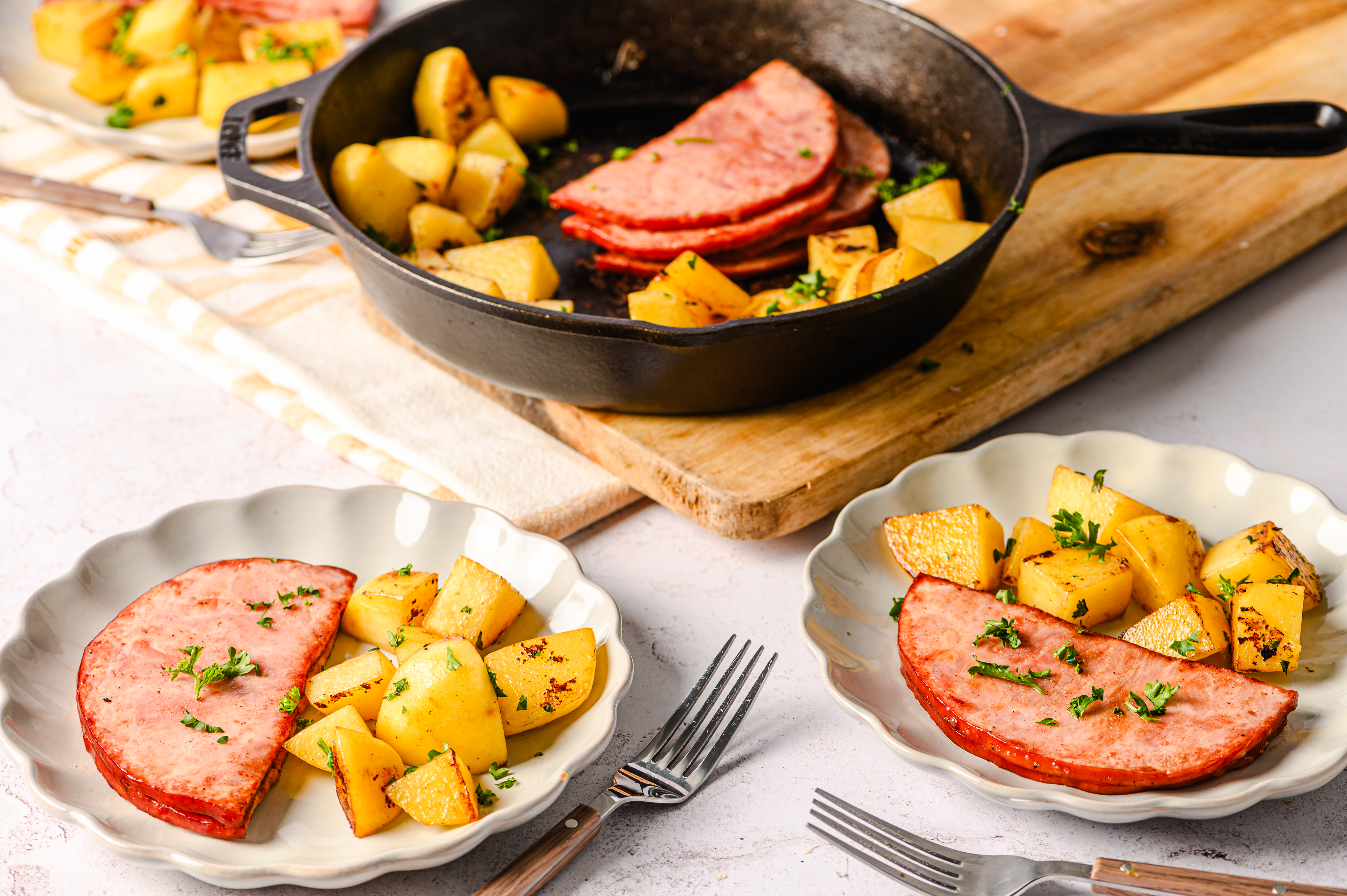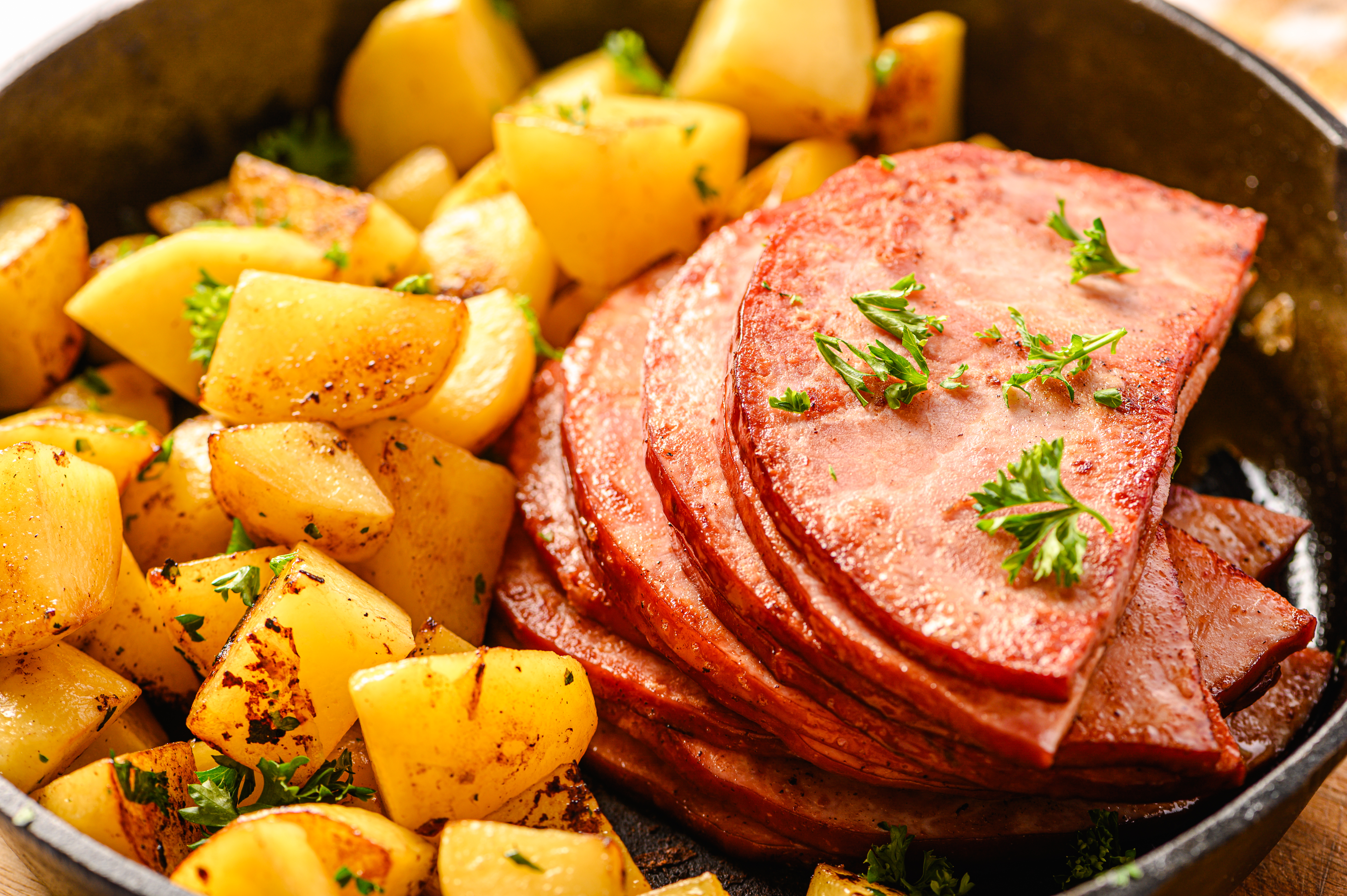 There are few meals more comforting than Down-Home Country Ham & Potatoes. Even saying the name out loud conjures up a classic American spread, with succulent, golden-brown ham and the crisp, tender-on-the-inside potatoes. Better yet, everything is enriched with creamy butter! Pull up a chair and let Down-Home Country Ham & Potatoes welcome you home after a long day or welcome you to a new day!