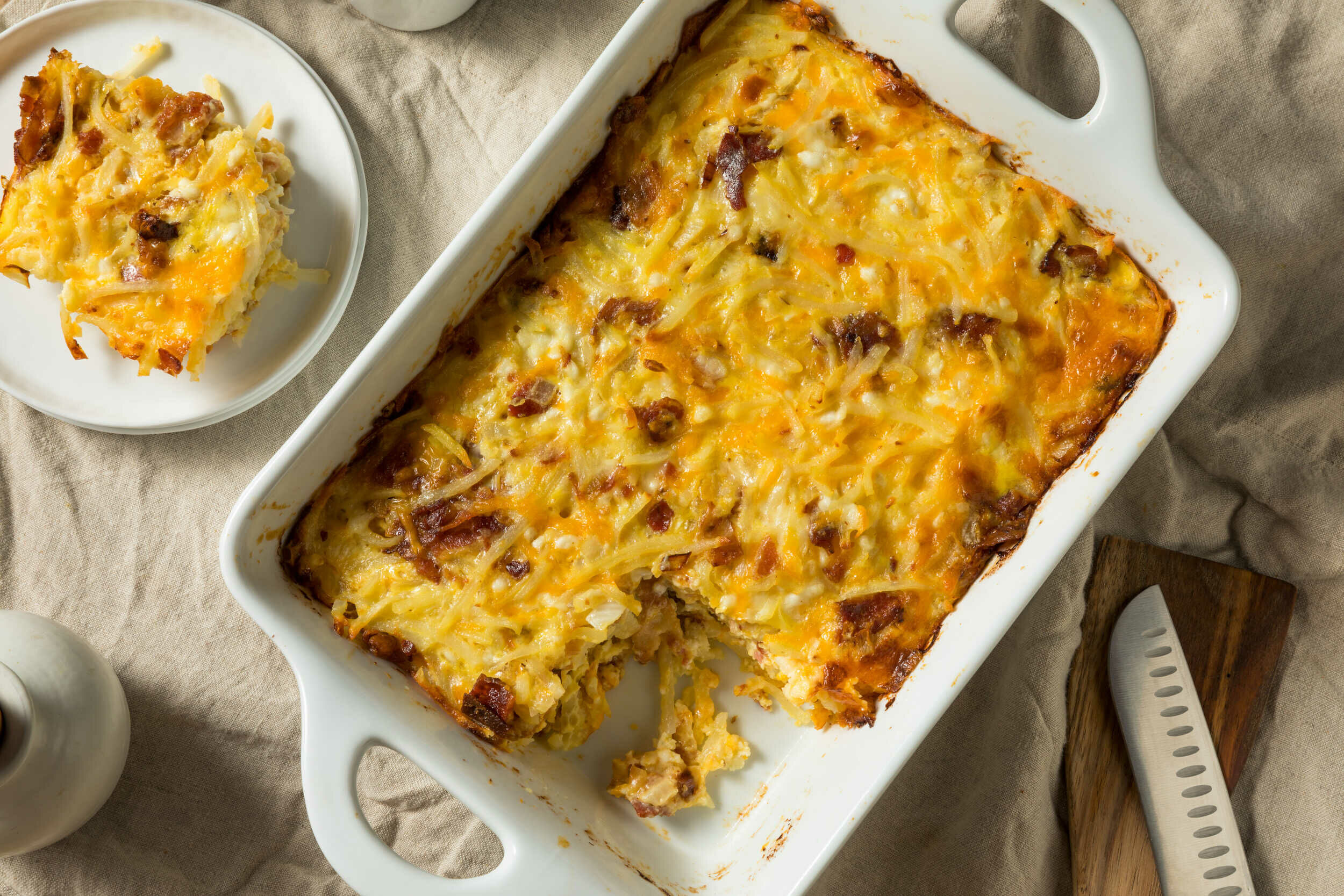 If you’re hosting overnight guests in your home, treat them with a tasty, savory Easy Breakfast Casserole in the morning. This recipe is so simple, you could probably make a version of it right now with what you have in your fridge. Use the base of this Easy Breakfast Casserole recipe and include whatever add-ins sound good to you. You can theme it to a particular cuisine or season—don’t be afraid to get creative with it!