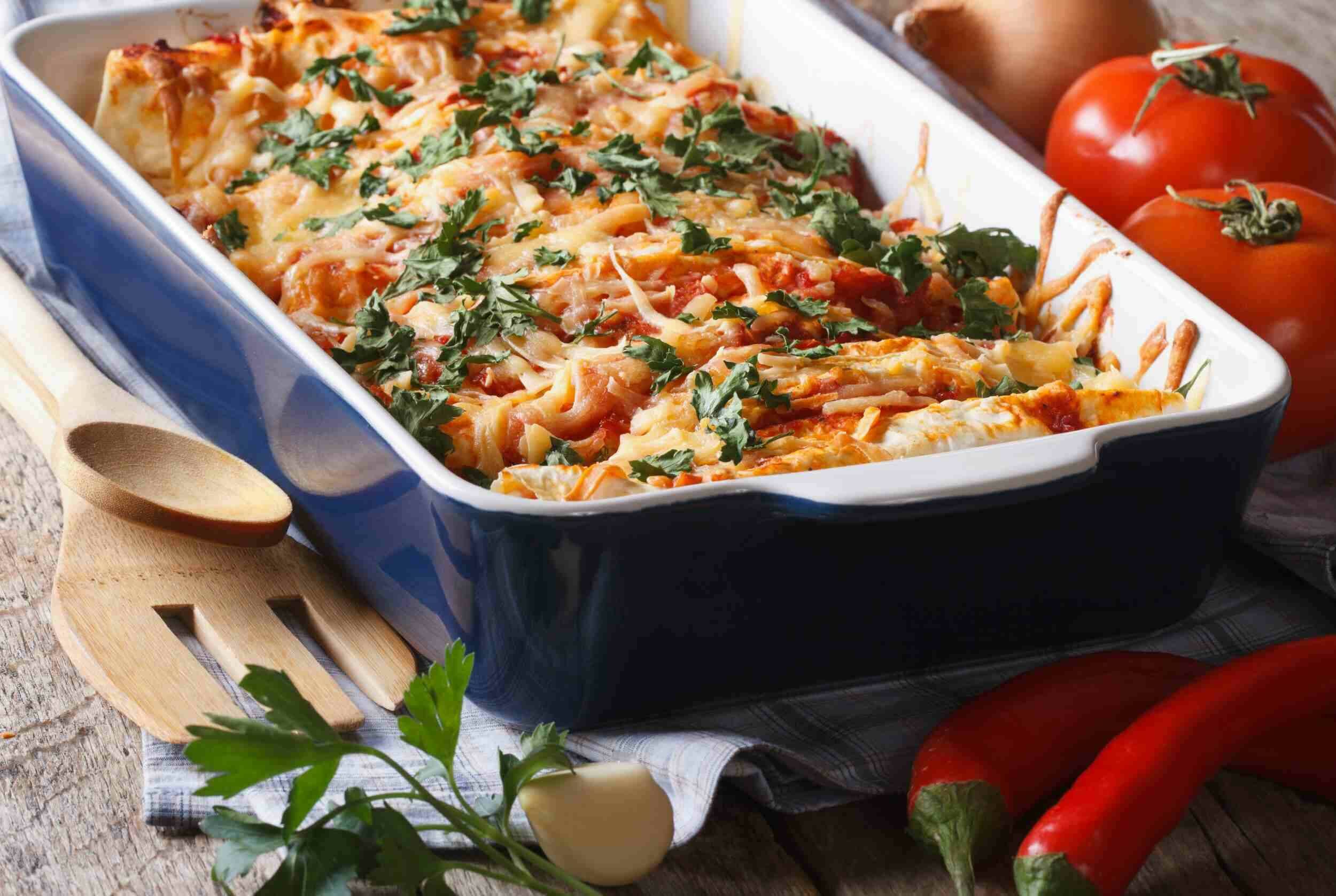 Step 14 -Set the rolled tortillas in a row in a baking dish.
