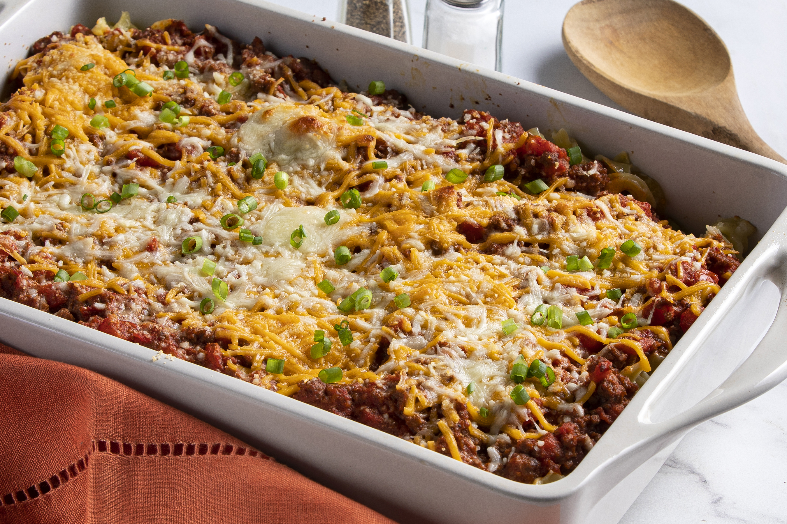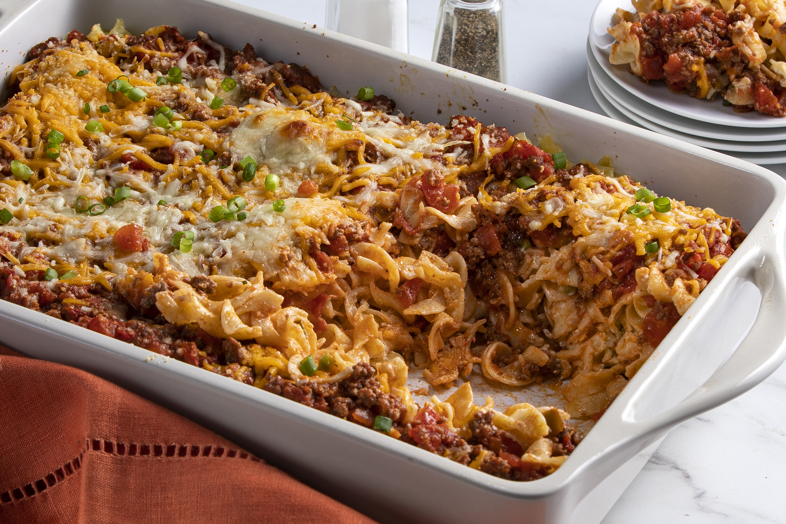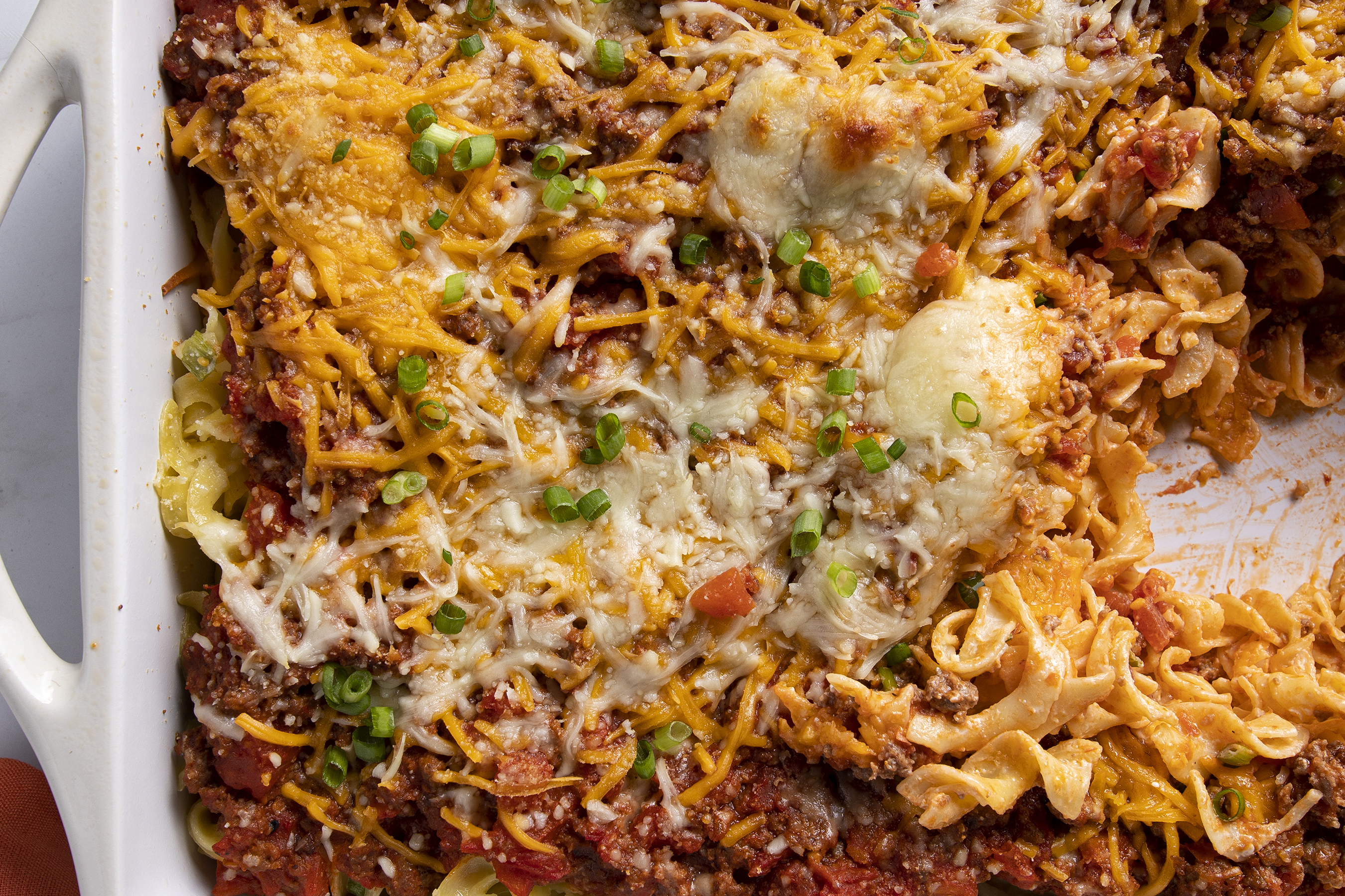 Yes indeed, anyone can enjoy this Easy Homemade Casserole. It's a simple yet scrumptious dish with a lot of personality and even more heart! On the bottom is a layer of egg noodles swimming in a creamy, tangy sauce that's then topped with even more rich, bright, and meaty sauce, all finished off with a hearty dose of melty cheese. It's never been easier to make an incredible dinner than with this Easy Homemade Casserole!