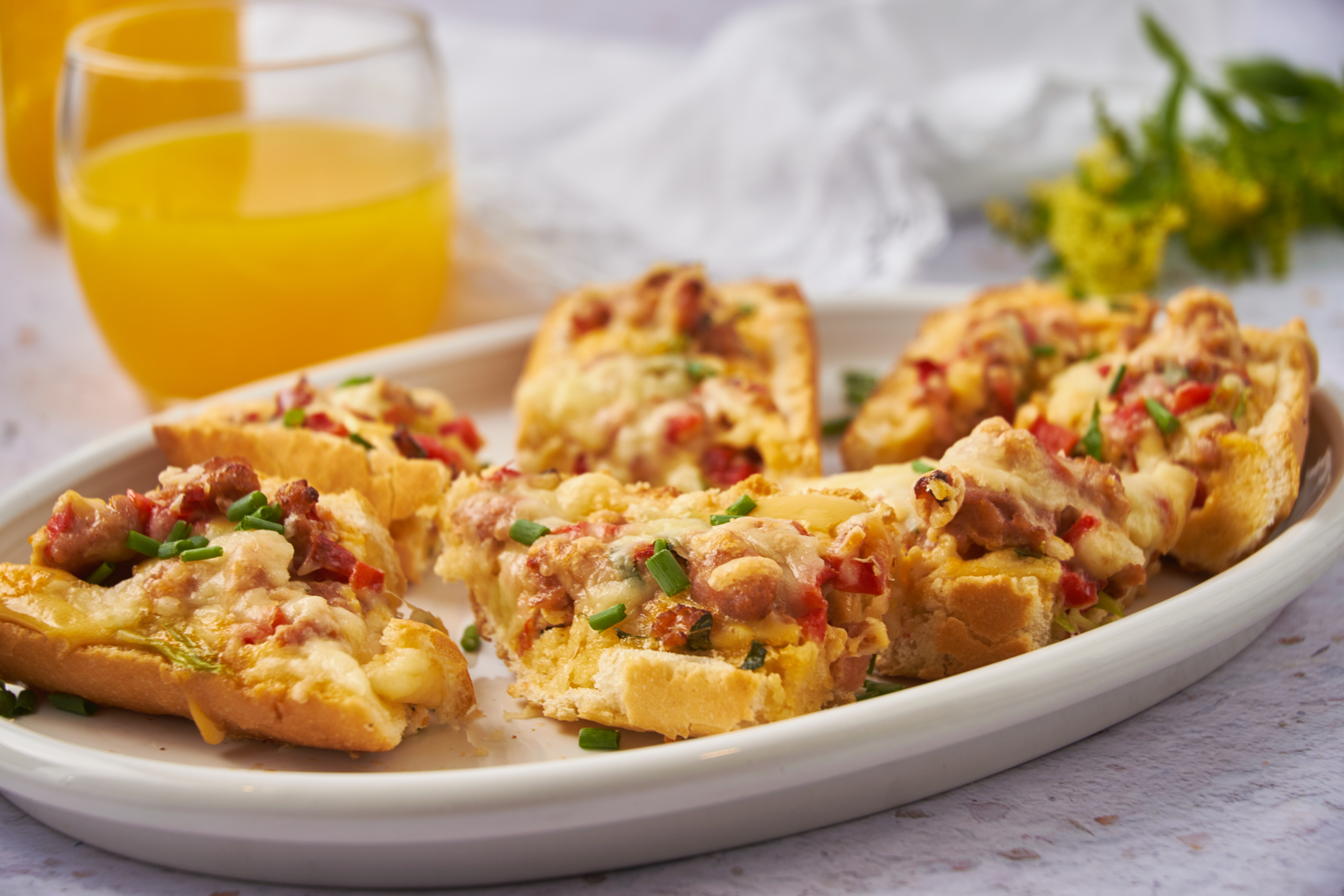 When you're craving all the breakfast things in one bite, this Everything Brunch Bake is the way to go! This delicious dish is the bread bowl of all the bread bowls! Filled with all your favorite sunrise staples, like fluffy eggs, flavorful veggies, spicy sausage, and melty cheese, you'll never return to those bland, rubbery egg casseroles again. You'll soon see how this Everything Brunch Bake is overflowing with everything epic that everyone at your breakfast table will be eager for!