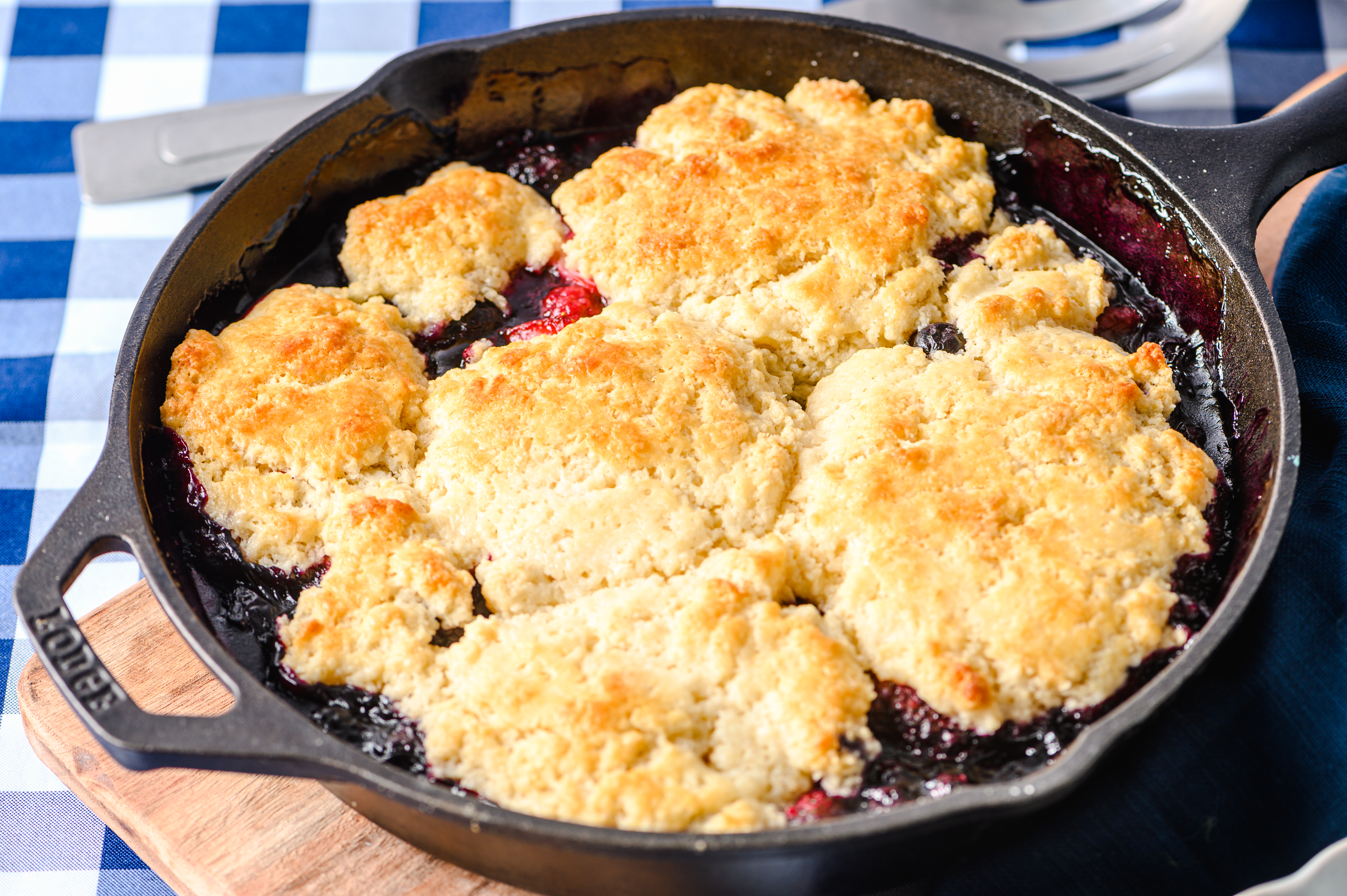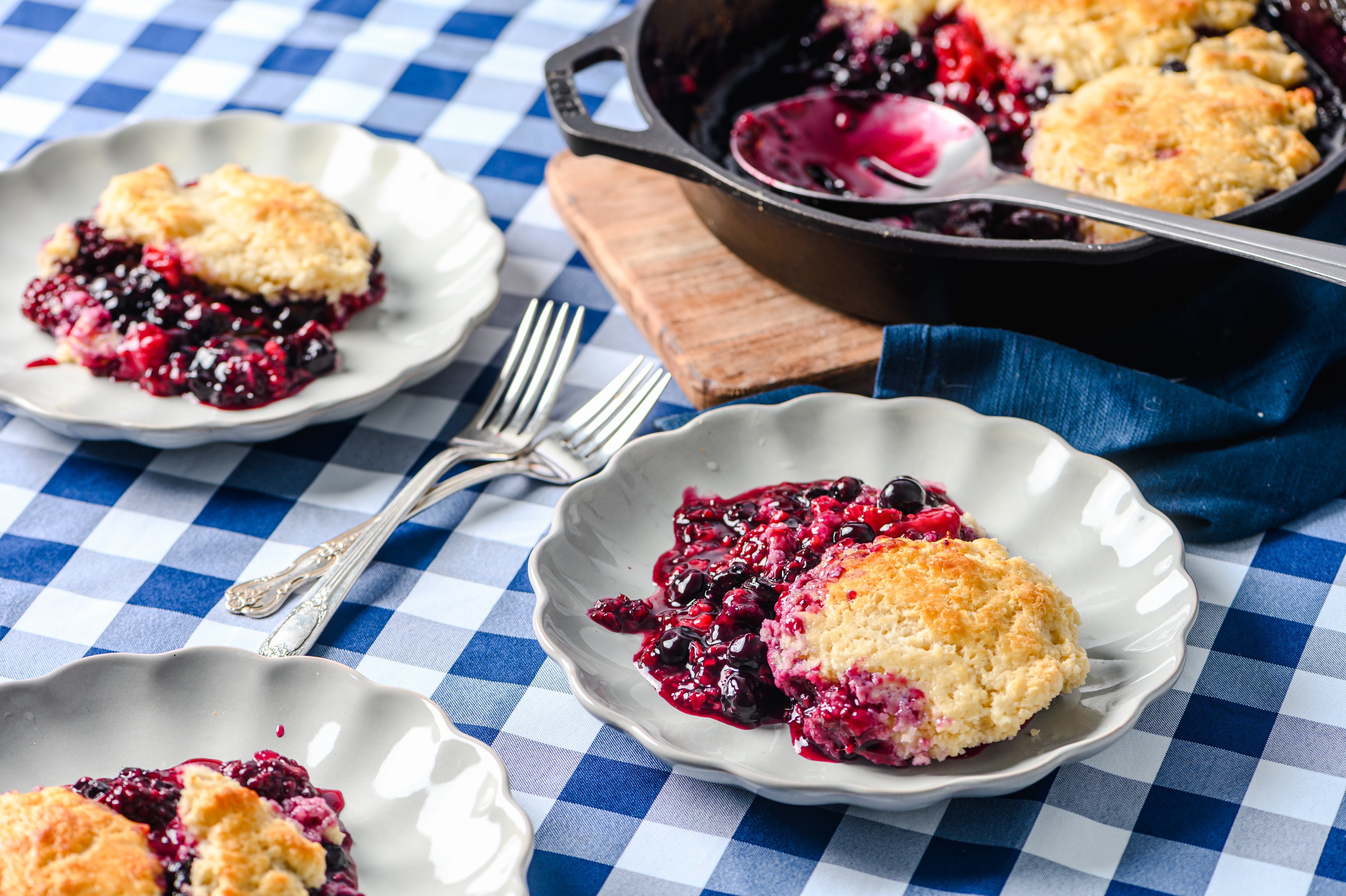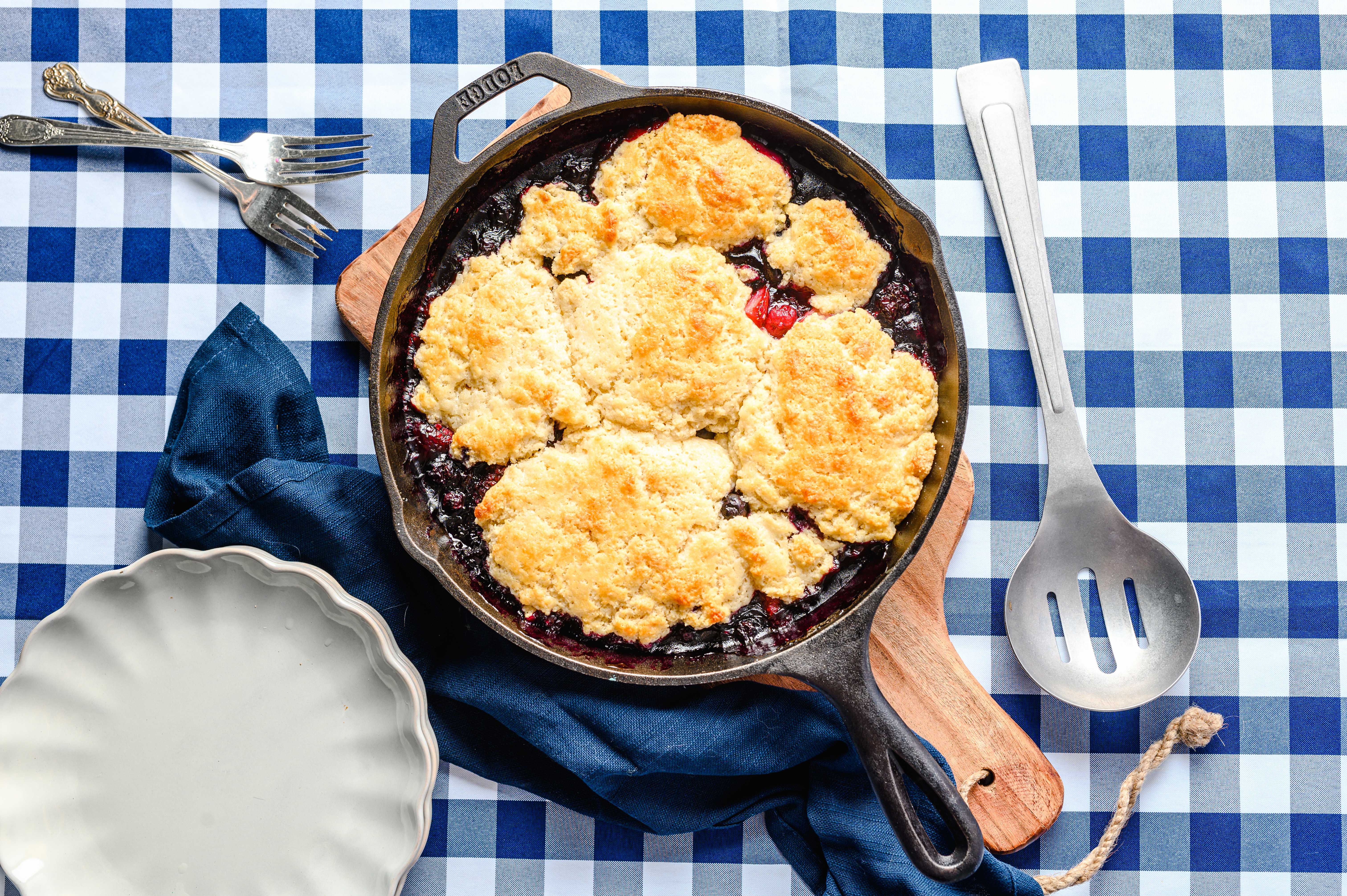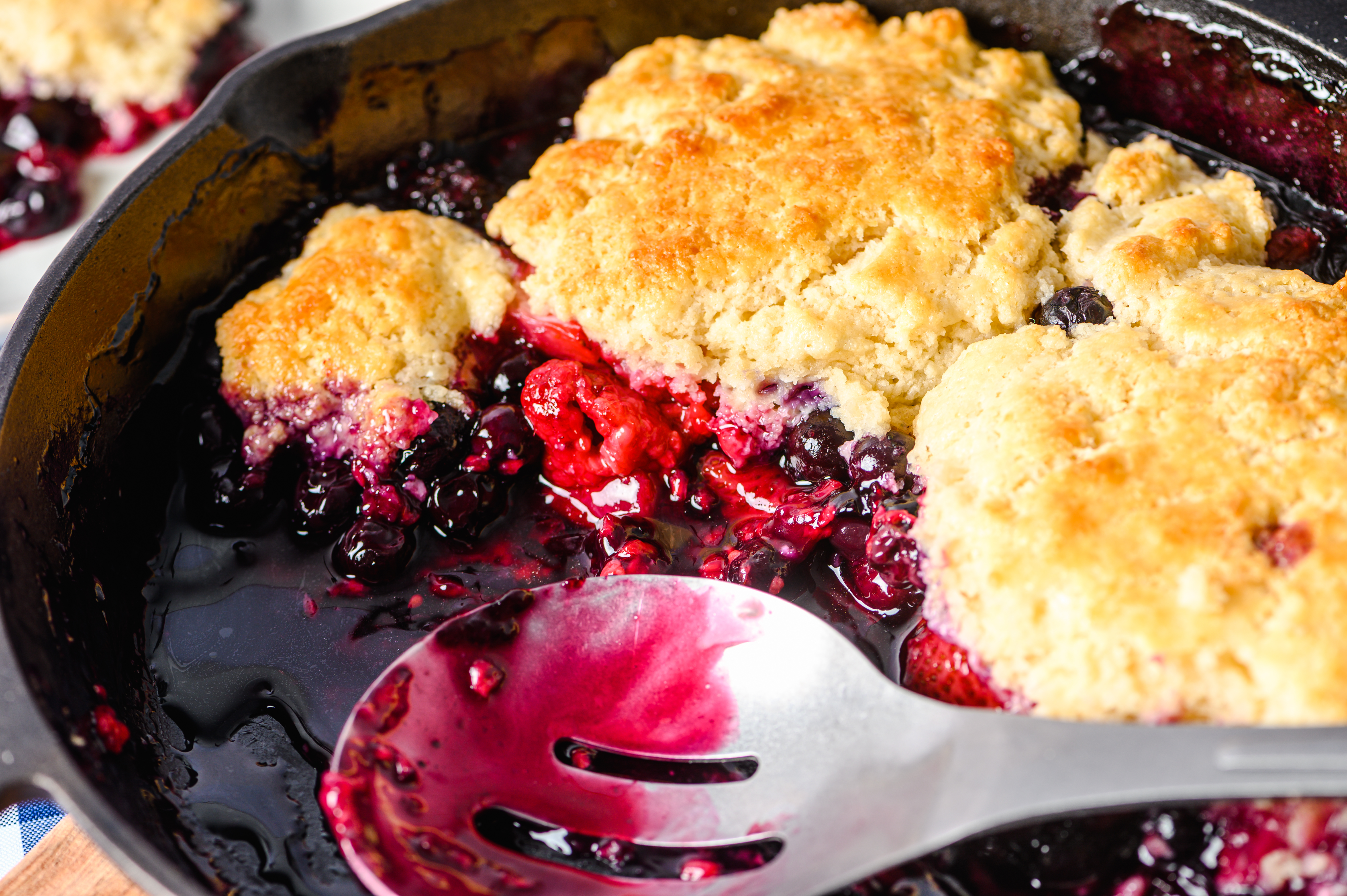 If you're in need of a sweet treat and would like to have it ready at the speed of light, then this Fast Berry Cobbler is your lickety-split dessert solution! Oh, and the expedited baking time doesn't take away a bit of its flavor. Don't you worry about that! The berry filling is super sweet with a nice touch of tartness. And the sugary biscuit topping is fluffy, yet crispy, and just the perfect thing to soak up all the juicy, fruity flavors. It might be shocking that Fast Berry Cobbler is all made from scratch, but once you make it and taste it, you'll see it for yourself!