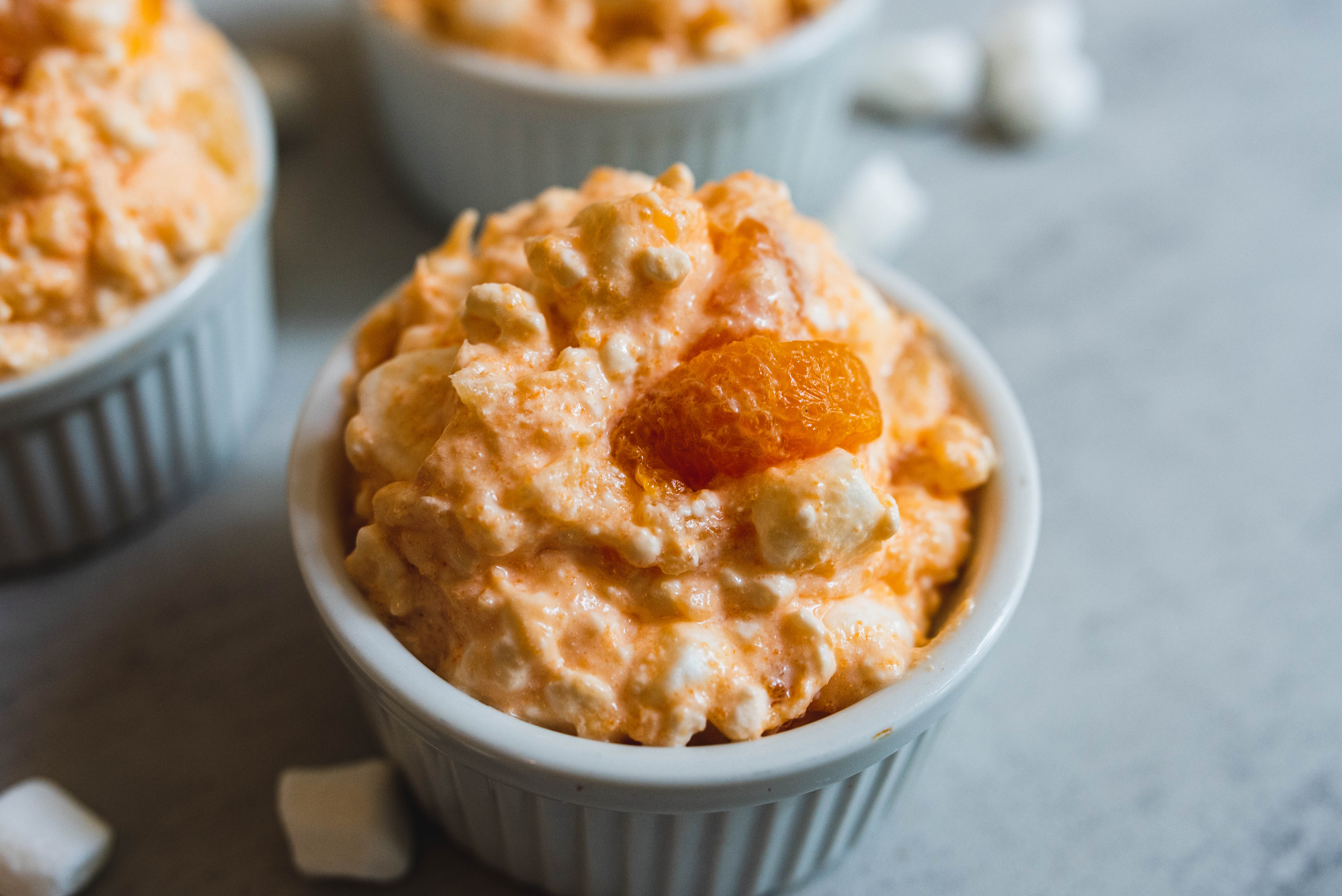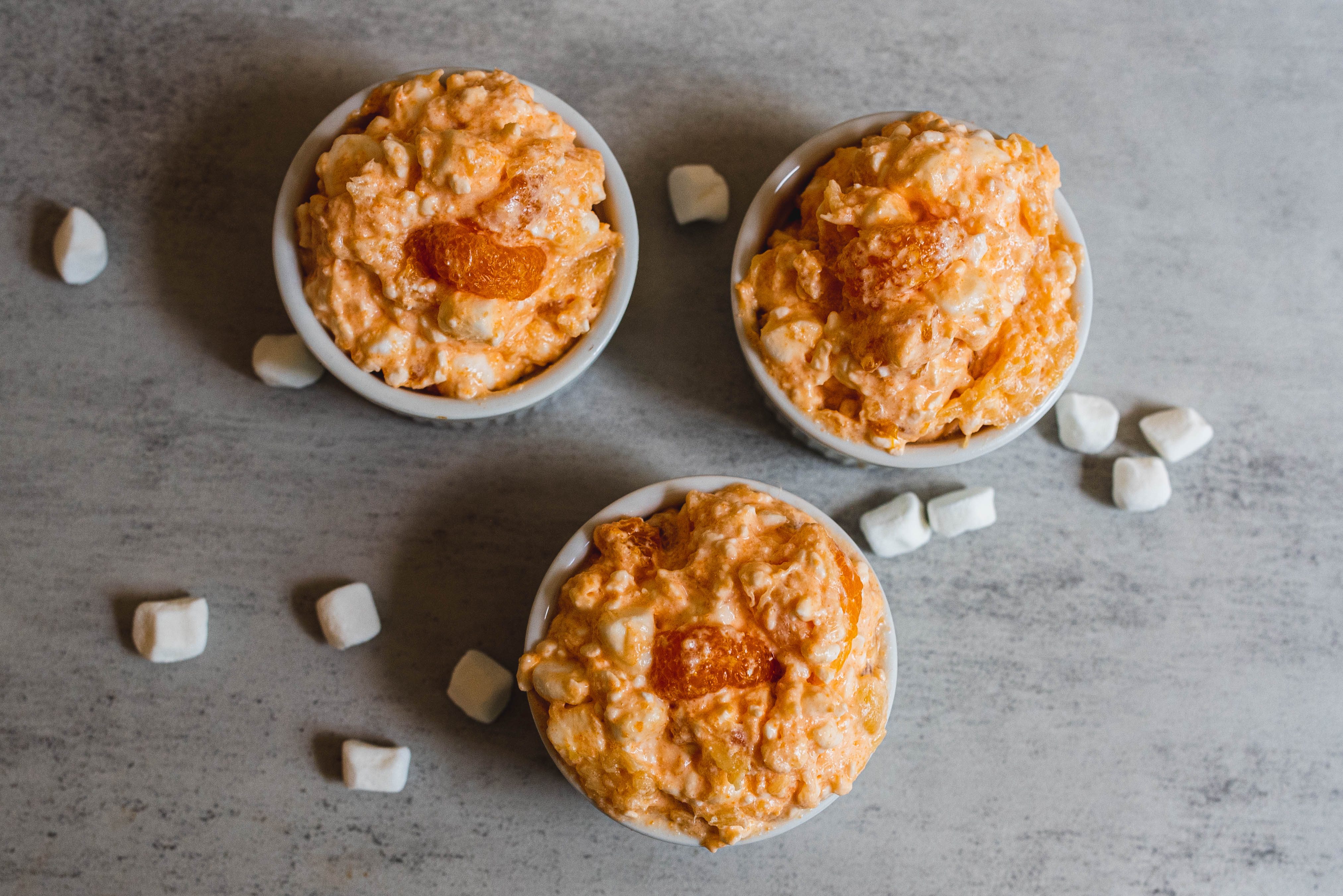 The Fluffiest Orange Salad is just a citrusy dream! Imagine your favorite flavors from the beloved orange creamsicle, all mixed together and eaten with a spoon rather than licked off of a popsicle stick. It's quite heavenly! The cloud-esque texture paired with the juicy oranges and pineapples just make the most marvelous mixture. And the sprinkle of mini marshmallows adds a sense of child-like wonder we all could use a little bit of. We're pretty certain that the Fluffiest Orange Salad is what happens when your food dreams come to life!