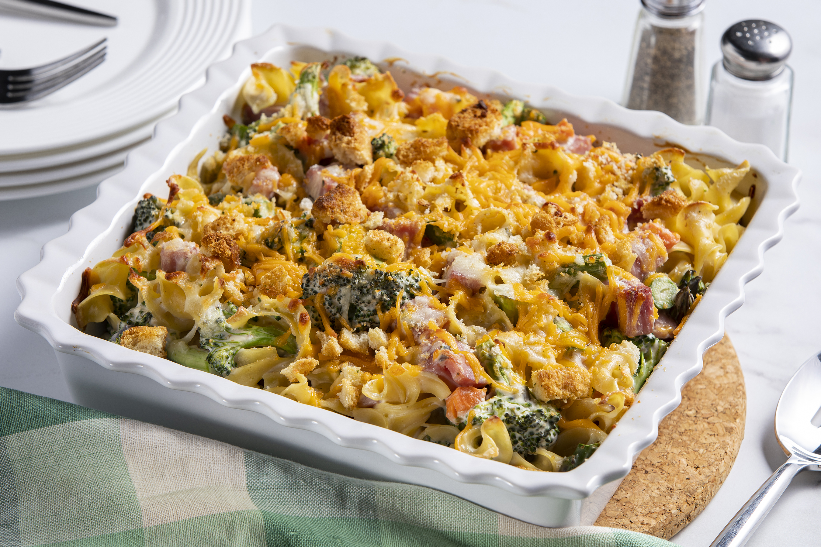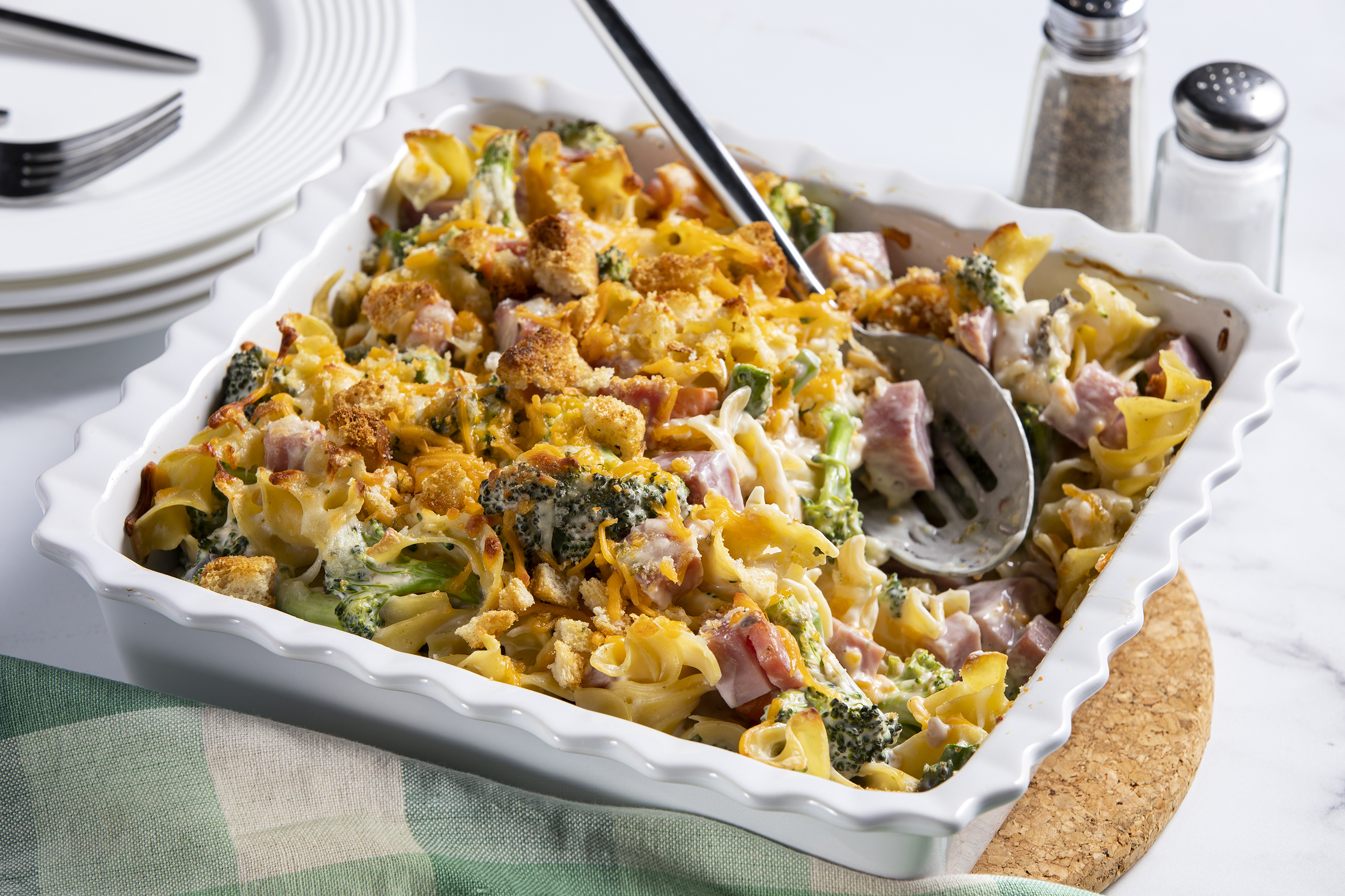 This dish knows just the right way to ham it up! There's plenty of savory, salty ham in Hammy Casserole, of course, mingling and sharing the stage with buttery egg noodles, a creamy mushroom sauce, and plenty of fresh and refreshing veggies! Melted cheese makes all the difference, but Hammy Casserole knows it's really all about the ham! Good pork times all around!