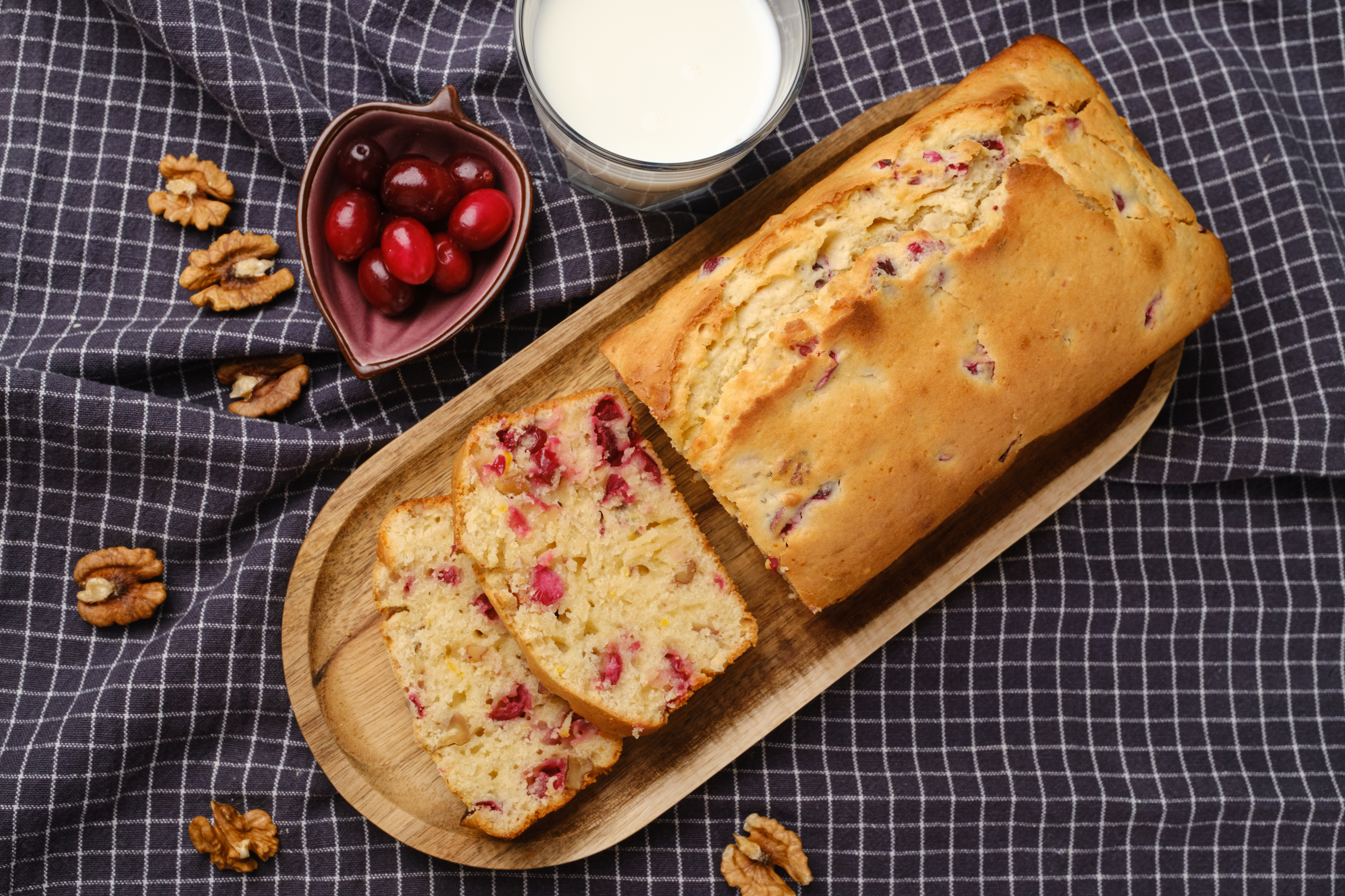 A delightfully delicious quick bread with all the holiday cheer baked in? Yes, please! Holiday Cranberry Bread is tender, buttery, and infused with that classic Christmas flavor combination as bright as the lights on your tree; sunny orange and tart cranberry! Of course, this Holiday Cranberry Bread—the cake you can eat for breakfast guilt-free—has a little more joy for the world up its sleeve; crunchy walnuts for texture and a little extra wonder! Well, it's no secret Holiday Cranberry Bread is on Santa's Nice List!