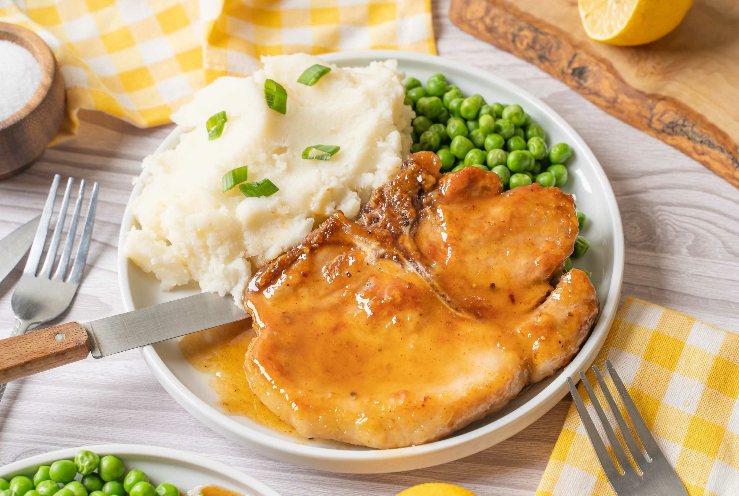 Honey Schnitzel balances sweet and savory for a simple and delicious main course! The pork is cooked to juicy perfection and then draped in a honey and citrus sauce infused with extra meaty flavor. Served alongside fluffy mashed potatoes and green peas, Honey Schnitzel is hearty, hot, and satisfying after a long day. It only takes 20 minutes to make so you can enjoy it any day of the week!