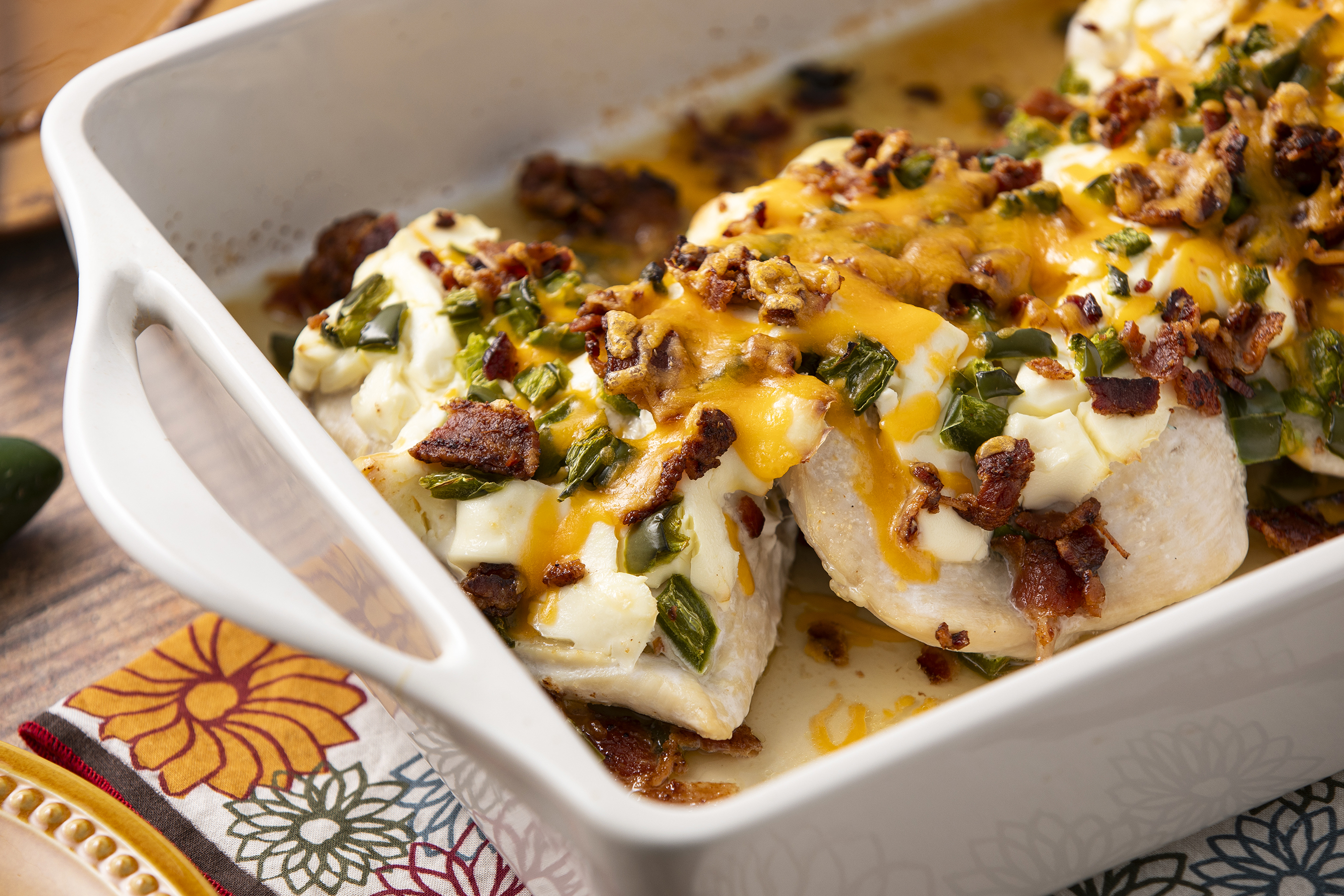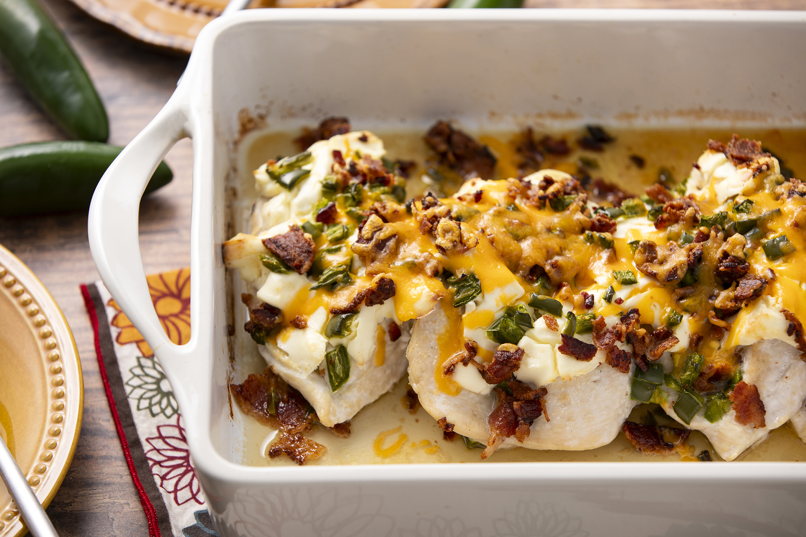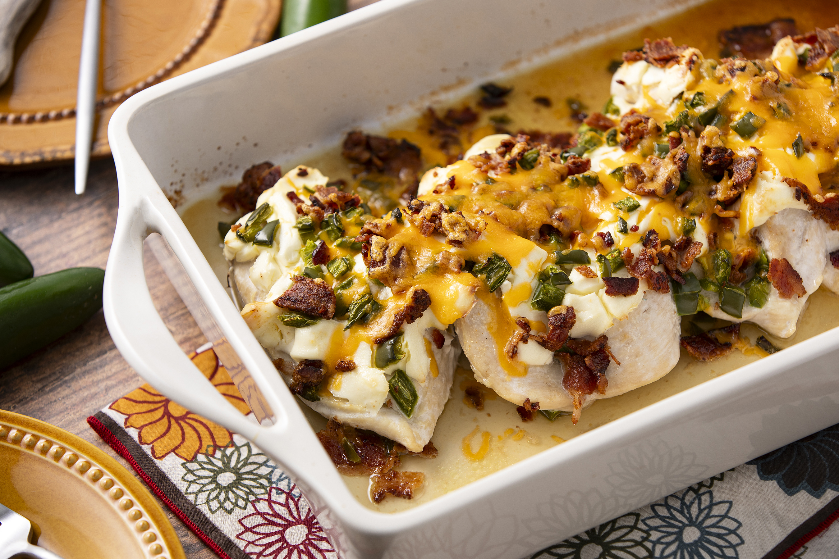 One of the most beloved appetizers gets transformed into the best kind of main course! Yay! Jalapeño Popper Chicken is savory chicken slathered in tangy cream cheese and topped with spicy bites of jalapeño for that hot-and-cool sensation that makes jalapeño poppers so enticing! Throw on a little succulent bacon and melty cheddar cheese for fun and Jalapeño Popper Chicken becomes something extraordinary!