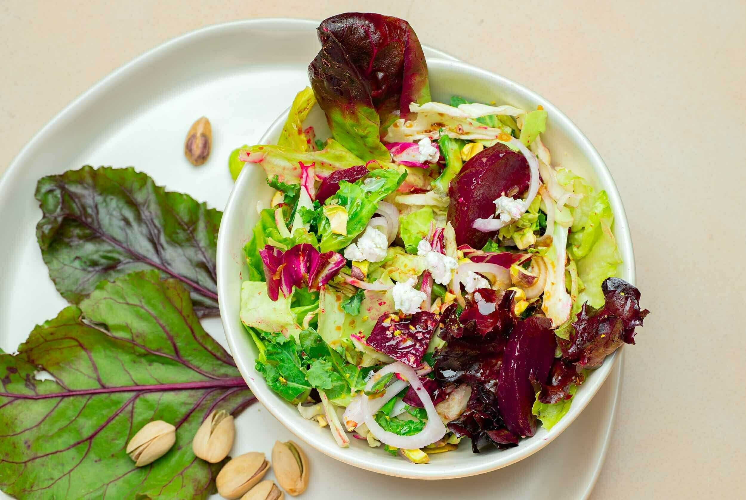Bites of Just-Beet-It Salad will have you dancing like you just can't stop! The tartness of the beets will really make you start to jig. When they're laid on a fresh bed of baby greens, crumbled with creamy goat cheese and salty pistachios, and drizzled with bold balsamic vinaigrette, the moves become uncontrollable! All mixed together, the energizing flavors of Just-Beet-It Salad will make you want to moonwalk!
