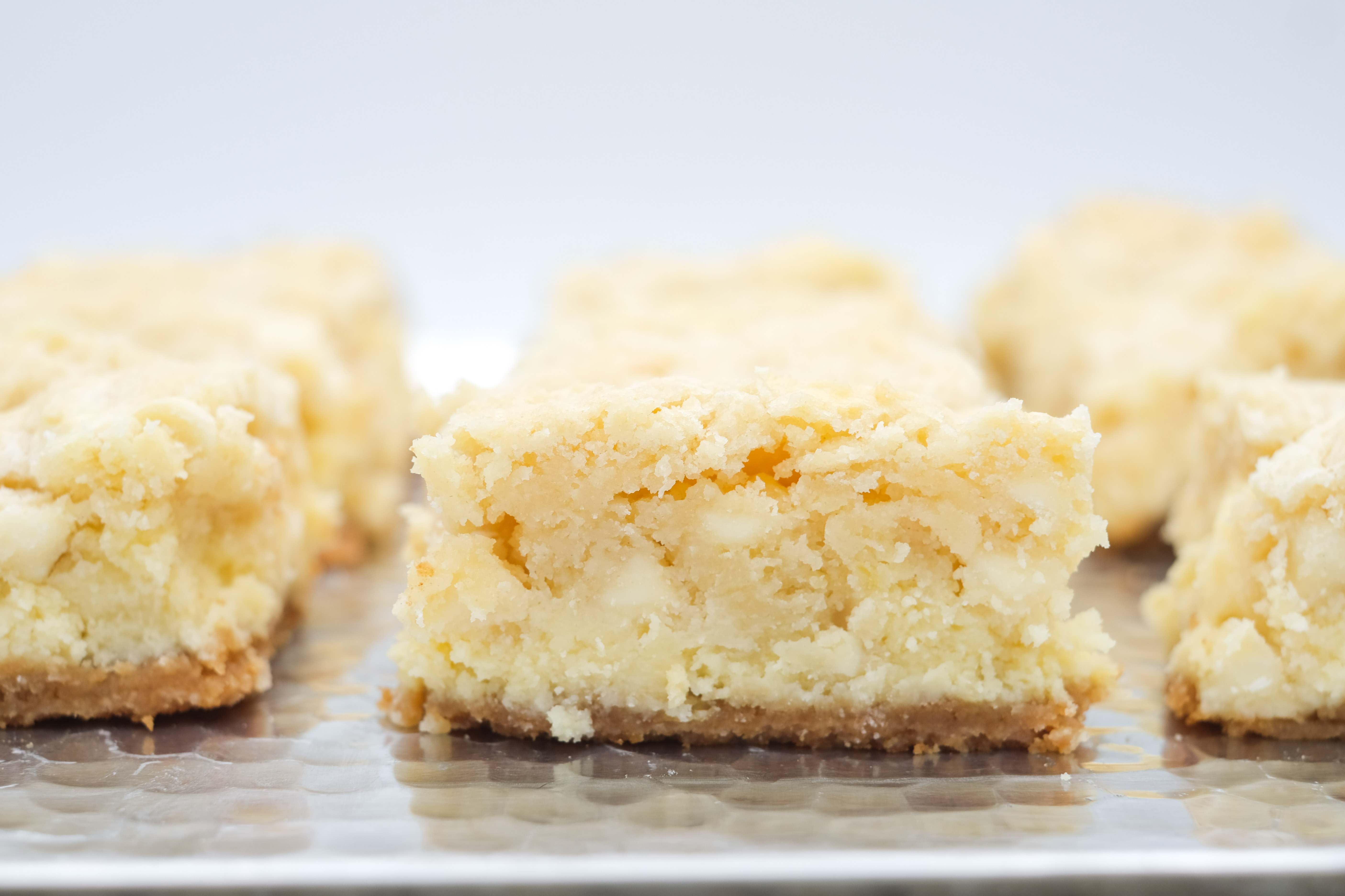 Lemon Cheesecake Bars bring three times the fun! How?! Well, there are three amazing layers that are yummy on their own, but when they come together... your tastebuds enjoy the sweetest of treats! What makes up these luscious layers, you might be wondering? Well, the foundation is made up of a buttery, cookie crust. Not a bad start! Then, you have a creamy, sweet, citrusy filling. And last, but certainly not least, there's a white-chocolate-filled vanilla cookie spread on top for a moist and crunchy layer to this delicious dessert! That's a lot of fun if you ask us! Lemon Cheesecake Bars bring you a trio of delight that you experience with every crumble!