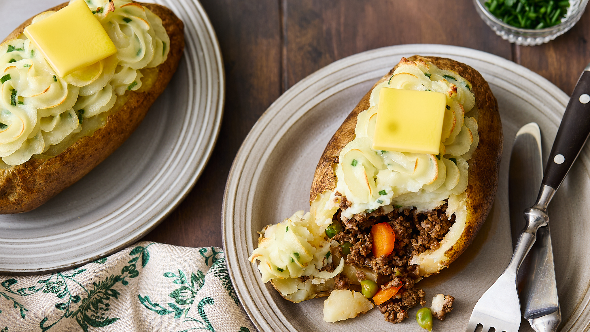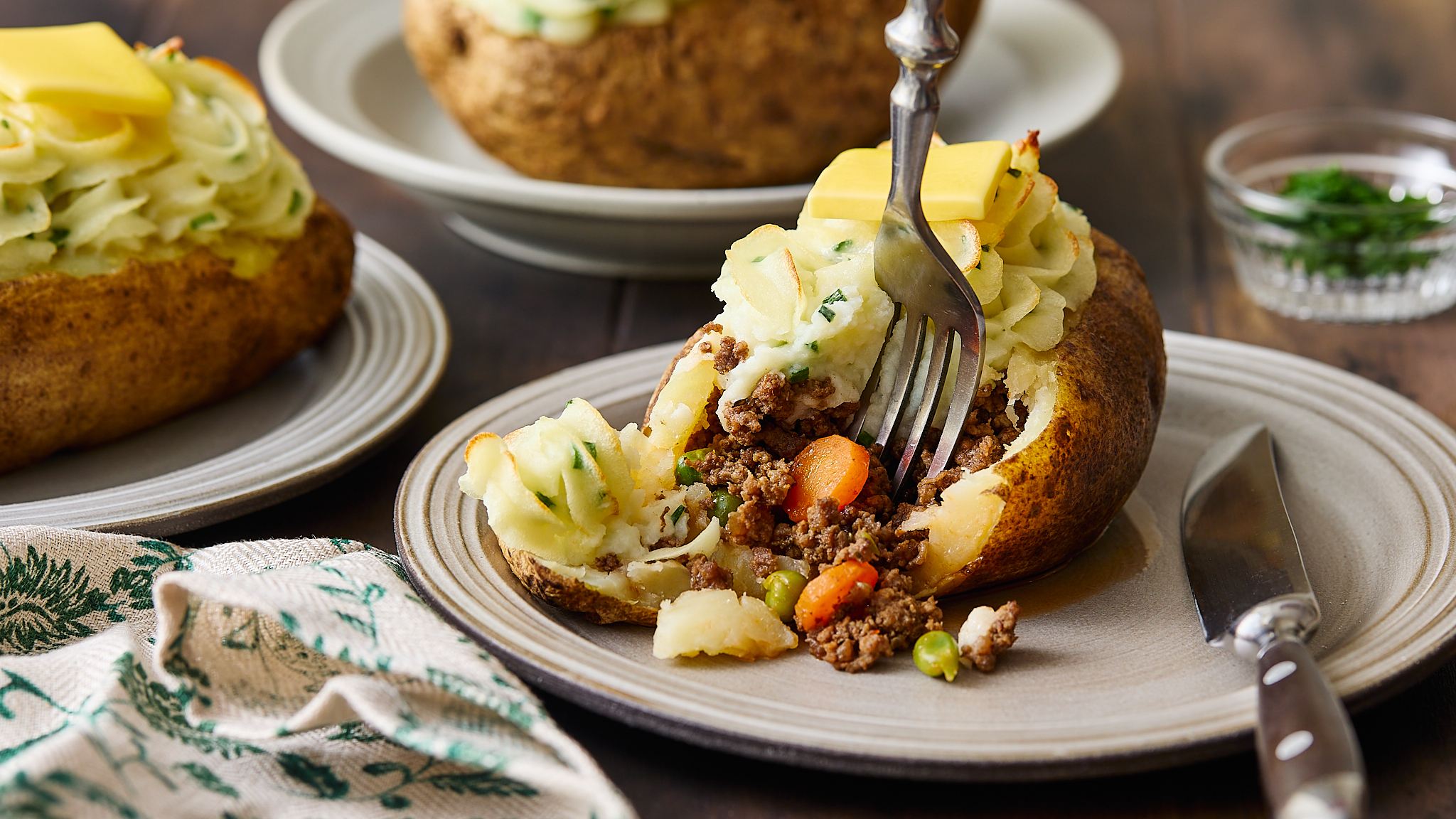 We've all heard the association between Irish cuisine and potatoes, but this one takes it to a whole new level! Magical Shepherd's Pie Bowls are literally crispy potato skin bowls stuffed with the savory, saucy beefy goodness of Shepard's Pie. Then, of course, each one is topped with buttery and creamy mashed potatoes and baked until delightfully browned on top! Magical Shepherd's Pie Bowls cast a spell over your taste buds!