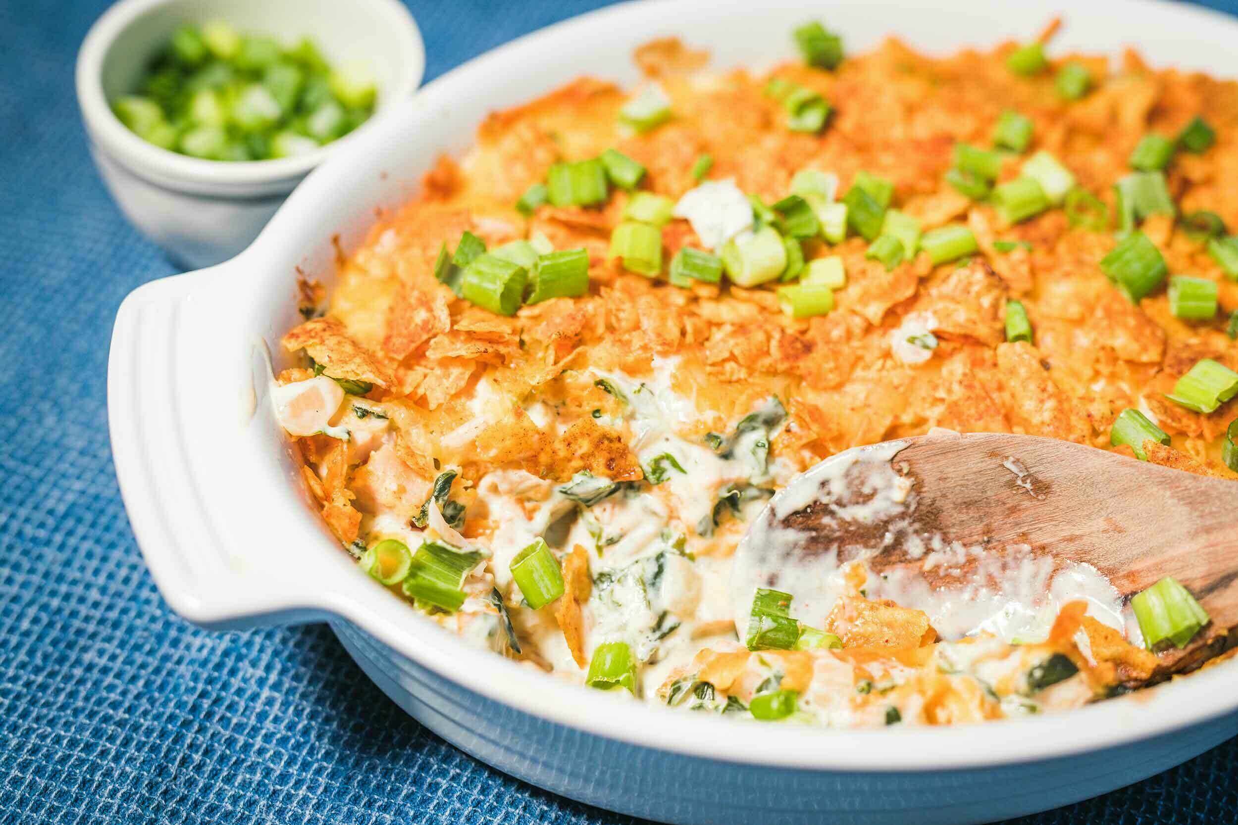 - 1 (9.75-ounce) package nacho-flavored tortilla chips, crushed