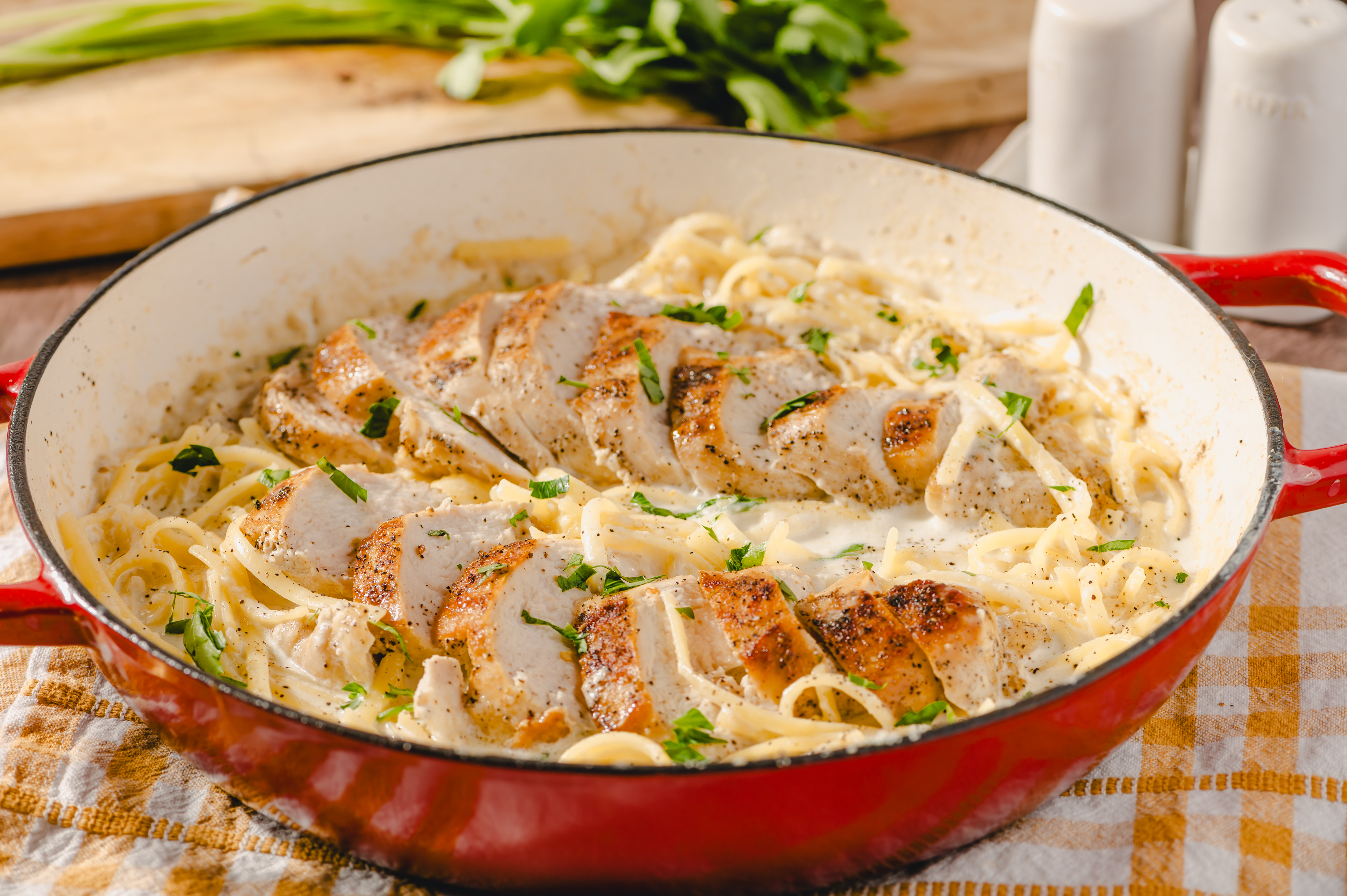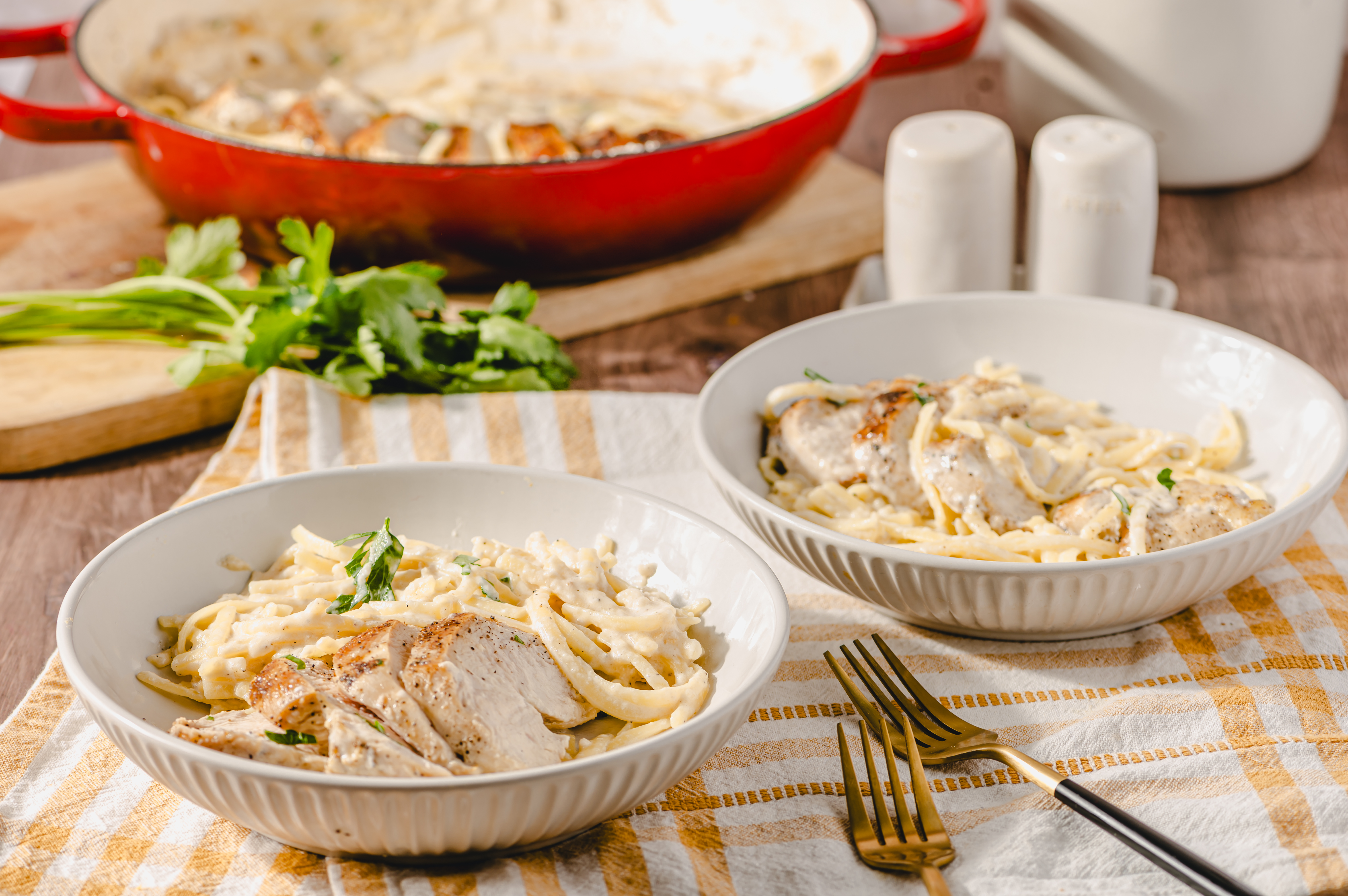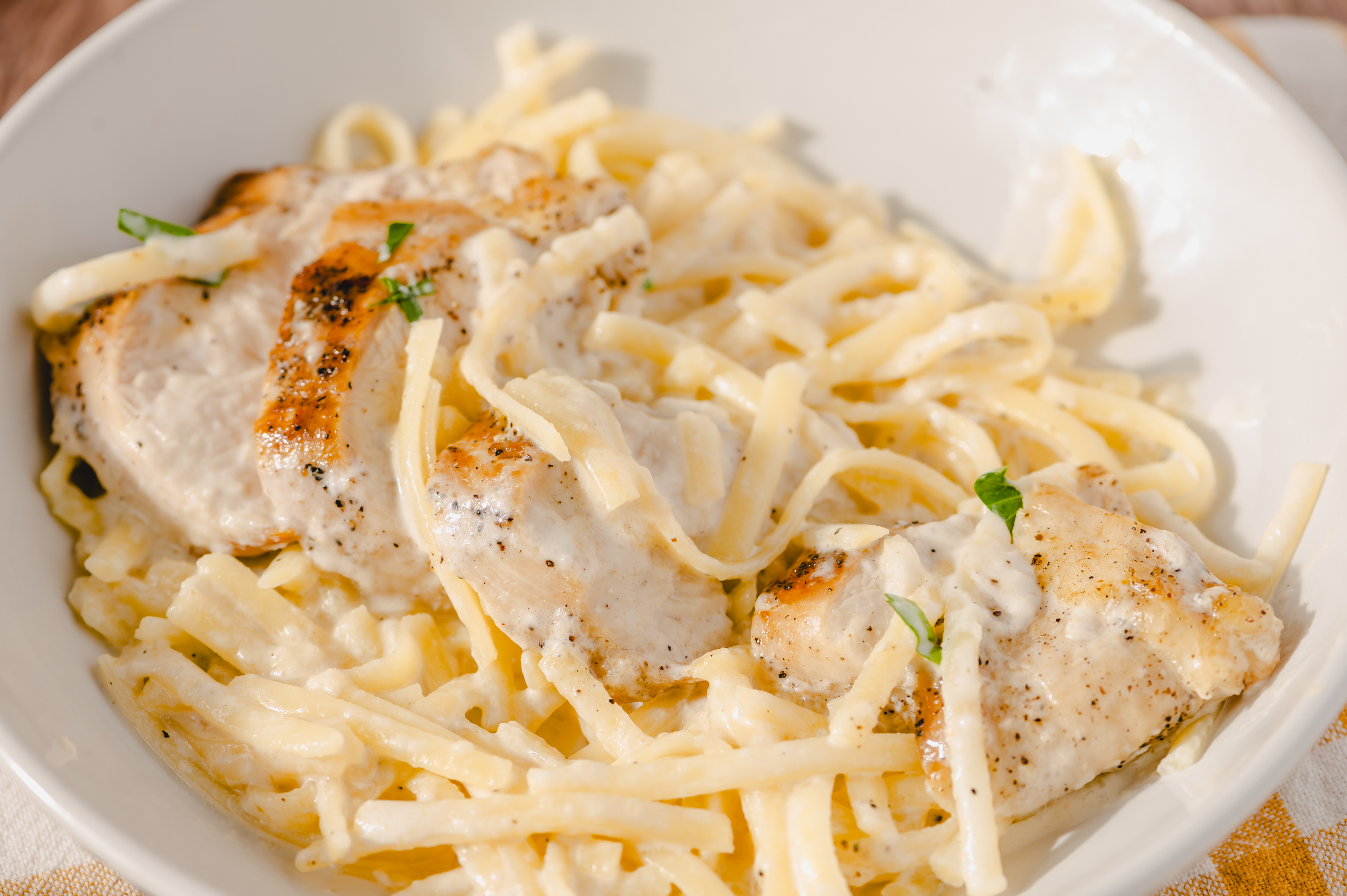 Mimi's Chicken Alfredo is chicken Alfredo at its most homespun and classic. No frills, just good juicy chicken sliced atop a bed of creamy, tender pasta. That cheesy, hearty, luscious sauce is the stuff of dreams, coating everything in tasty, tasty wonder! Simple and speedy, yet enticing and luxurious, Mimi's Chicken Alfredo will make dinner something special!