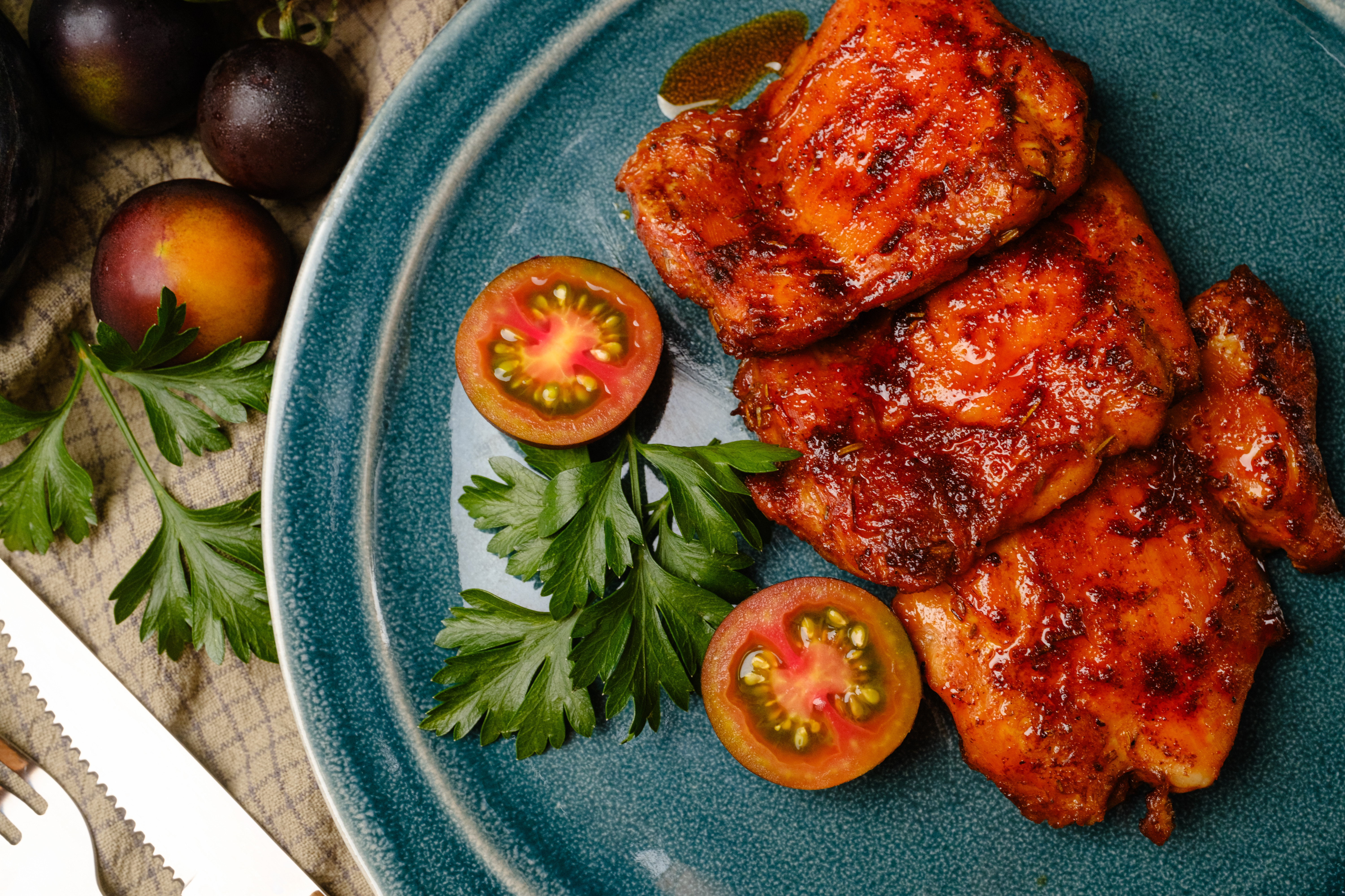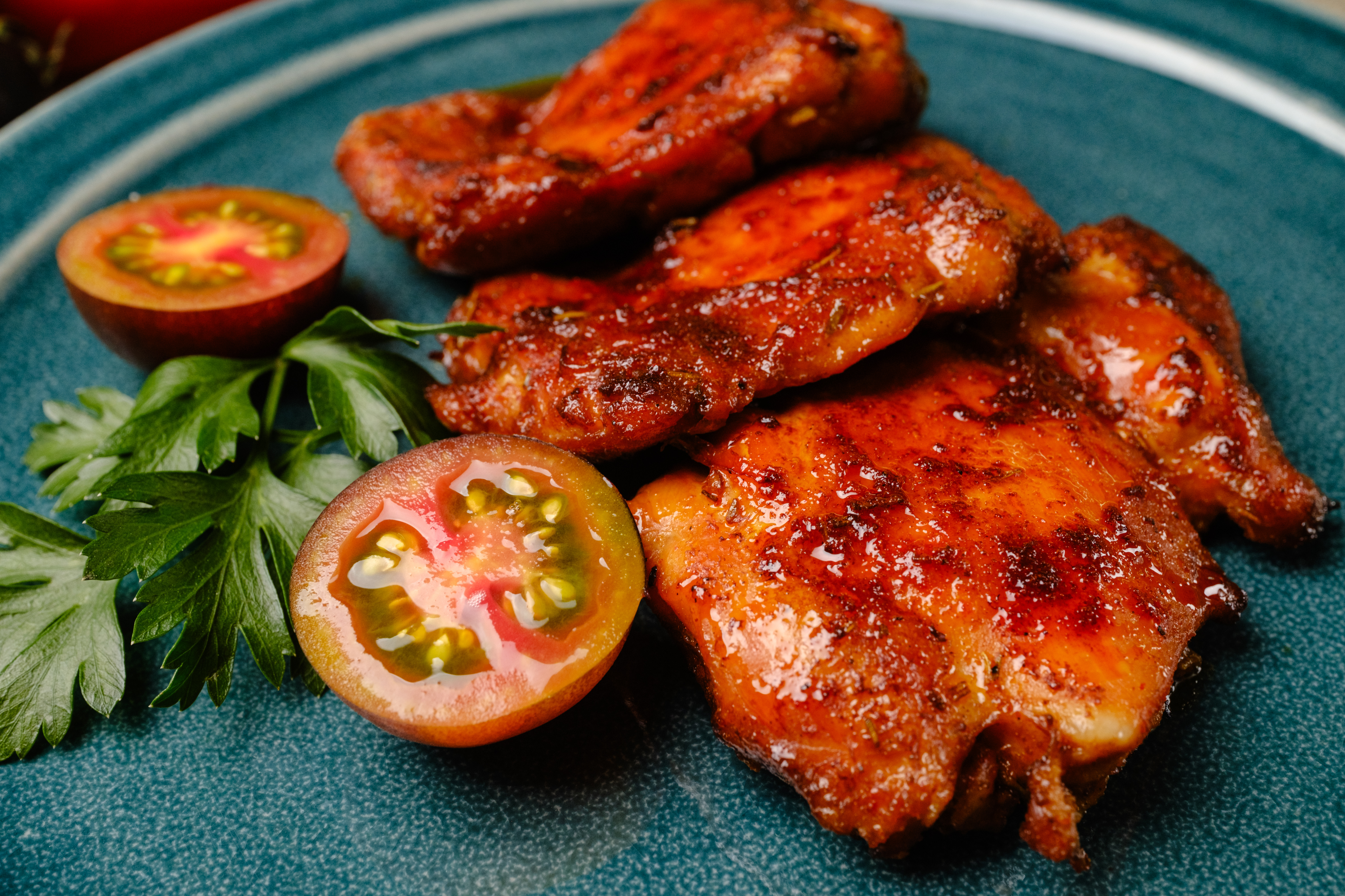 Step 15 -Serve the chicken thighs garnished with the parsley and the tomatoes.