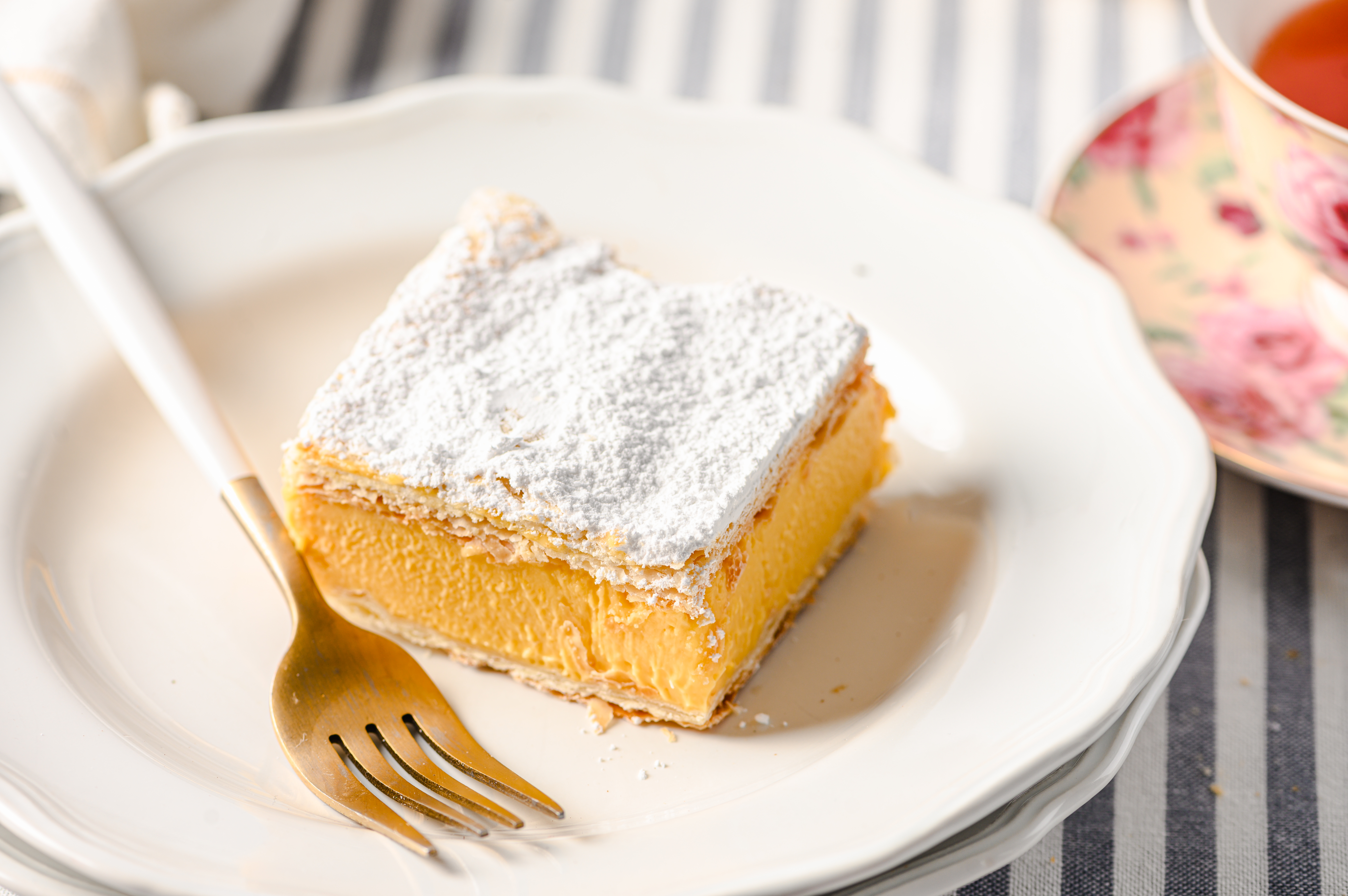 This is a favorite of all Kiwis, and you can taste why! The New Zealand Custard is like a custard sandwich with luscious, creamy, floral sweet custard in the center. On the outside are layers of flaky, buttery, crisp puff pastry, dusted with powdered sugar for an extra touch of sugary goodness. Slice into pure joy with this New Zealand Custard and see how the folks in the Southern Hemisphere like their desserts!