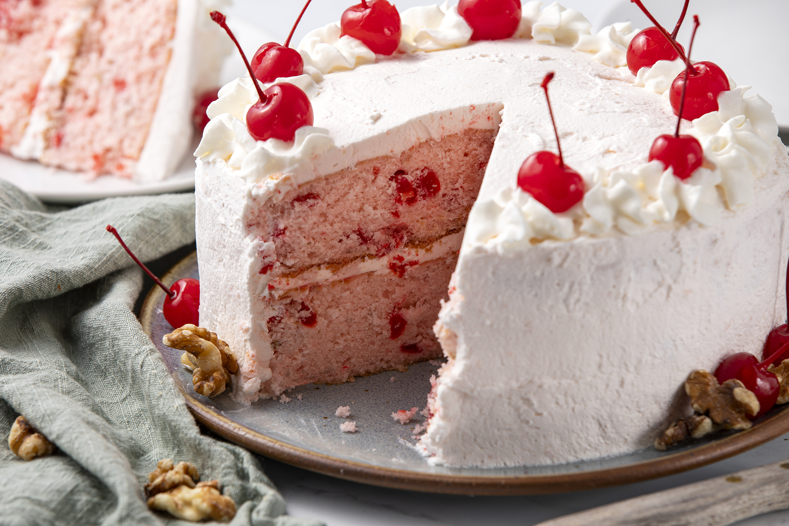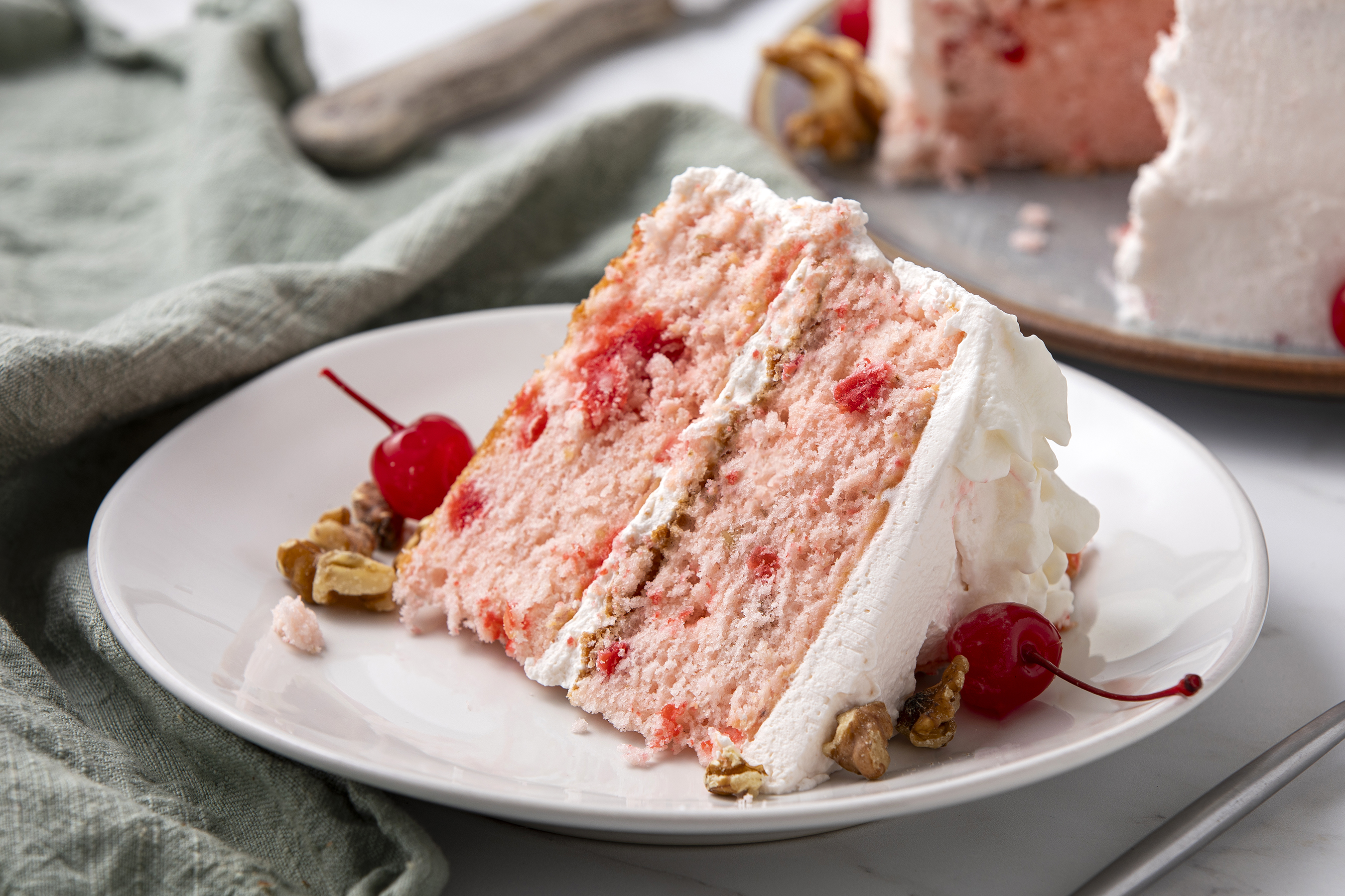 Mmm, do you smell that?! Love is in the air! Wait, actually... what you're whiffing are the sweet scents of Nuts-For-You-Cherry Cake. You'll be feeling all sorts of butterflies in your belly as you taste the sweet, sweet delight of this pink-tinted slice of love. Fit for the front of a cutesy card (perfect for writing love notes in), the fluffy, white frosting, topped with vibrant cherries, is quite picturesque. If you're feeling a little mushy-gushy, show your Babycakes just how you feel with a slice of Nuts-For-You Cherry Cake. There's really nothing sweeter!
