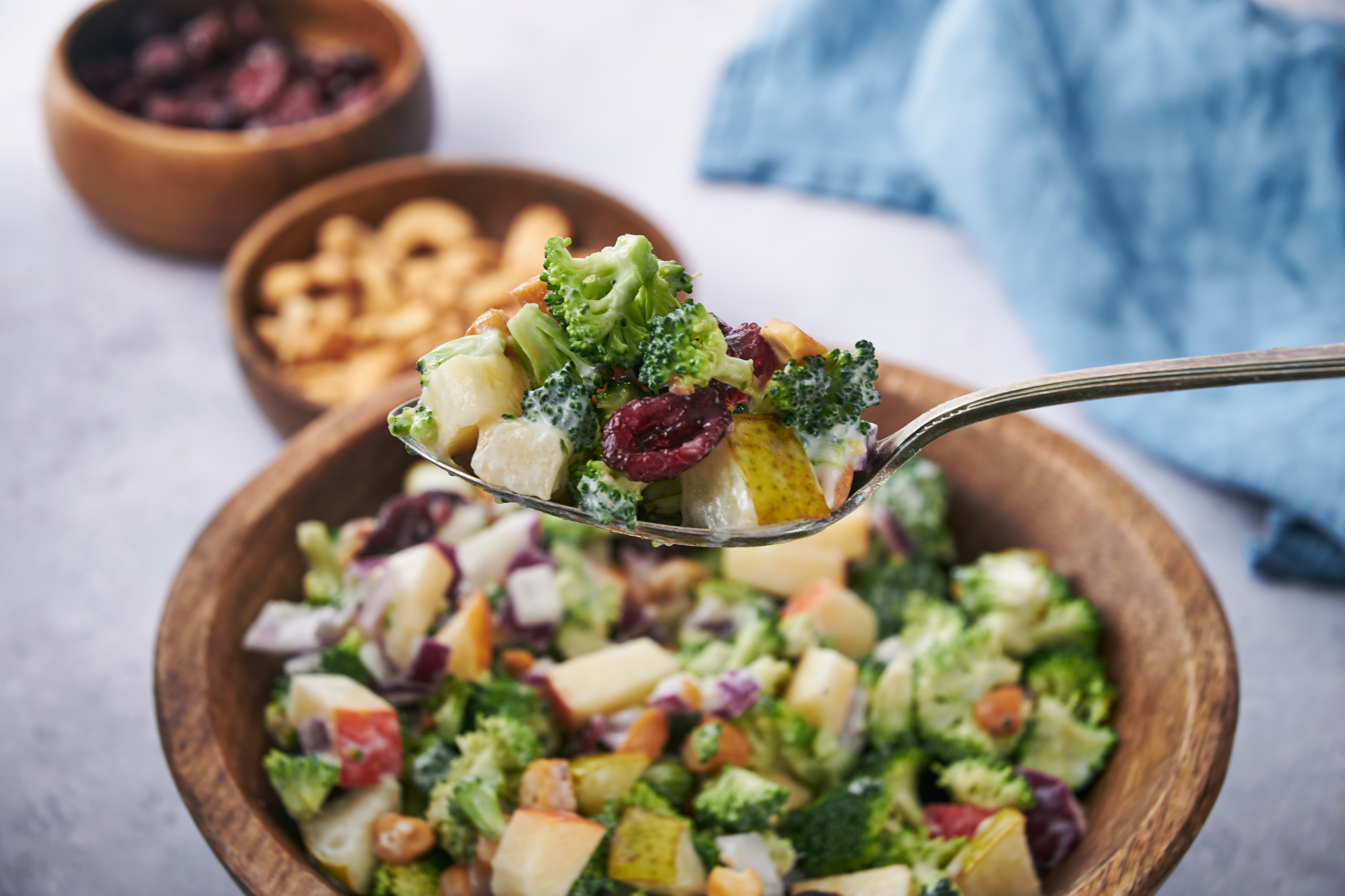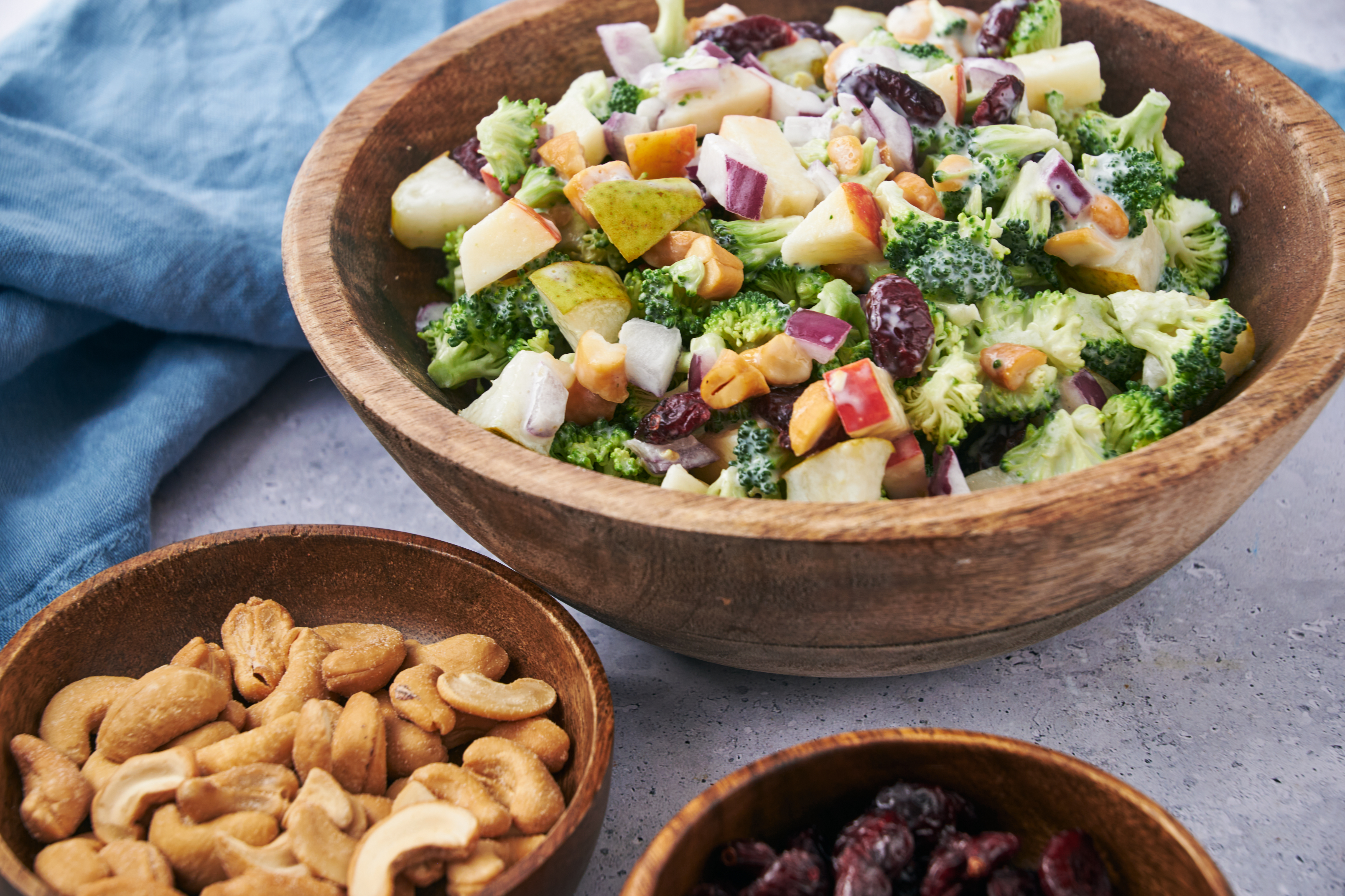 Grab your sleigh and let's slide on over to one of the most anticipated holiday-ish salads that you are going to be singing about! Oh-What-Fun Salad is a light-hearted and flavorful addition to ride alongside any festive meal. There's no horsing around when you add crunchy broccoli, sweet apples, perky pears, dicey red onions, toasted cashews, and delicious dried cranberries jostled with a creamy and sweet mayo-based dressing. With all that, you get a one-of-a-kind salad ride. Dash into the kitchen and make your spirit bright with Oh-What-Fun Salad. All the dinner bells will be jingling with delight! Snow is always optional.