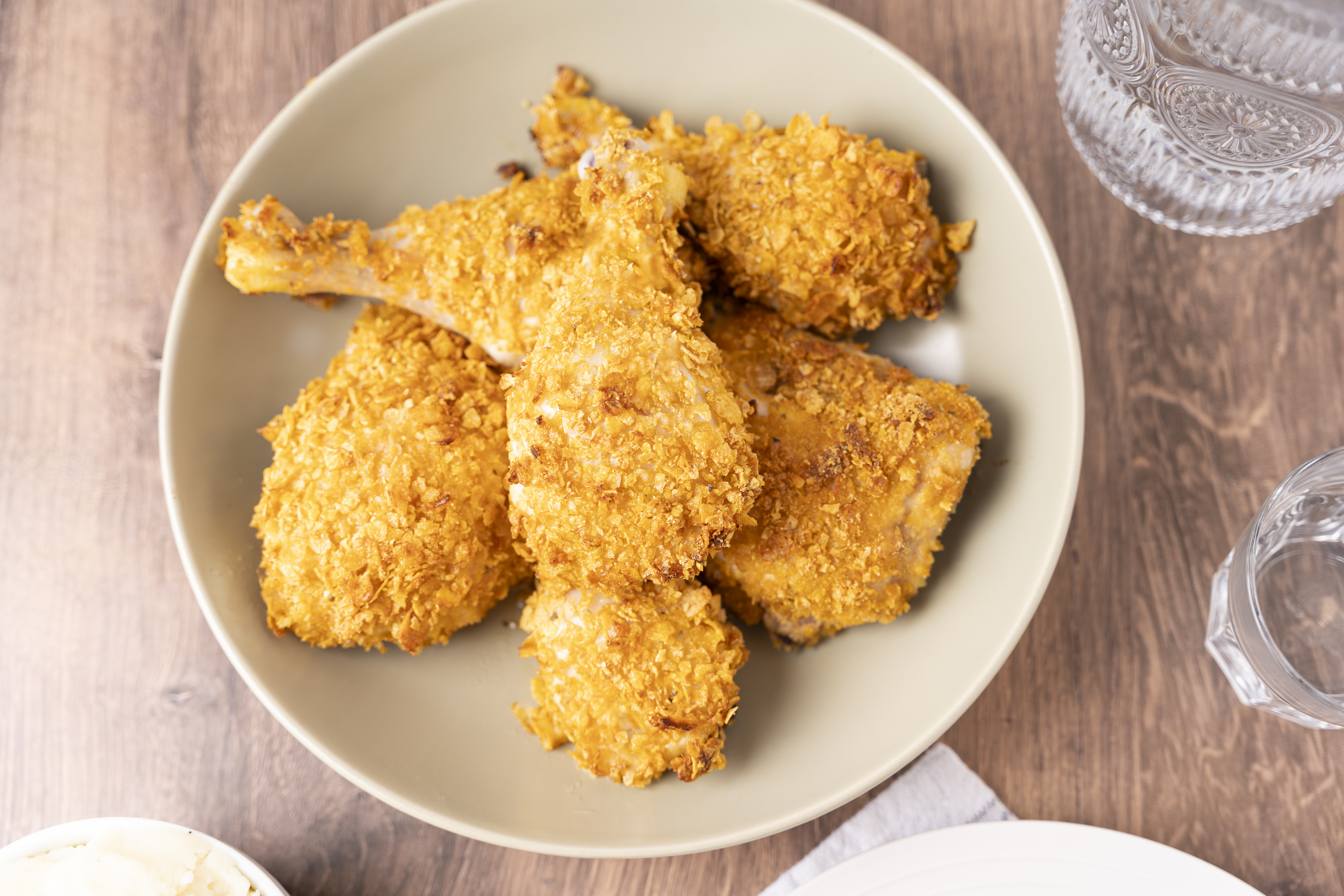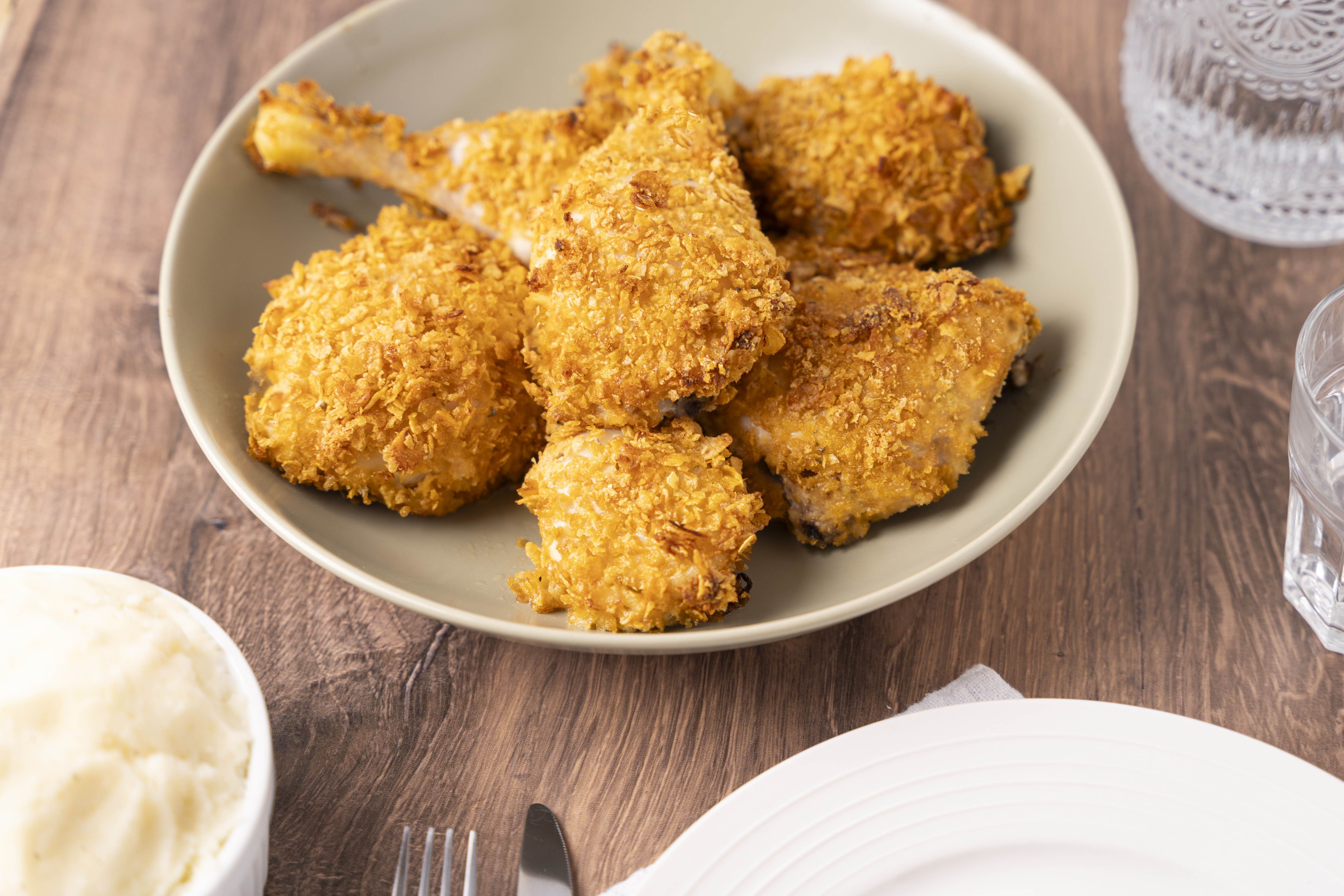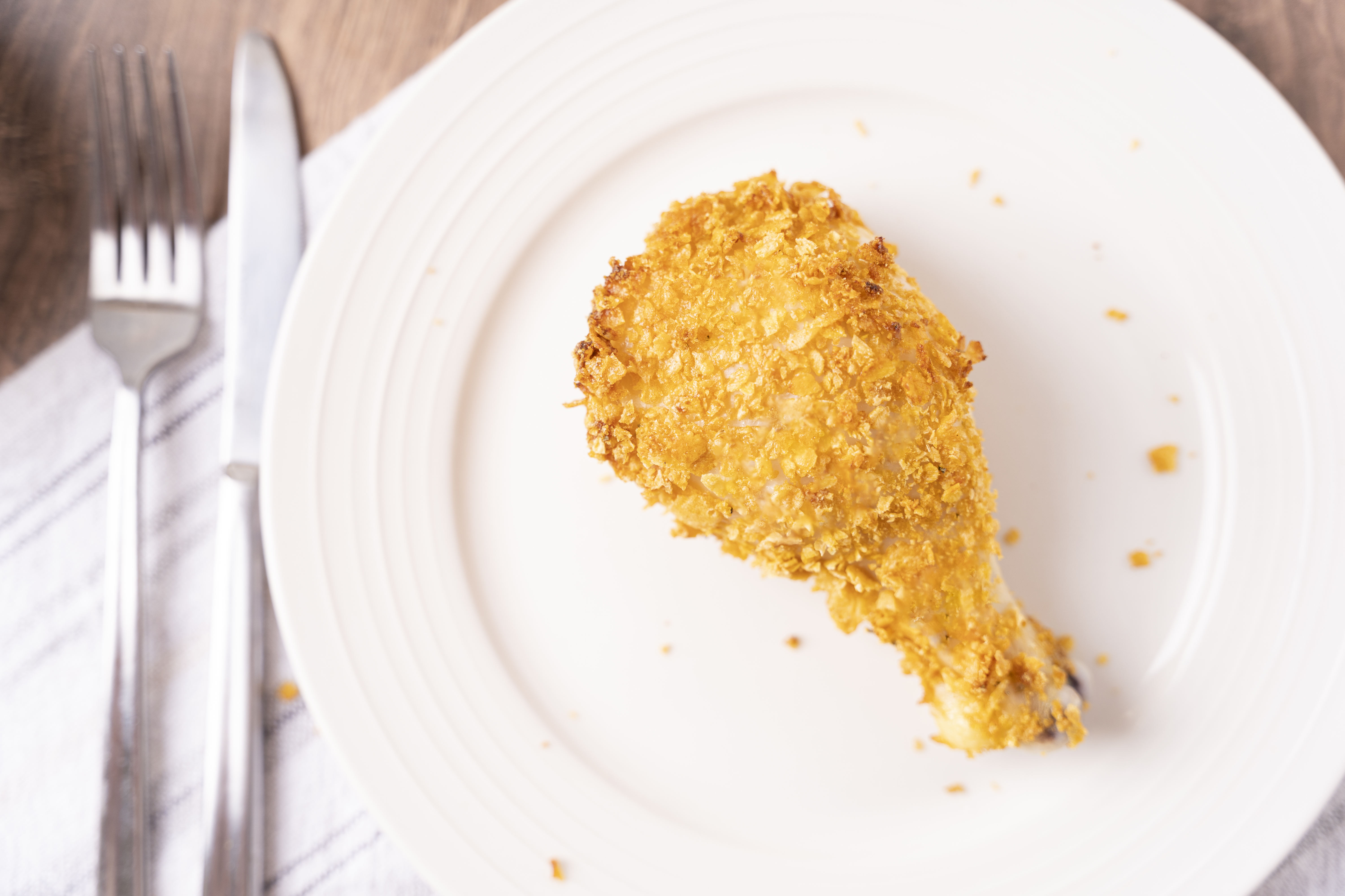 Step 5 -Dip the chicken pieces, one at a time, into the egg mixture and then into the cornflake mixture, turning to coat the chicken pieces on all sides.