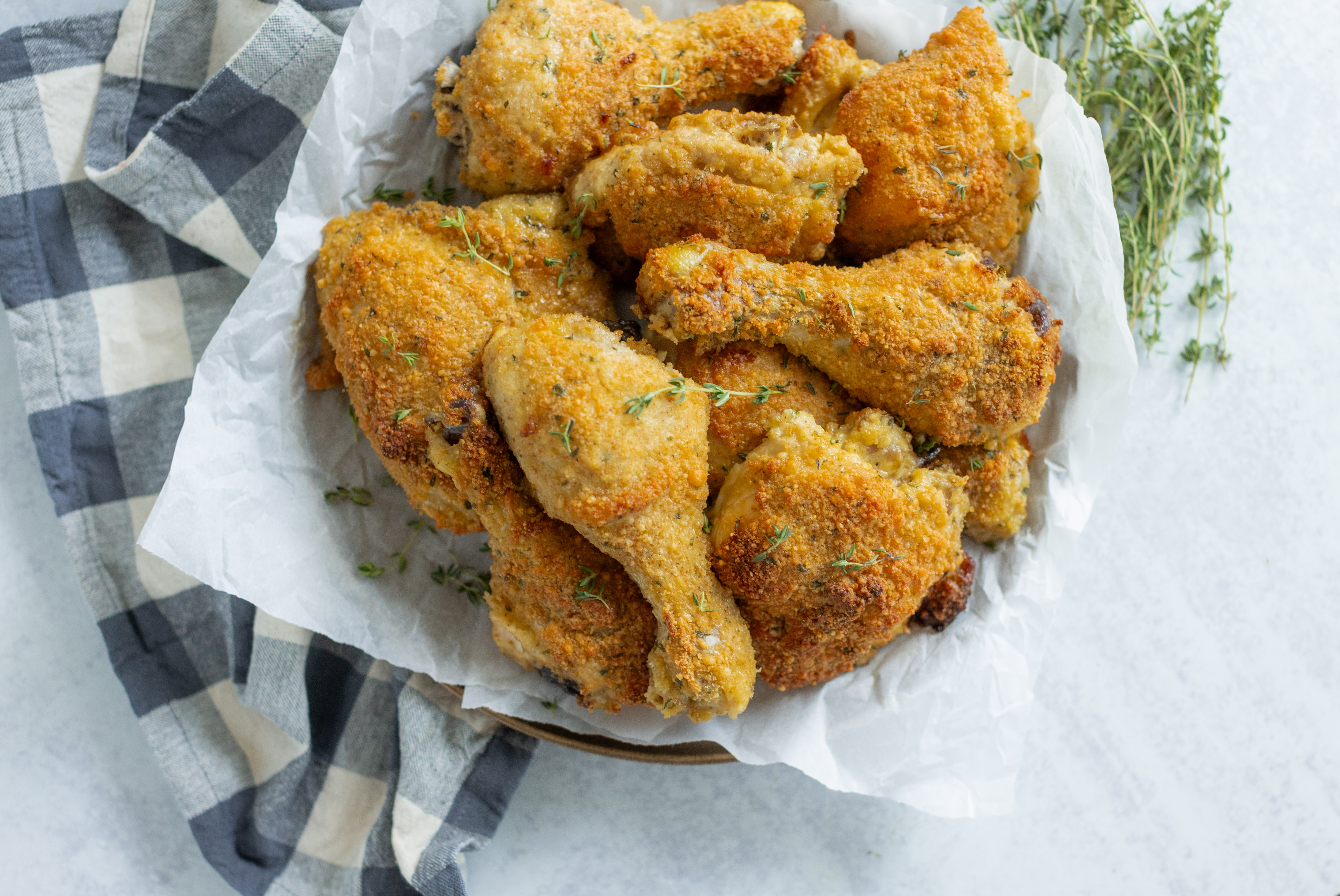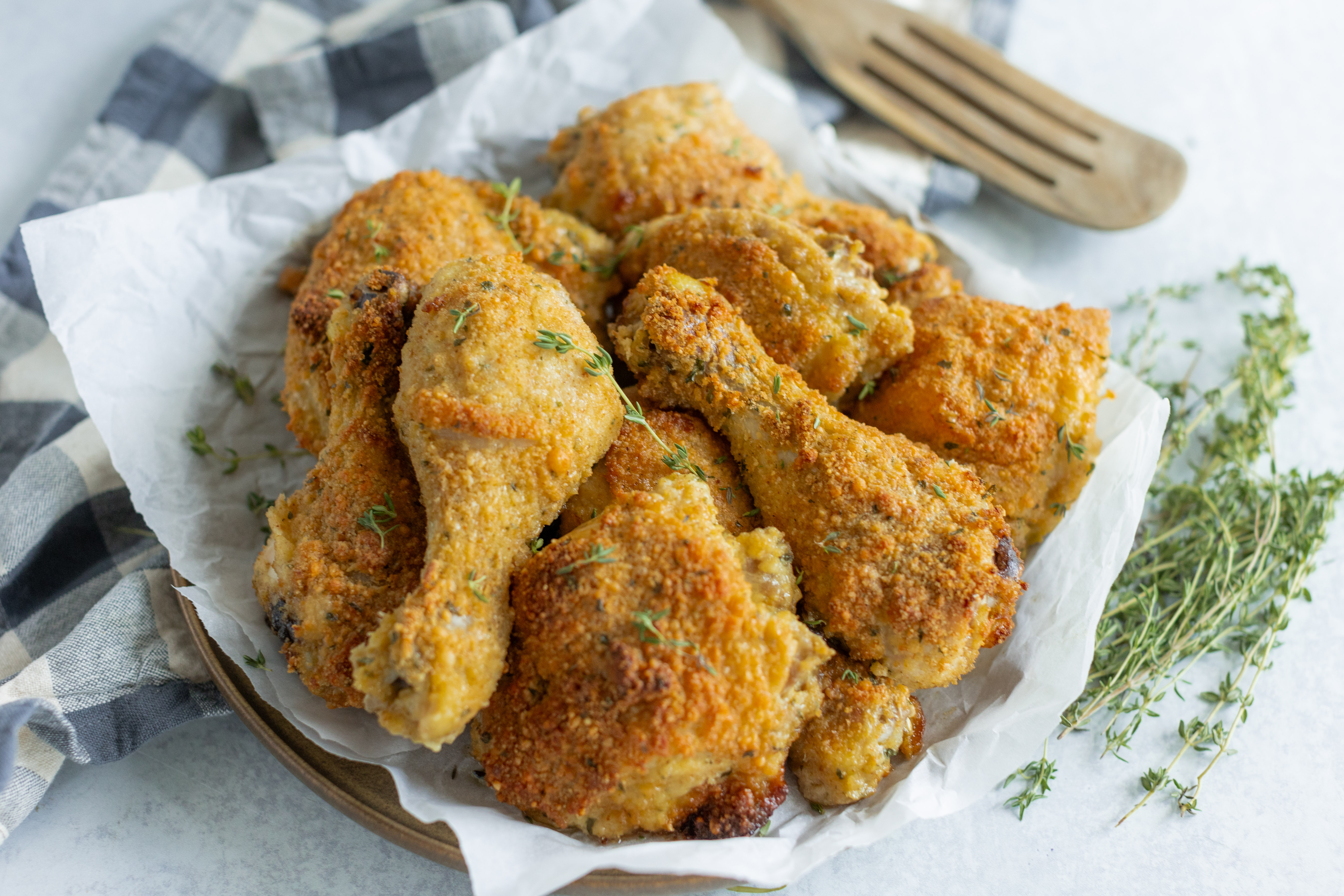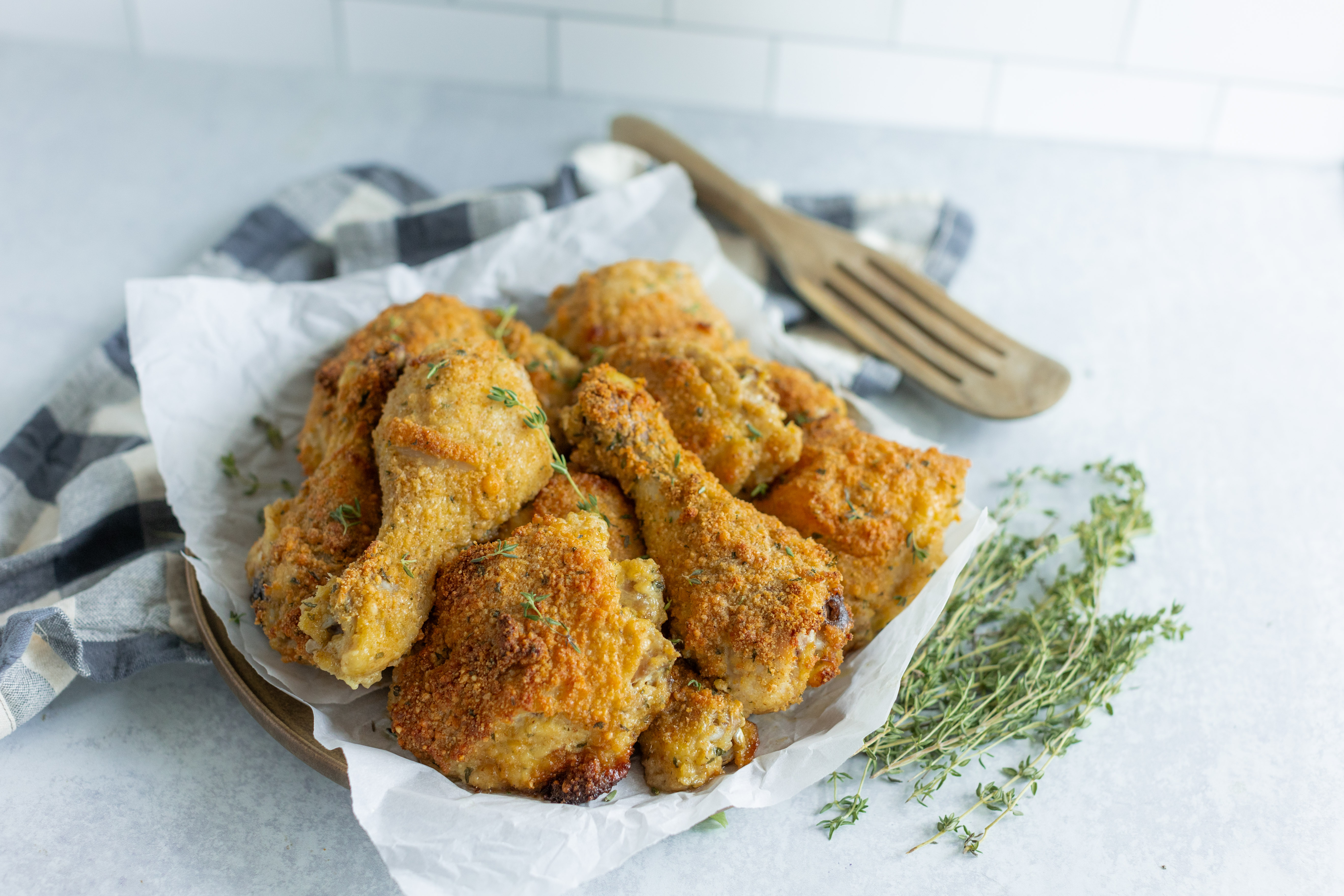 Nothing says picnic like some good chicken. And Oven-Fried Parmesan Chicken is the kind of next-level picnic chicken that everyone will go crazy for! Tossed in an egg bath and coated with a flavorful parmesan breadcrumb topping, this chicken gets to tan oven-side for a bit, and then is quickly on its way to a checkered tablecloth near you. Tasty, good Oven-Fried Parmesan Chicken is not only the best you will ever have, but also a quick fix anytime you need a good meal fast... checkered tablecloth (not always) required!