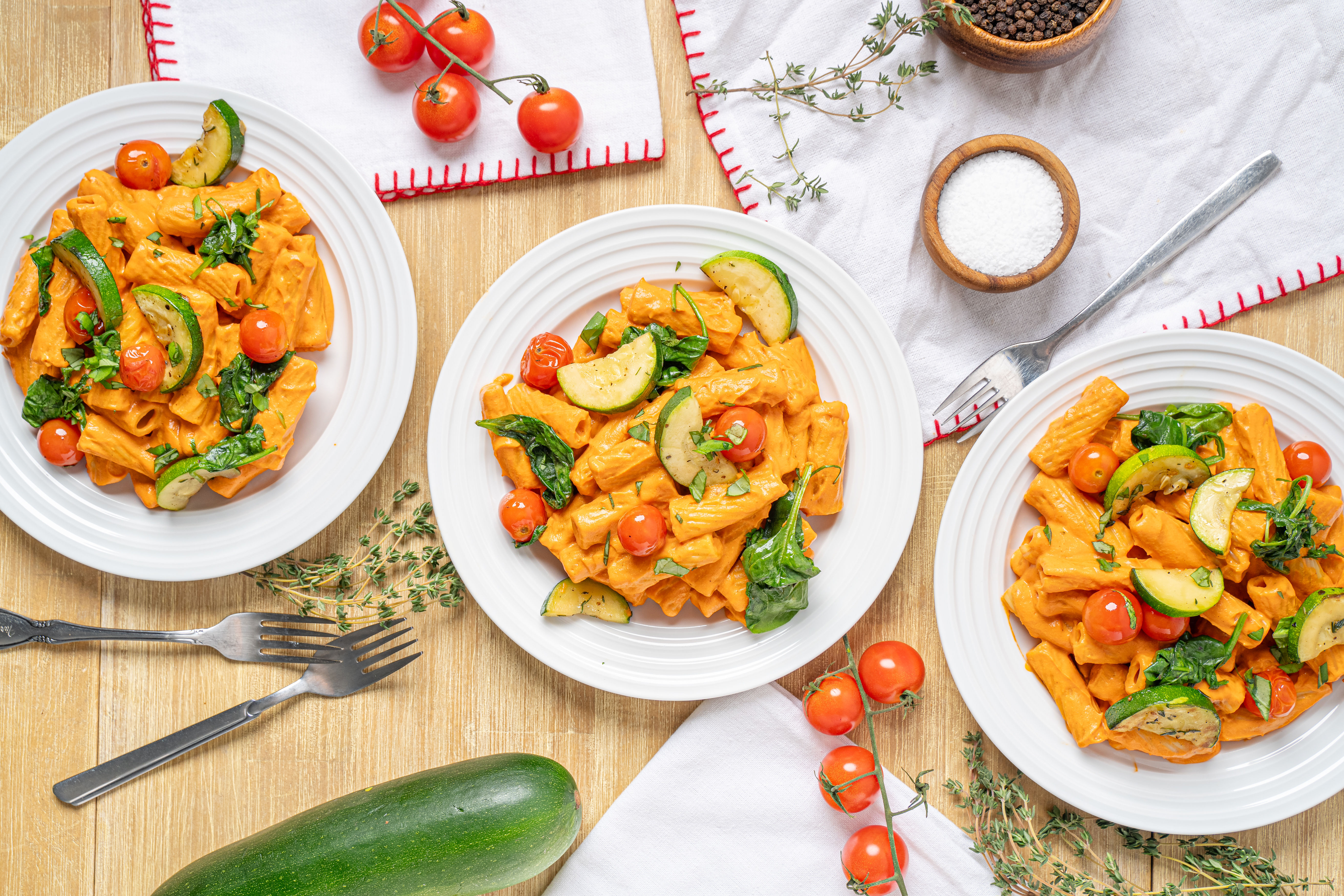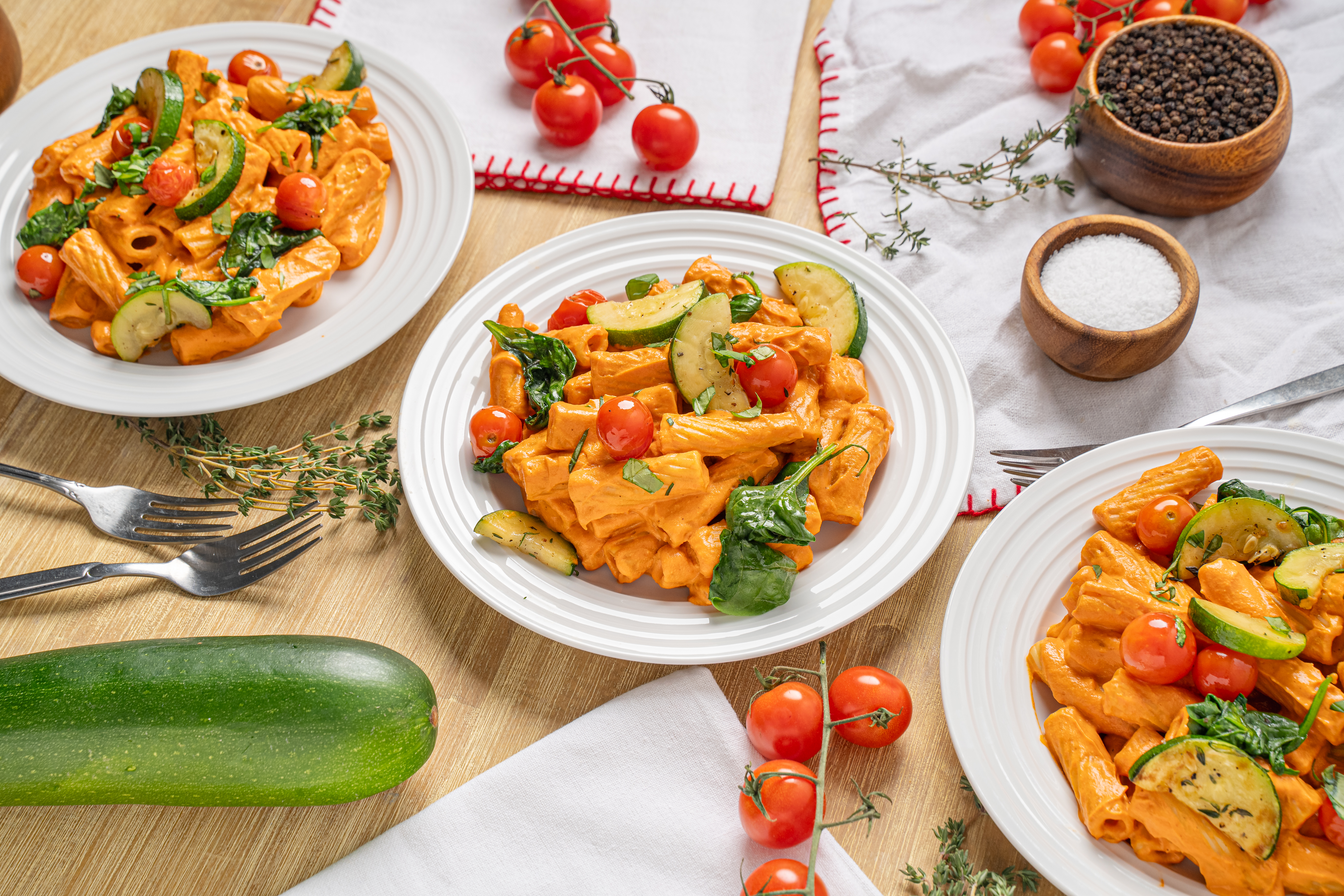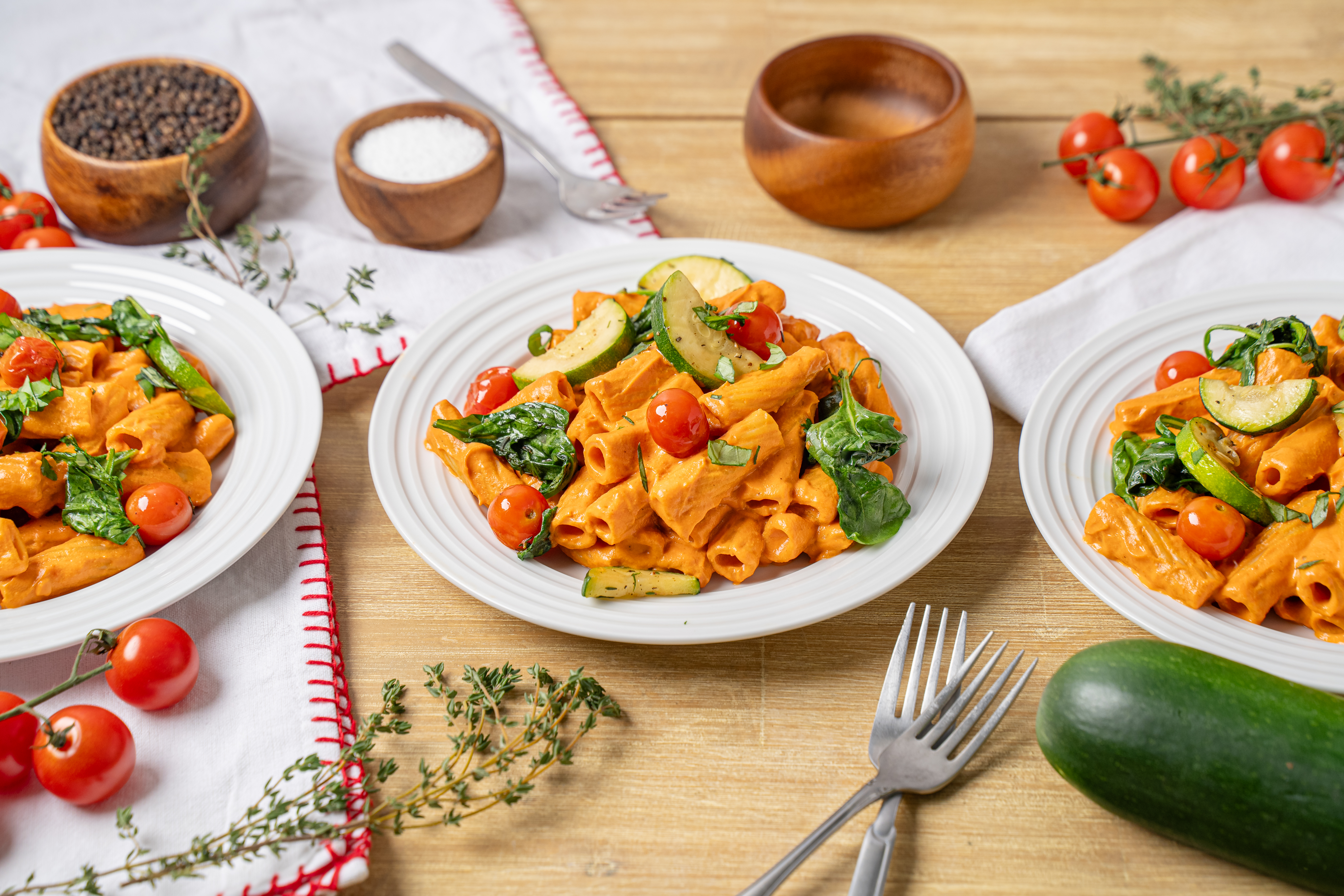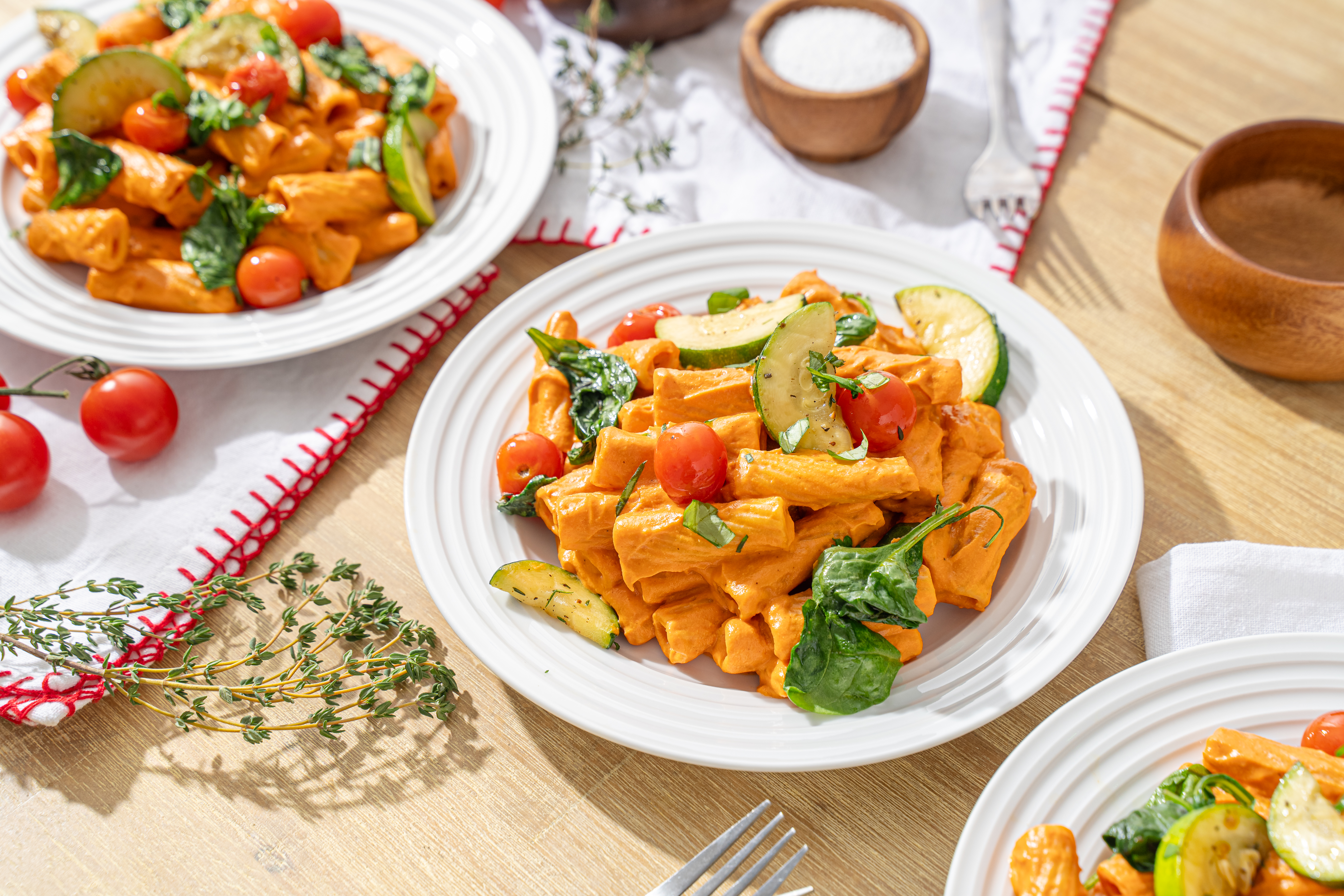 If you have impeccable taste and are craving an immaculate meal, this Pasta Pomodoro Perfection is perfect for your picky palate! Some veggies and bouncy rigatoni pasta get tossed with a homemade, creamy marinara sauce that all the food fanatics will freak out over! There's nothing wrong with being particular, especially (absolutely) when it comes to Pasta Pomodoro Perfection! Once you taste it, you'll understand!