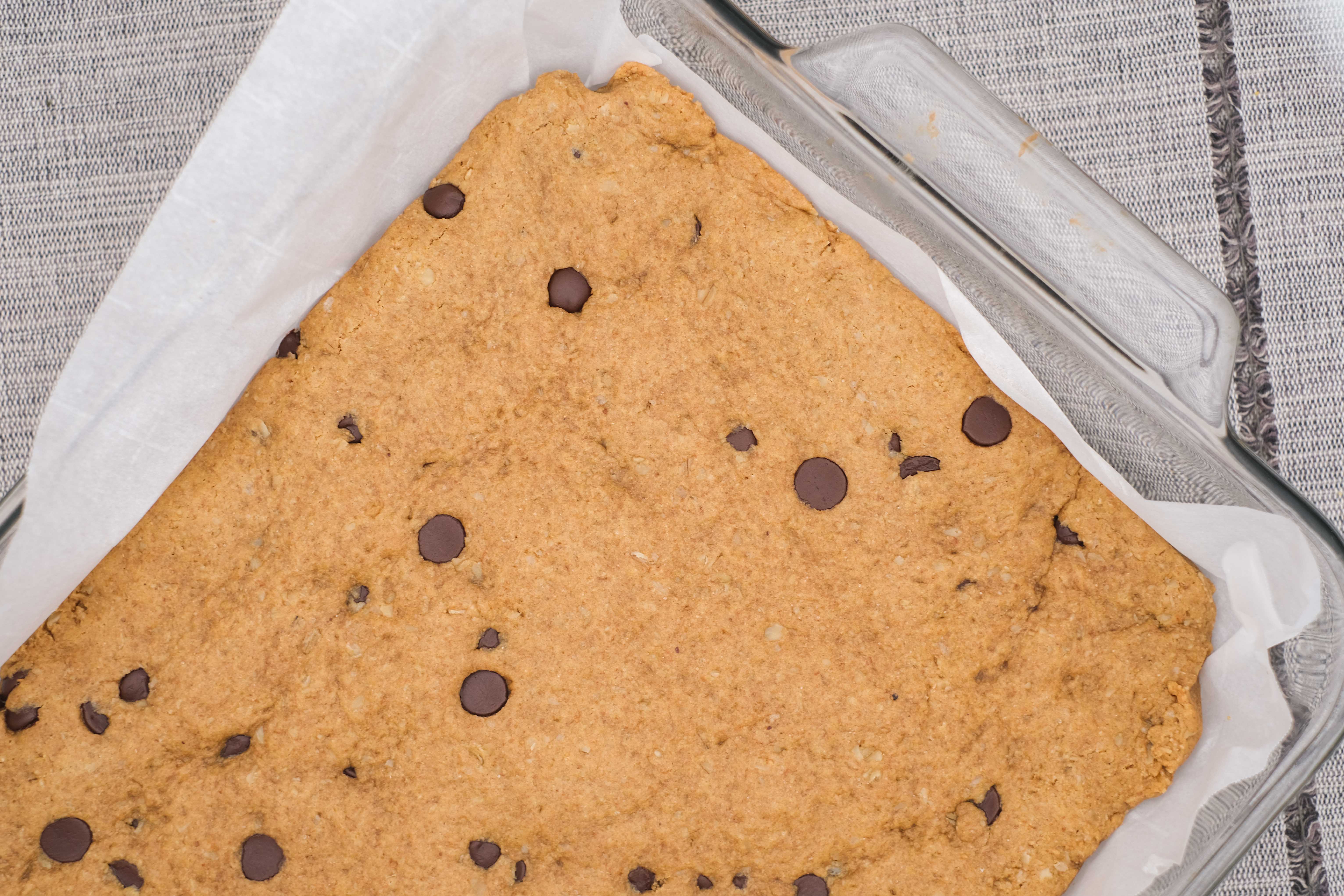 Why buy those tasteless, cardboard-boxed breakfast bars when you can have fresh, delicious bars made from scratch? These PBO Bars are packed full of creamy peanut butter, soft oatmeal, and topped off with the melted happiness of chocolate chips. In no time at all, you will have transported yourself to a better start to your day or a better bedtime-snack milk buddy. PBO Bars are an easy way to satisfy your dessert hunger in a more pleasing, non-preservative-packed manner. Free yourself from the box! You can thank us later!