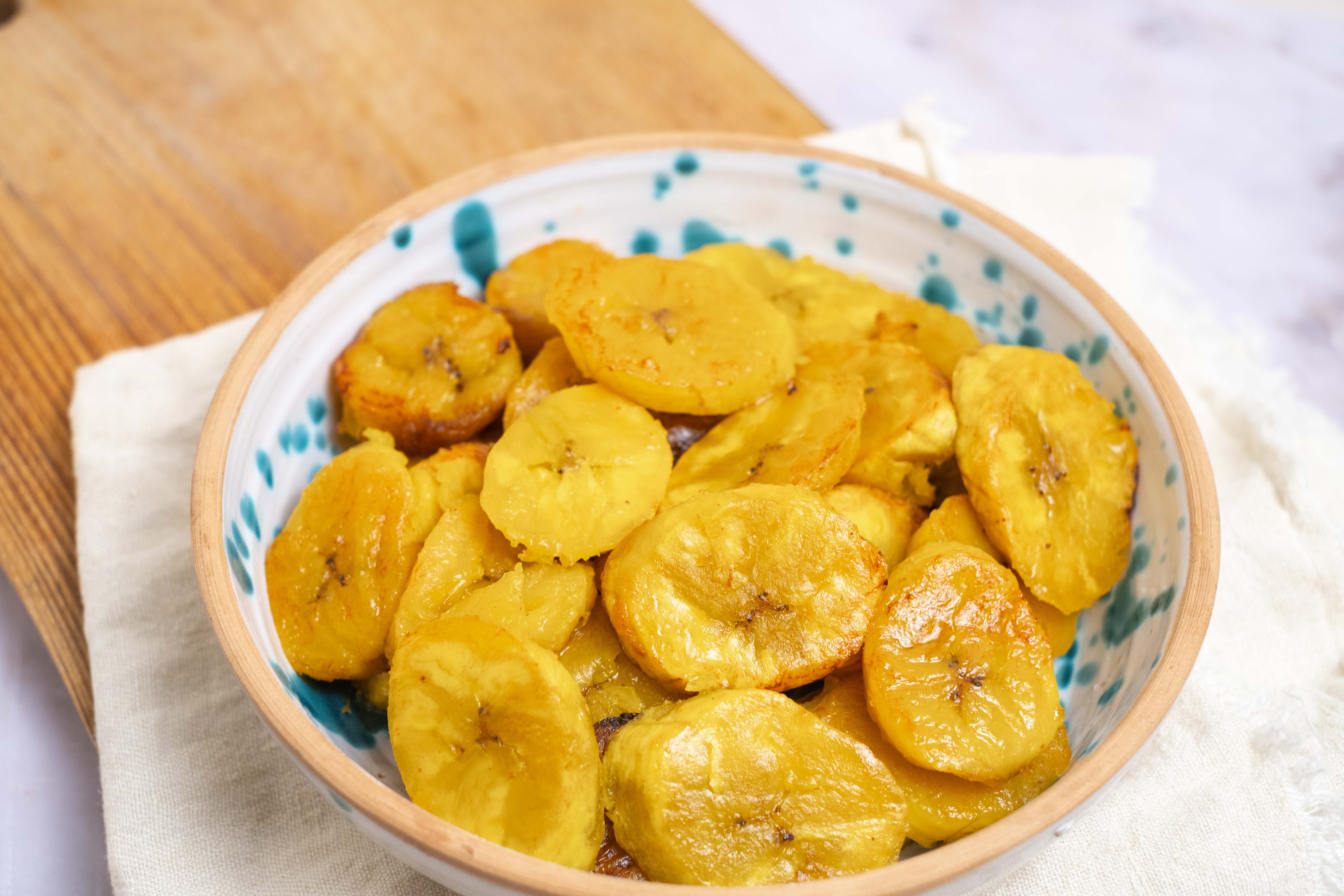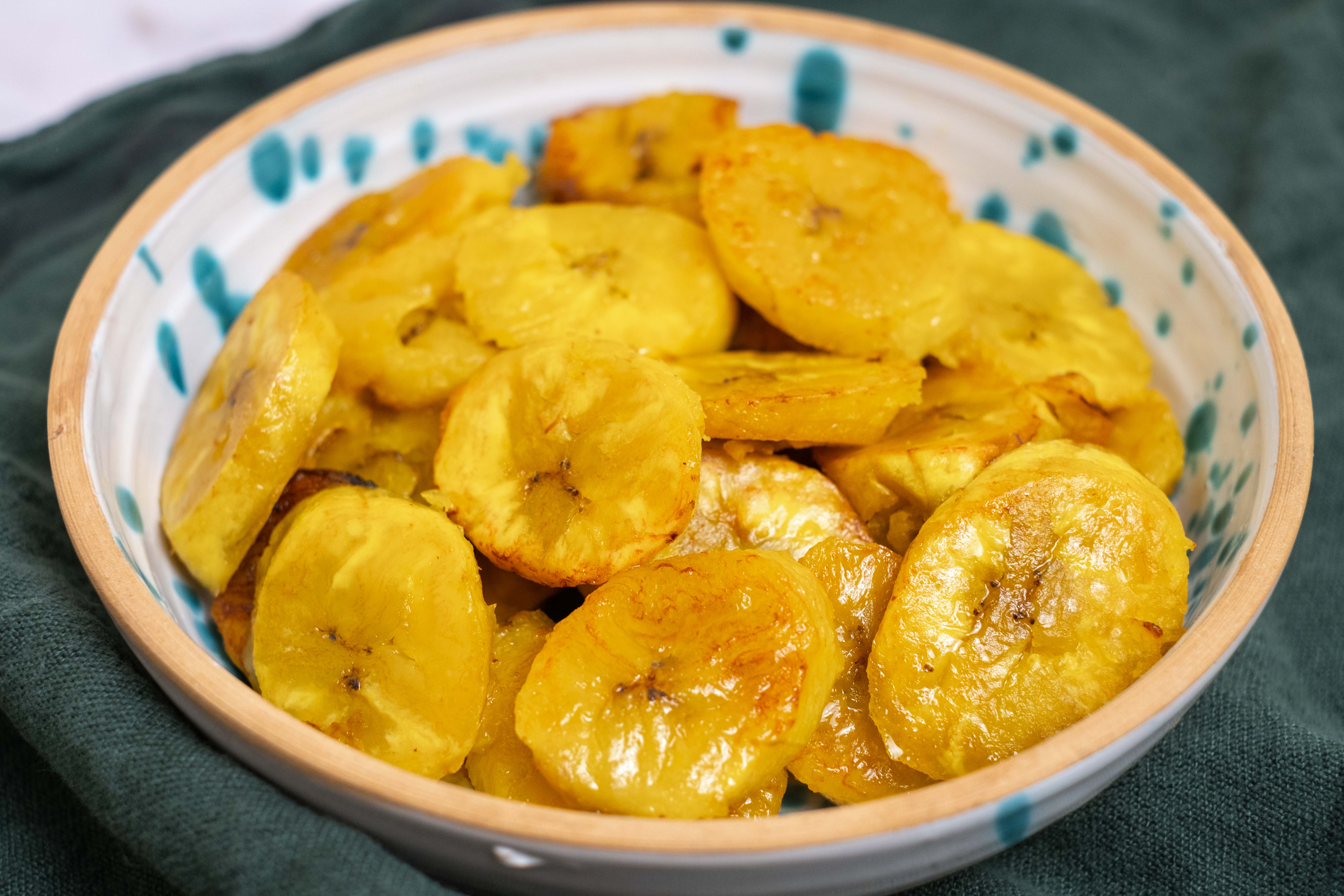 • 3 ripe plantains, peeled and sliced 1/4-inch-thick at an angle