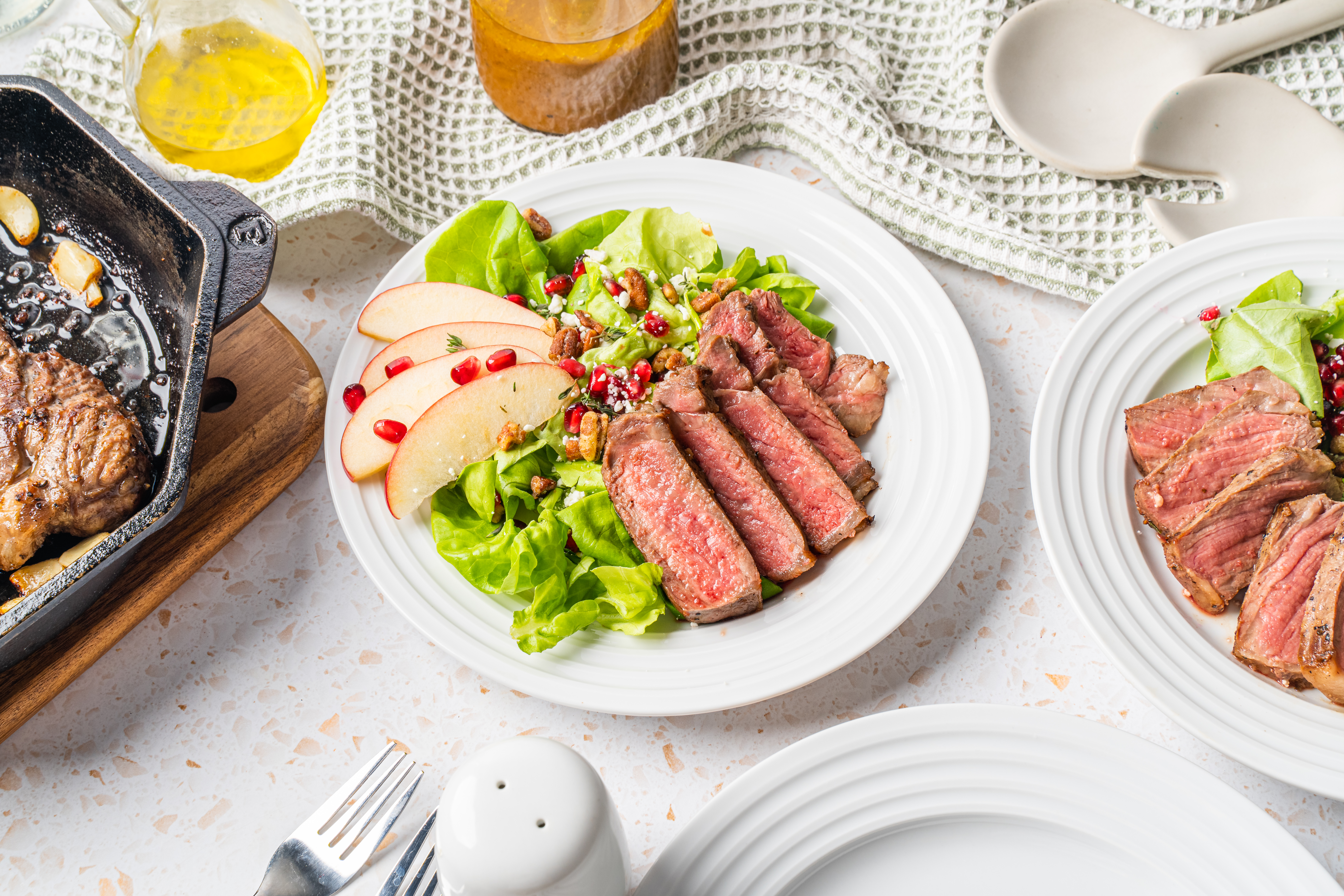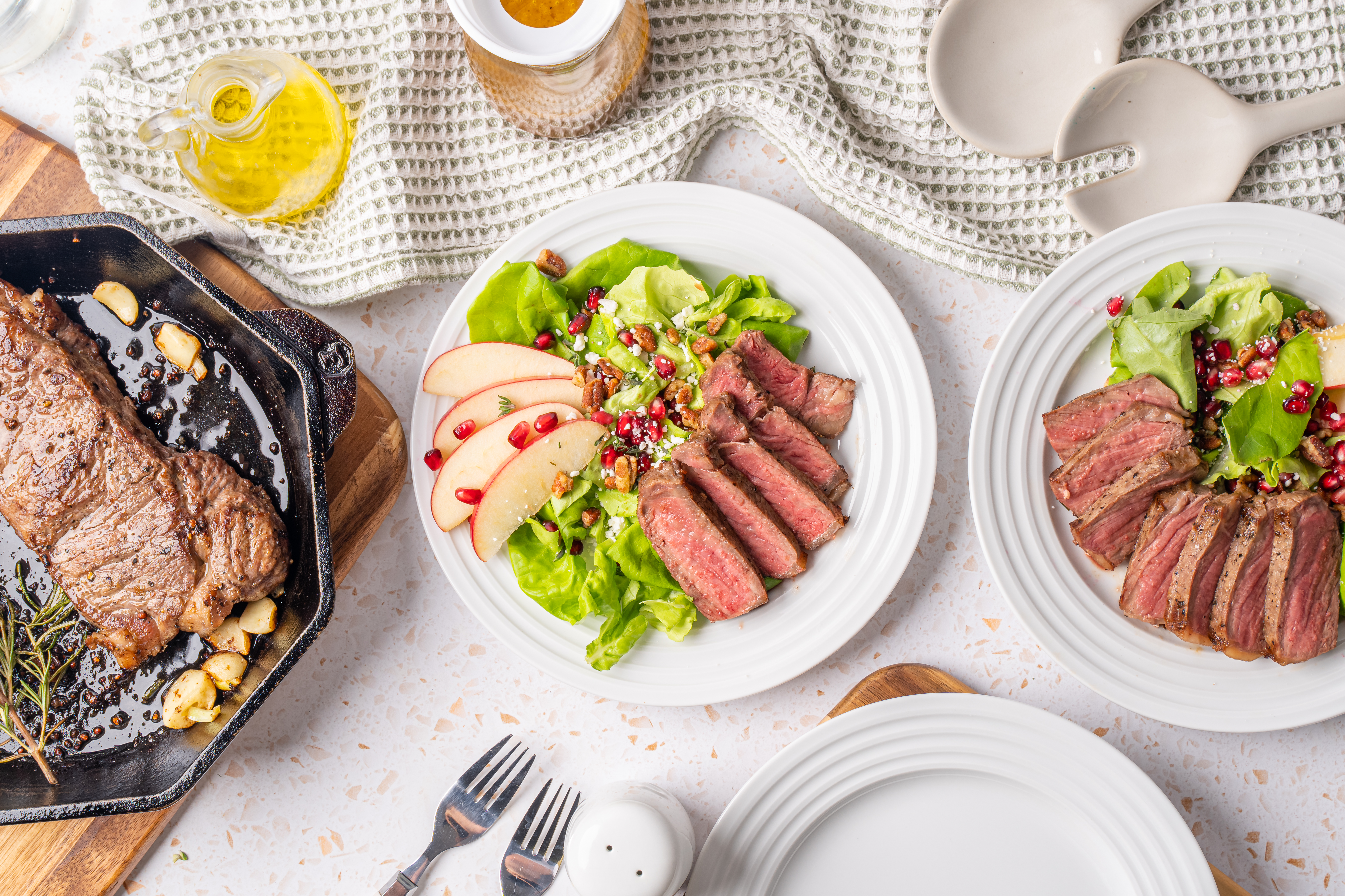- 2 (1-pound) New York strip, ribeye, or top sirloin steaks, pounded to 1 1/4-inch-thick