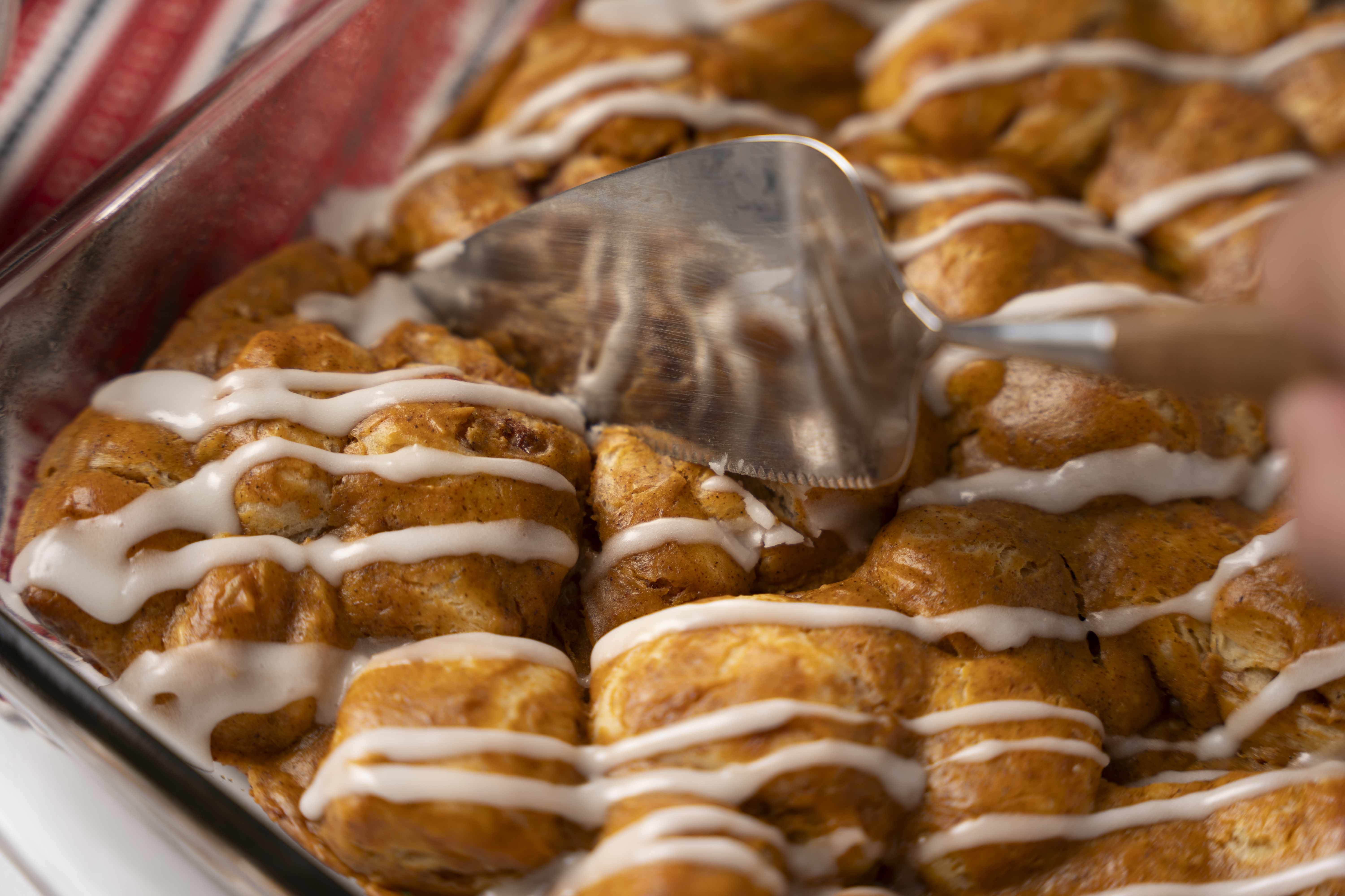 Step 8 -Bake until golden-brown around the edges and the cinnamon rolls are baked through, about 26-30 minutes.