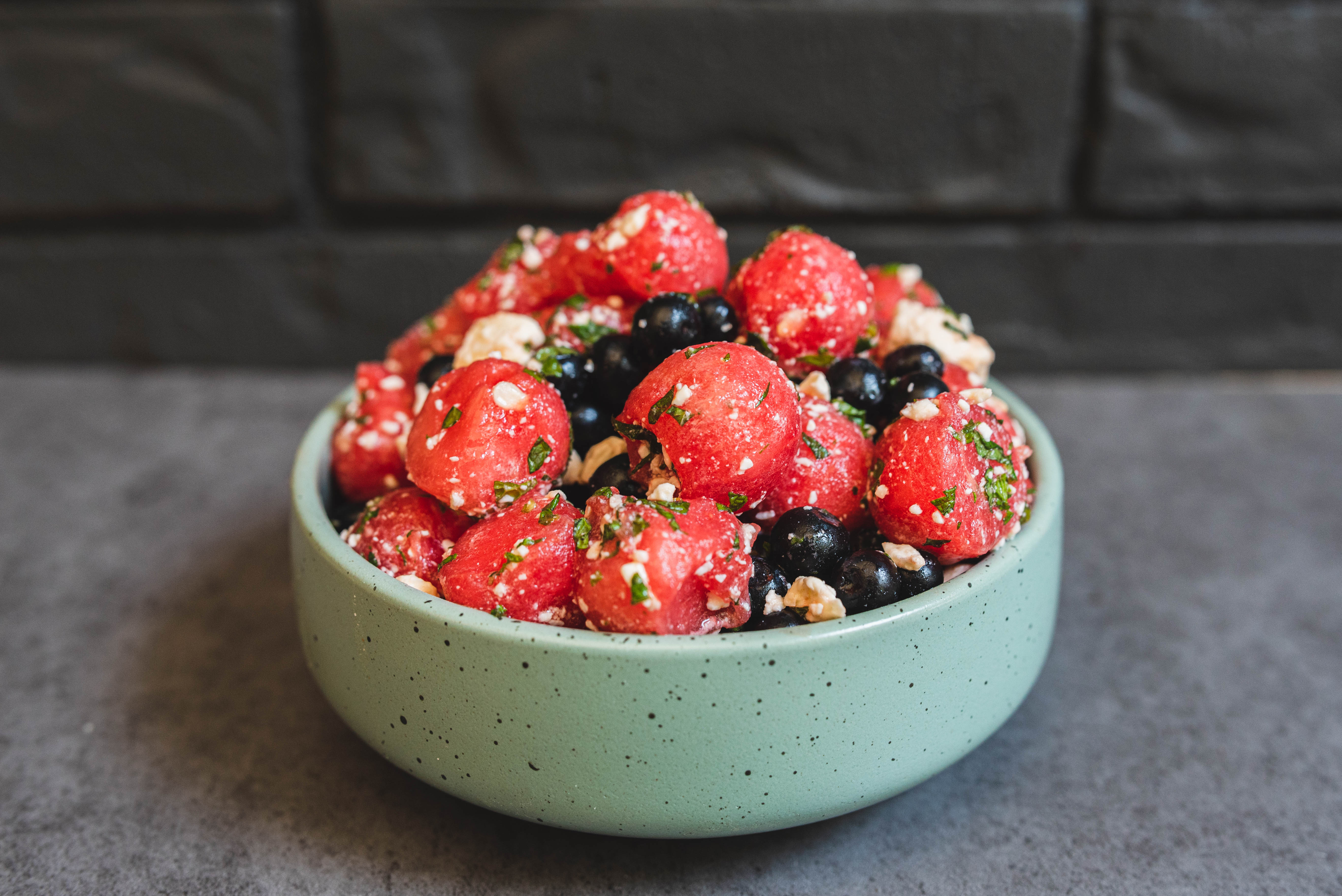 Step 1 -Combine the watermelon, the blueberries, the mint, and the honey in a large bowl, and stir to combine.