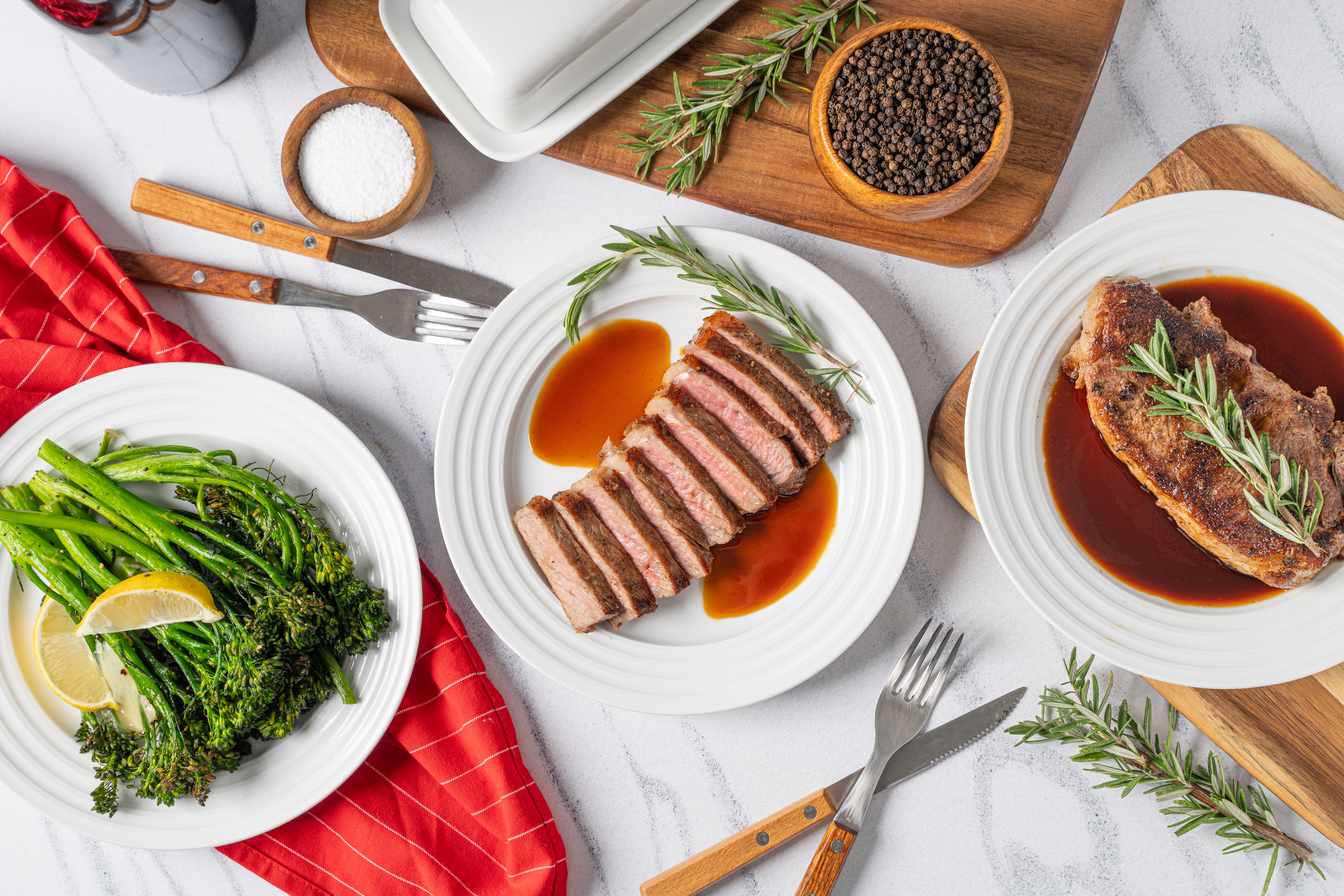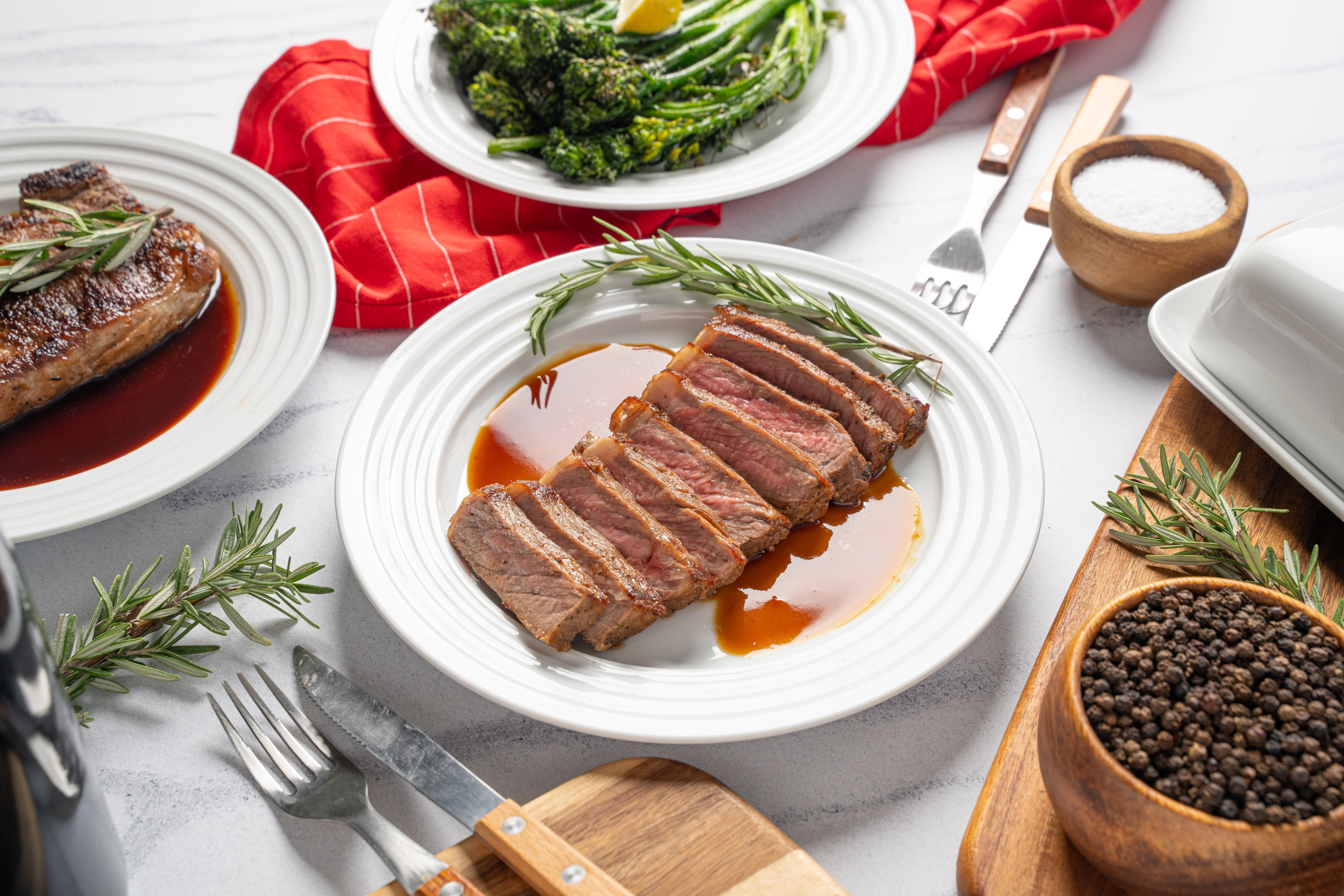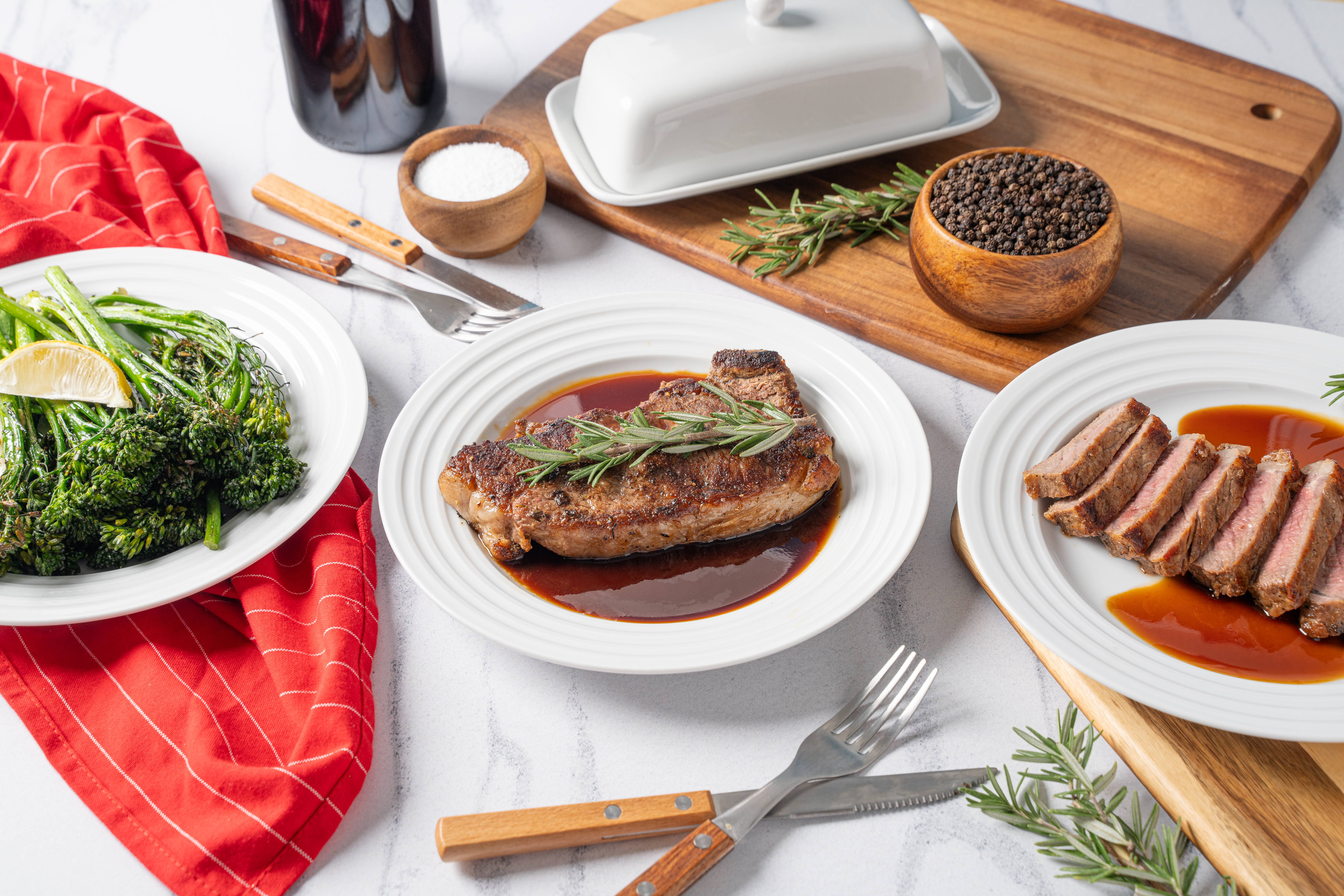 This is the easiest way to make restaurant-quality steaks without any real effort. In fact, Rosemary Steak tastes better than almost any other steak you've had before. Reverse-searing the steak gives it a beautiful golden-brown jacket while still keeping it juicy and rosy on the inside too, all of which adds to its exquisite flavor formula. On top of that, the simple, yet brilliant, red wine and rosemary sauce adds richness and astringency to the savory succulence of the meat. When the steak and sauce combine, Rosemary Steak sets the high bar for all other steaks to try to clear!