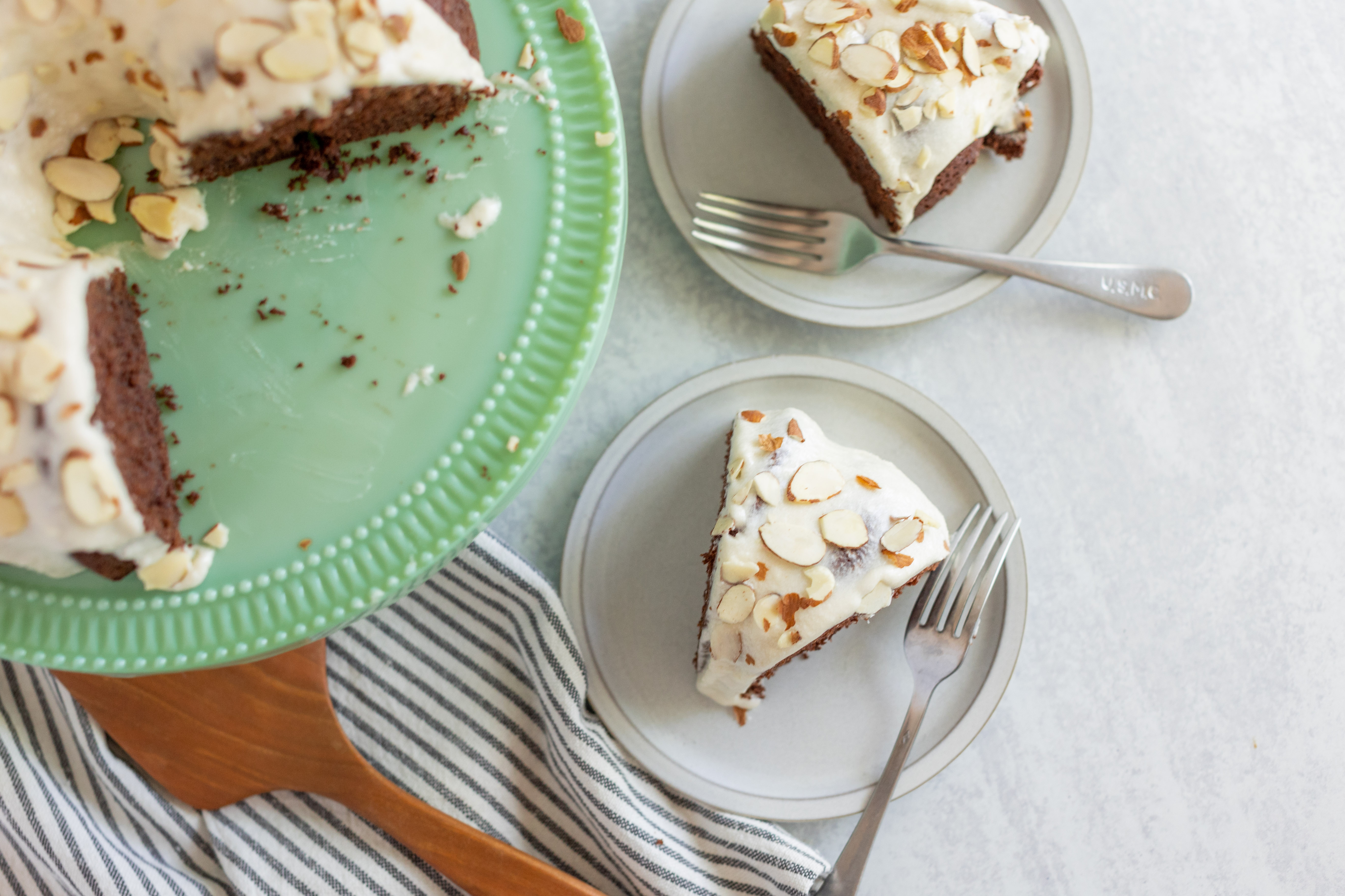 Sometimes you have to live a little and enjoy the sweet things in life. Slice-of-Life Cake is the perfect way to do just that! This moist, decadent, sour cream, vanilla, and almond-infused chocolate cake is topped with a buttery, creamy, smooth frosting and then finished with fresh, crunchy almonds to give it just the right amount of flavor and the look of simple elegance. Don't let life get you down... let Slice-of-Life Cake be a sweet indulgence and see how life-changing it really can be!