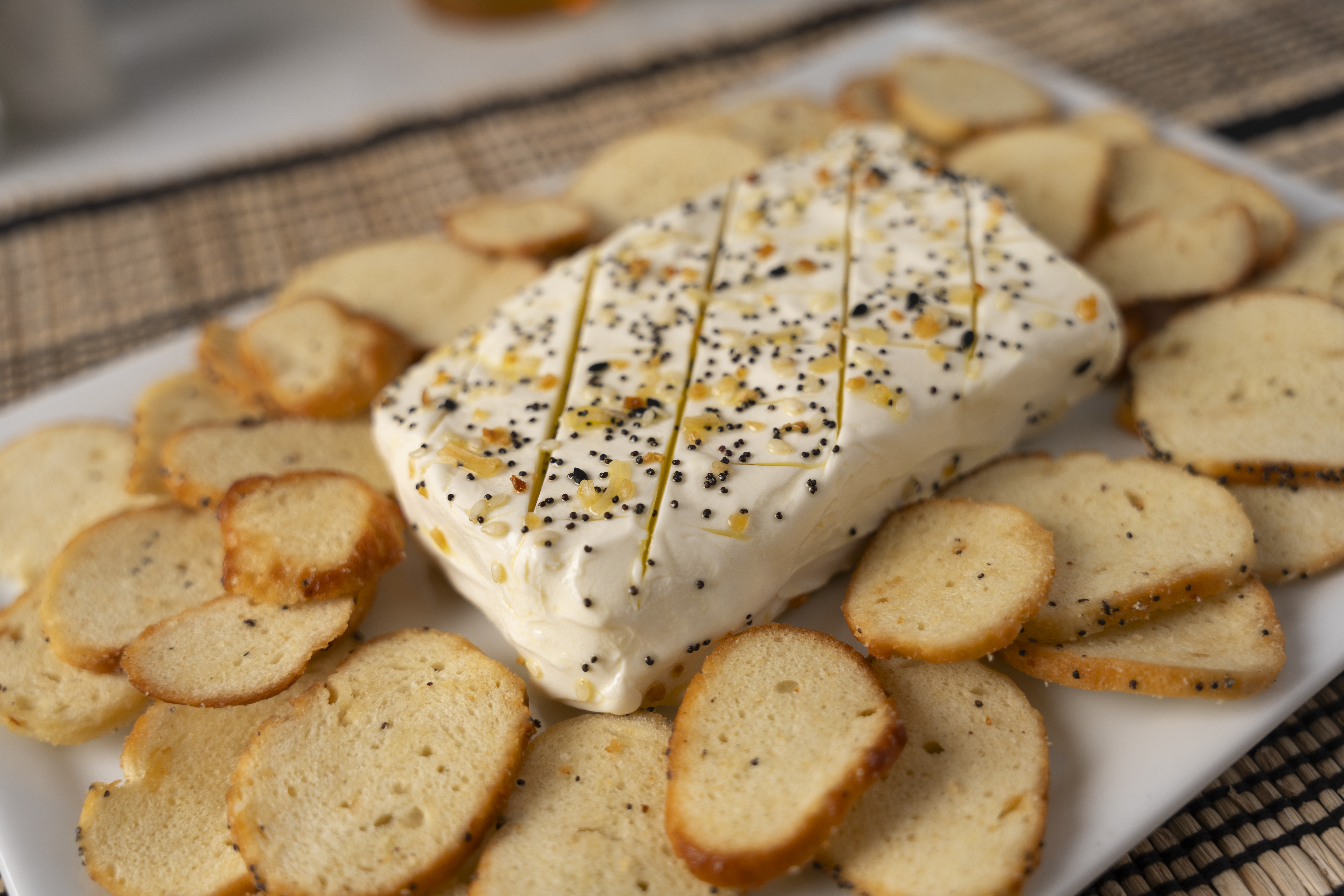 Step 3 -Gently score the top of the cream cheese with a knife, cutting about 1/4-inch-deep.