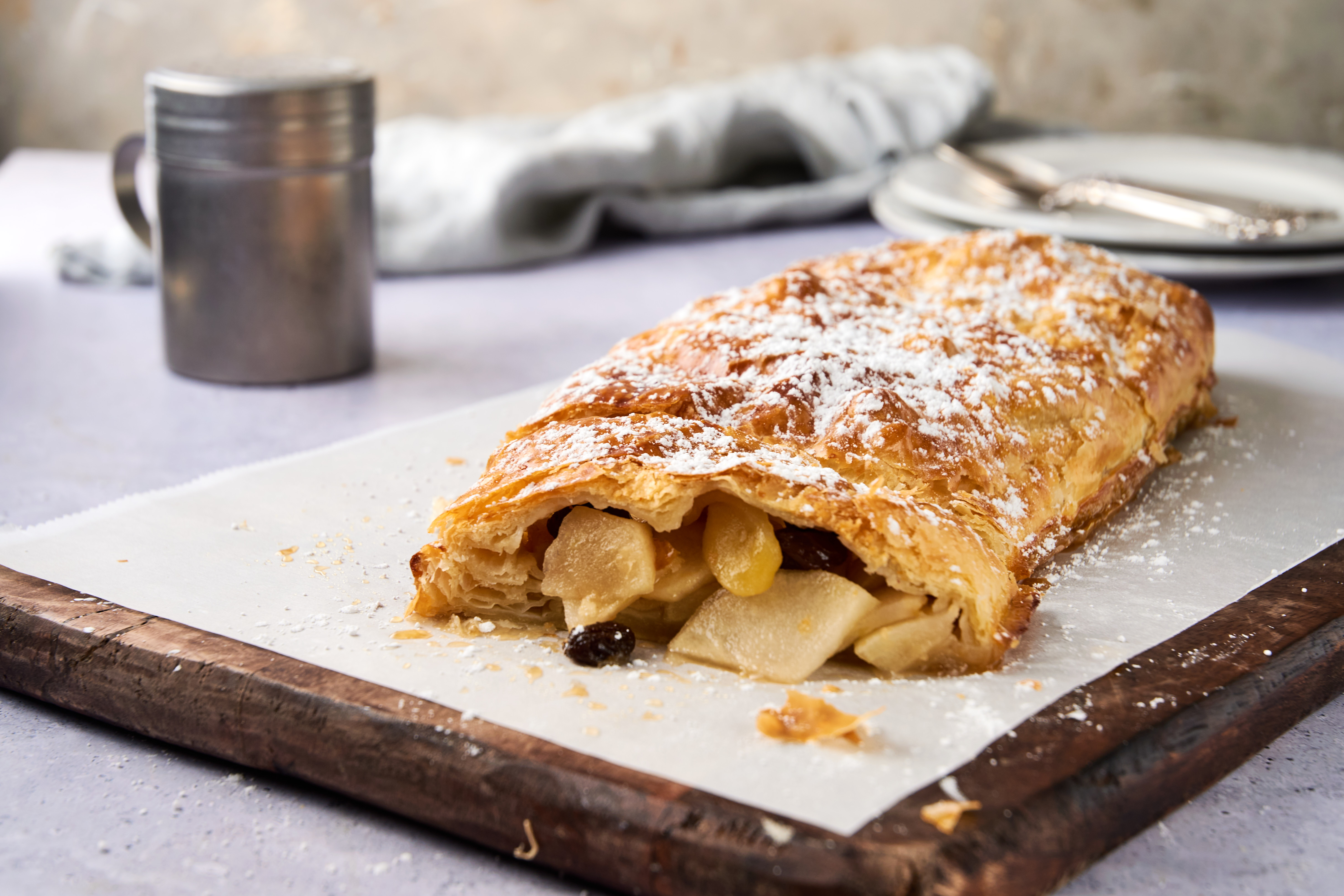 An elegant alternative for all your apple-loving desires.... your taste buds will be alive with it! The Sound-of-Music Strudel will have you humming a different tune and put a smile on your face. Flaky puff pastry joins in perfect harmony with brown sugar-sweetened tart apples and sunny, golden raisins, then baked until golden-brown. This is a golden opportunity to share the love of a great dessert found in the Sound-of-Music Strudel. It might just end up on your list of favorite things!