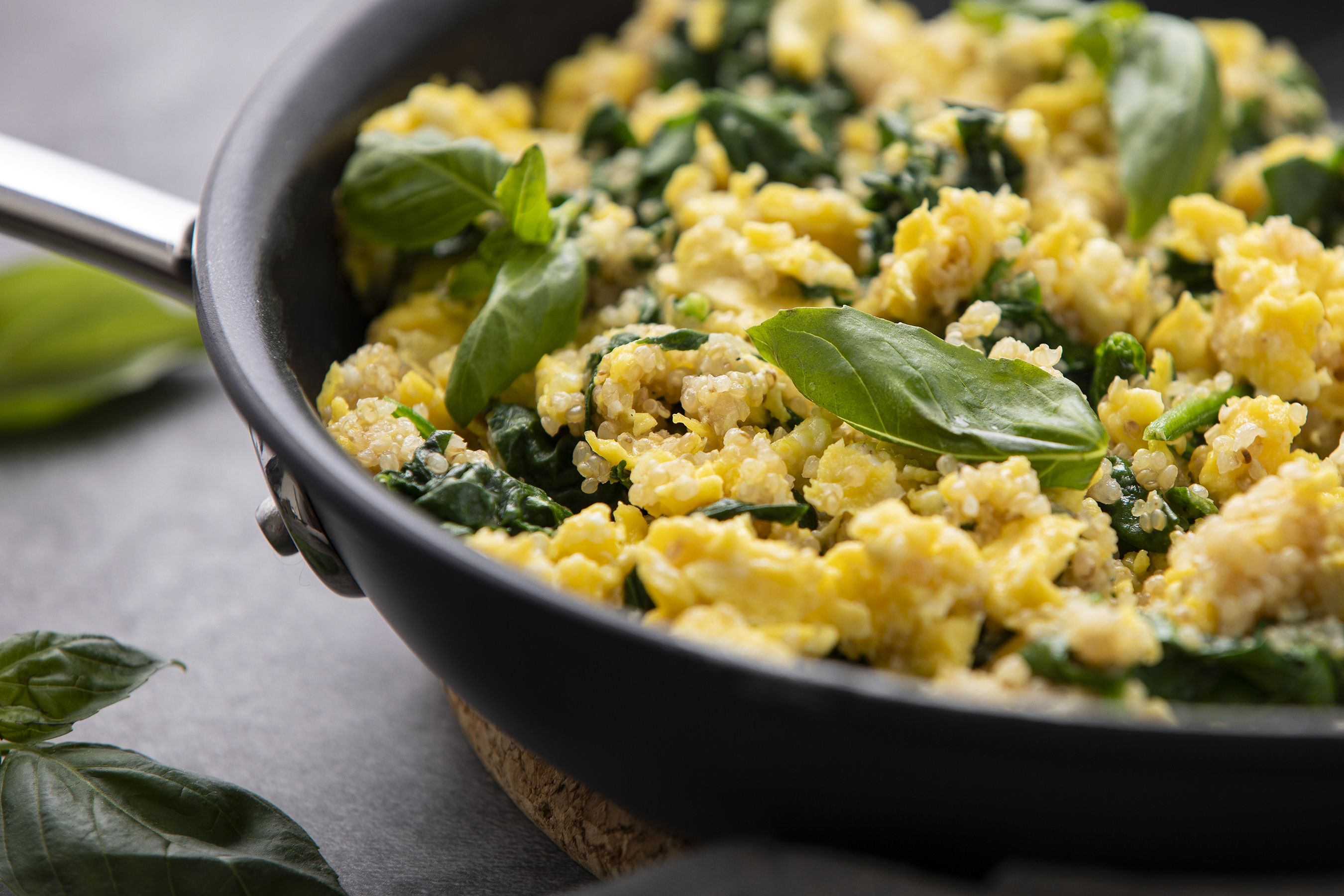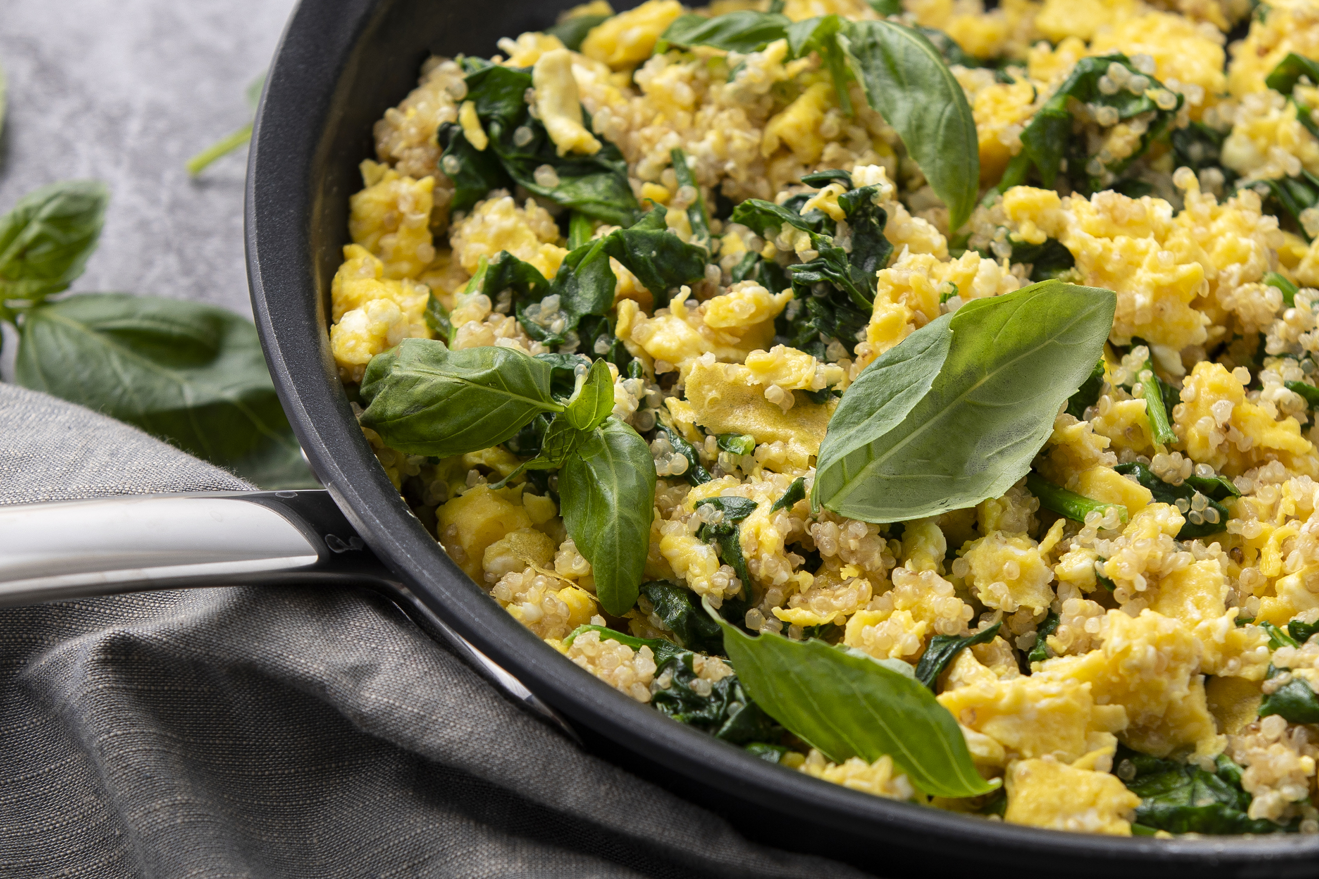 Quinoa for breakfast? Why not?! This Stay Healthy Scramble is loaded with fluffy eggs, fresh spinach, shredded mozzarella, and (yes!) tasty quinoa for that special filling and flavorful boast you need for a great start to the day. Stay Healthy Scramble will make you say, "yes, please" to a new way of enjoying a healthy breakfast. Good morning to you!