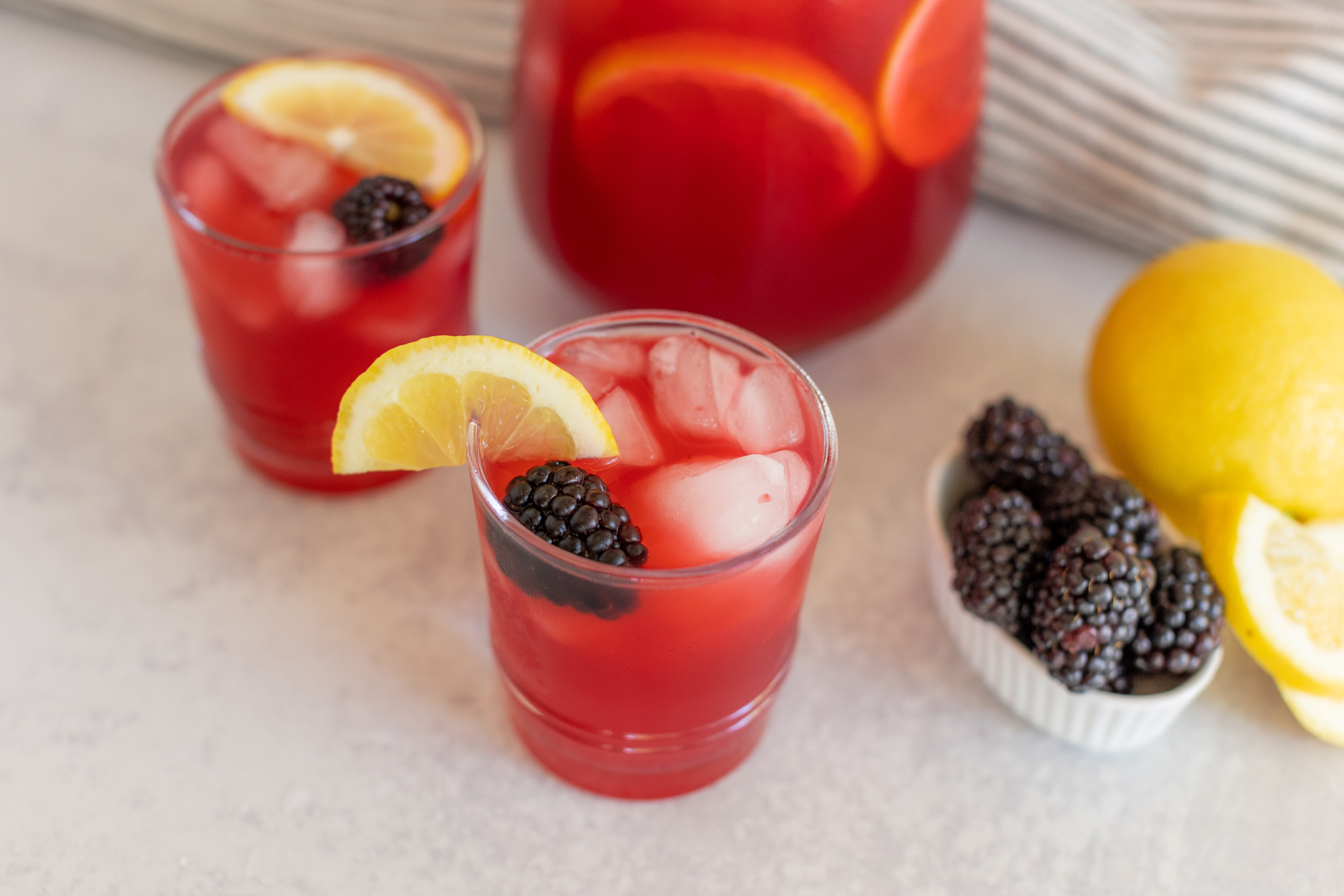 Step 6 -Serve the lemonade over the ice, garnished with the lemon wedges and the extra blackberries.