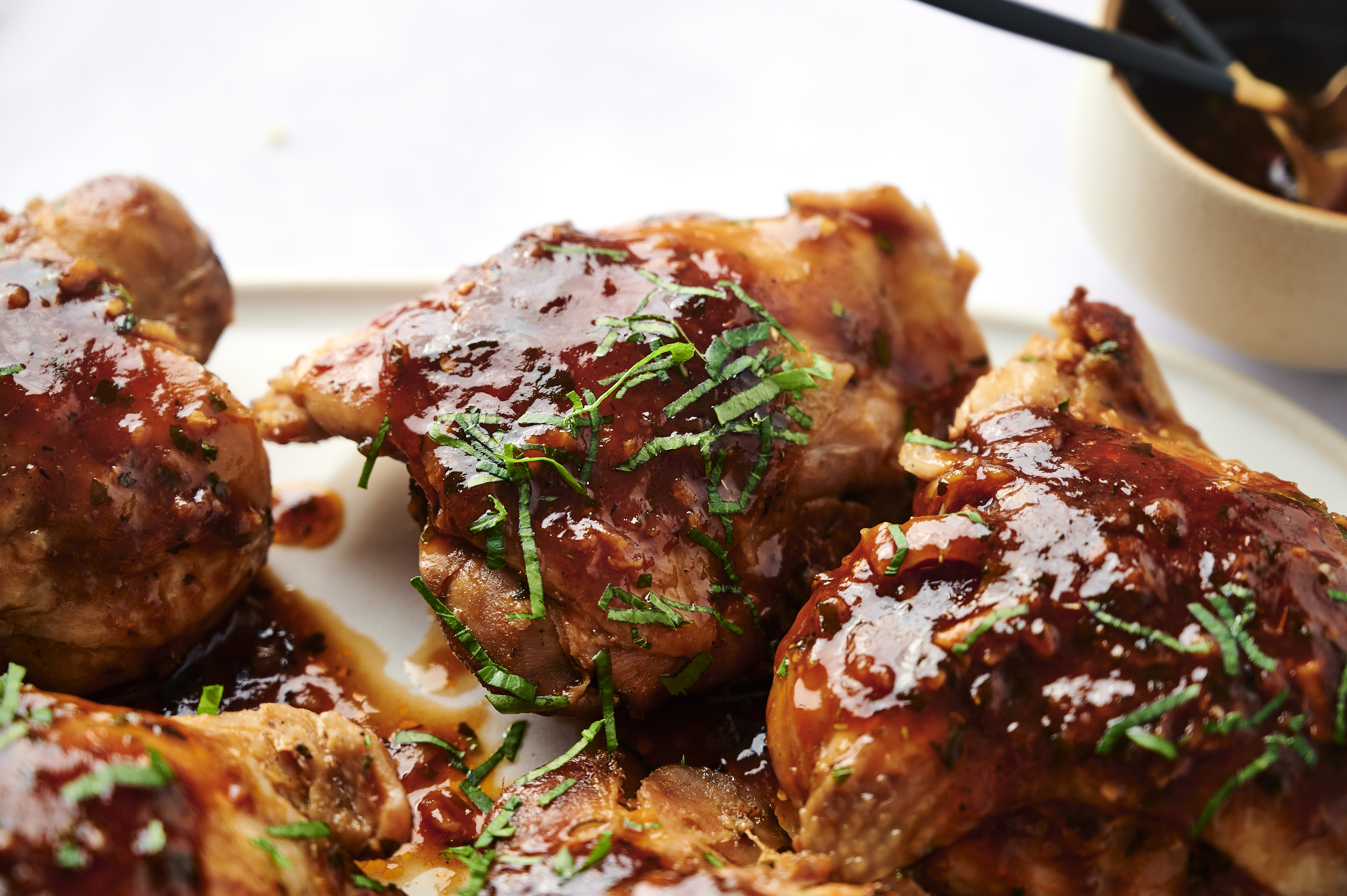 Step 9 -Spoon the sauce over the chicken thighs.
