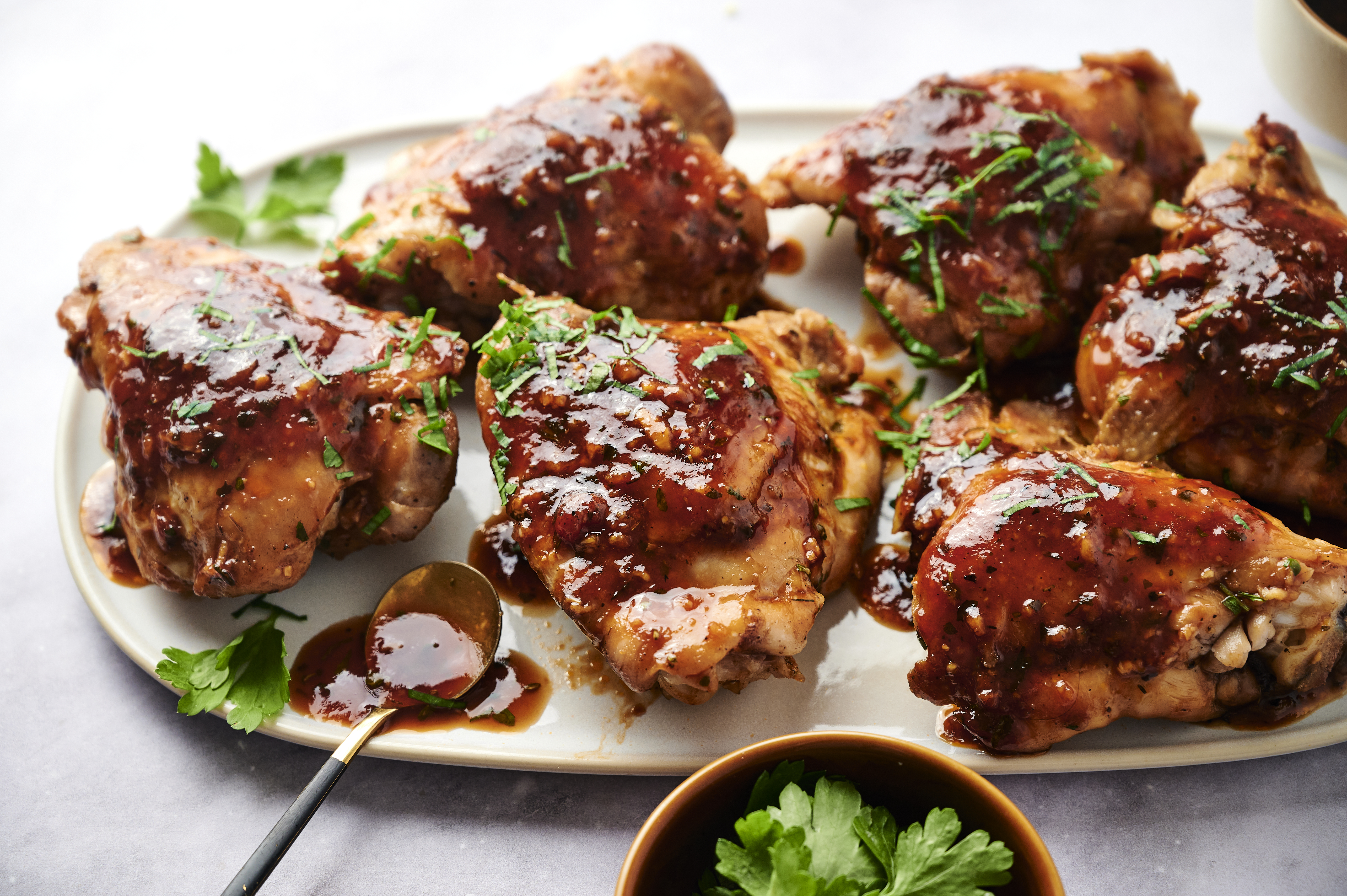 - 8 chicken thighs, bone-in and skin-on